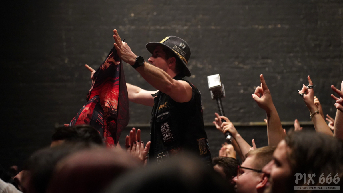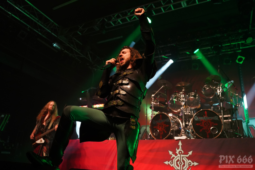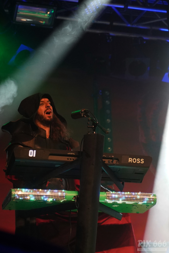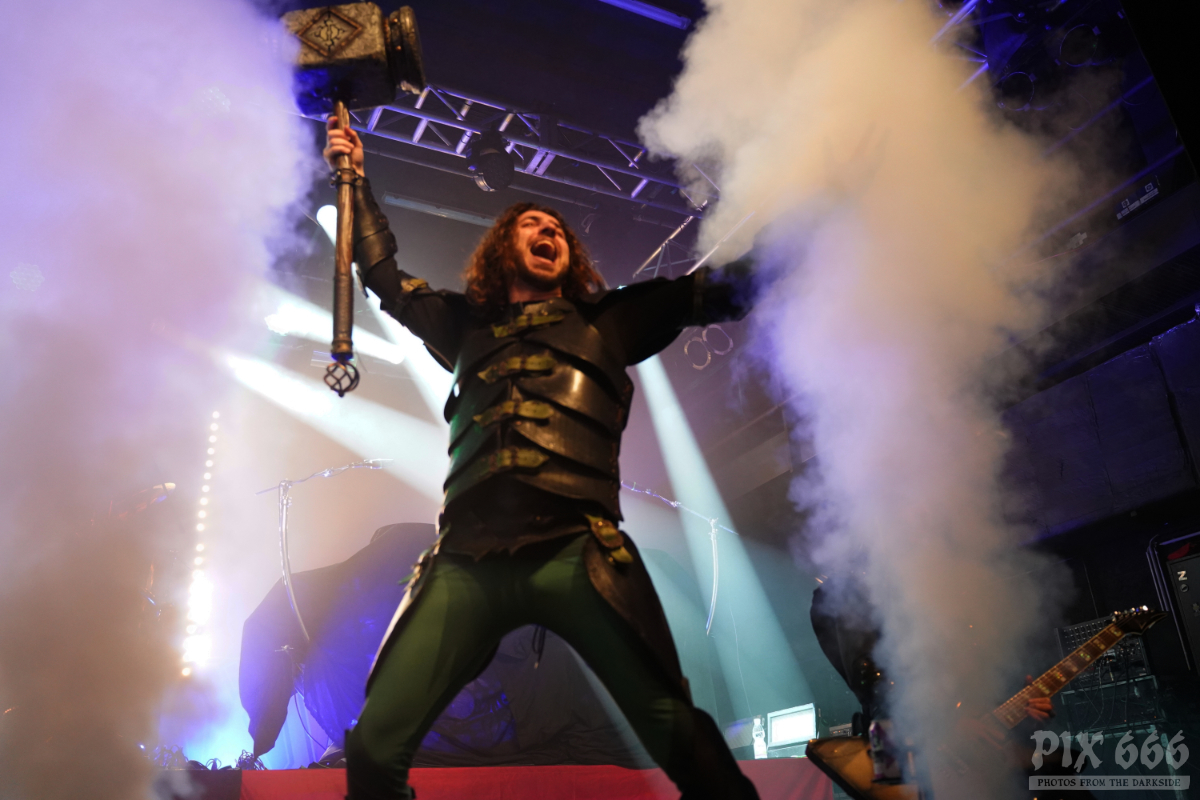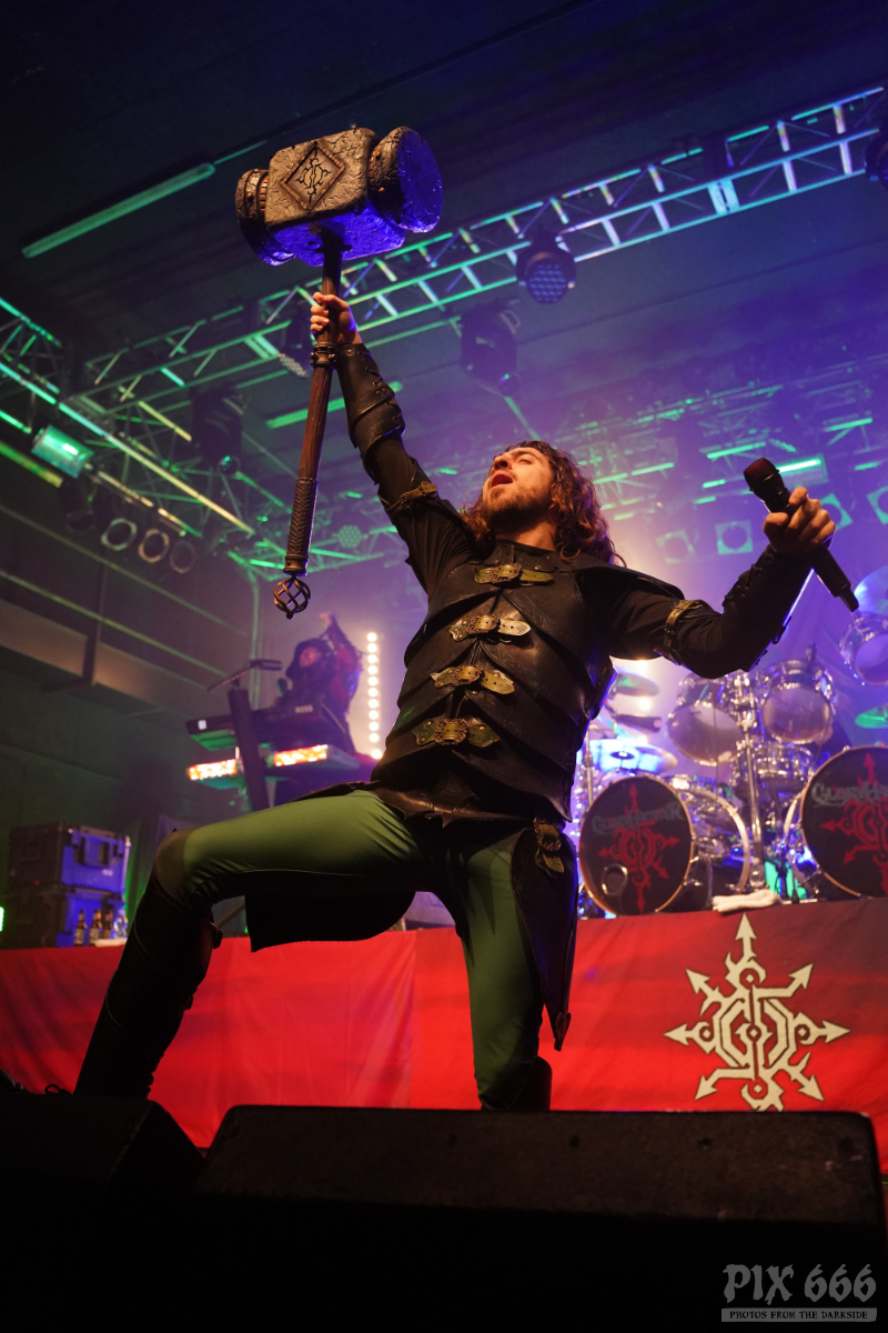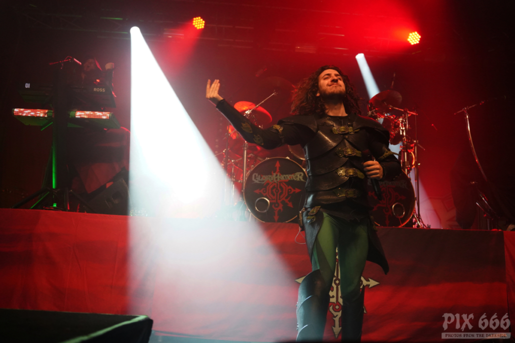 „Es ist so verdammt heiß hier – Ich glaube das liegt an euch.“ Manchmal hatte man das Gefühl, der Sänger wollte sich seiner schweren ‚Rüstung aus Leder‘ entledigen. Sozos Michael hat wirklich 80 Minuten Vollgas gegeben und man kann sagen – Gloryhammer funktionieren live auch mit dem Lockenkopf aus Zypern.
