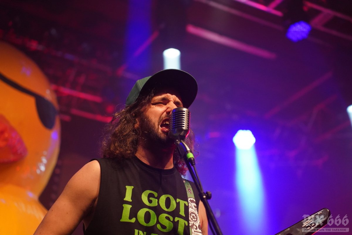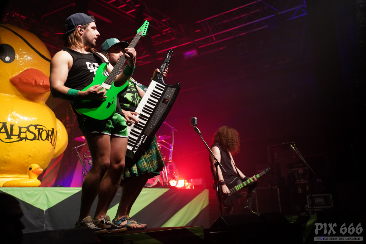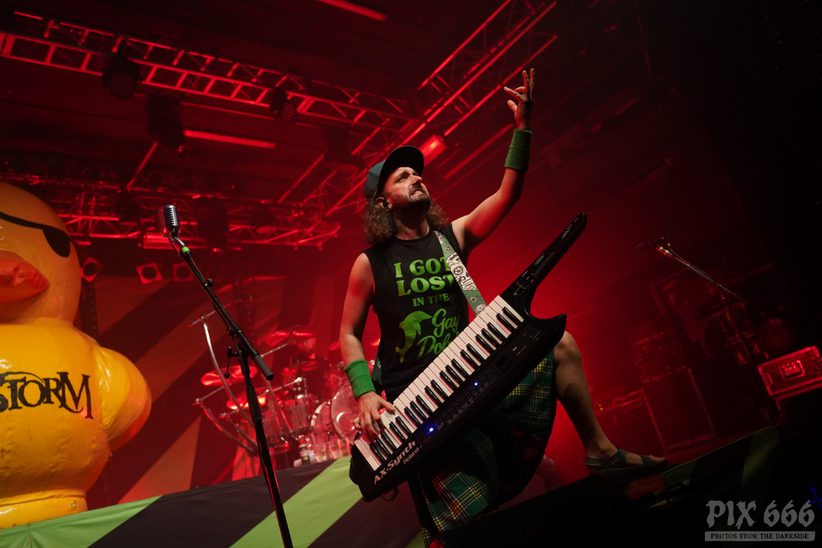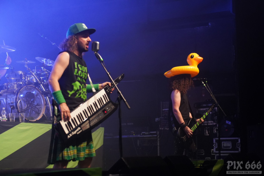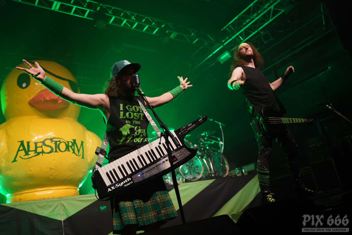 Alestorm betraten unter großem Jubel die Bühne und legten ohne zu Zögern gleich richtig los. Das war wirklich eine wilde Party vom ersten Song an. Unzählige Crowdsurfer schwebten über die Köpfe der anderen Fans hinweg Richtung Bühne. Im Publikum gab es dann auch eine ‚kleine Schwester‘ der Alestorm-Ente. Der Kinderschwimmreifen wanderte dann auf der Bühne und diente kurzzeitig als Kopfschmuck der Musiker – jeder durfe mal…