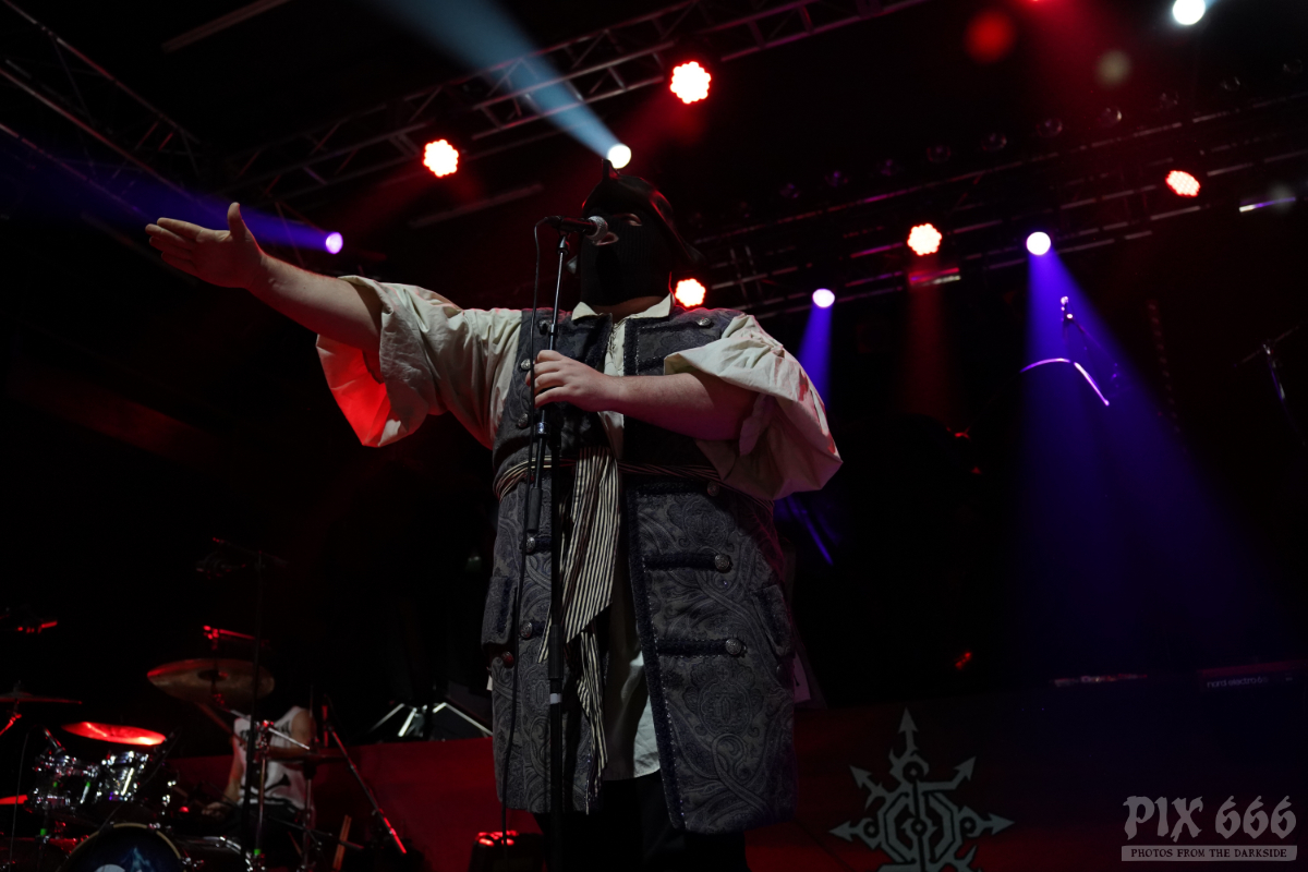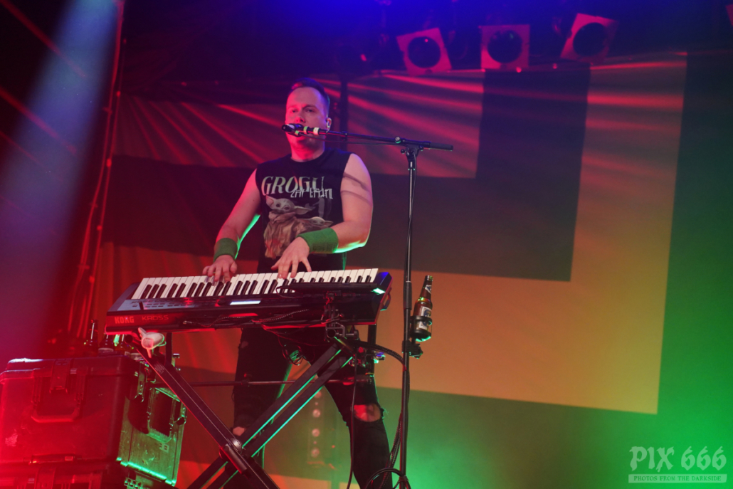 Als nächstes war der Co-Headliner Gloryhammer am Start. Die internationale Powermetal Band kam mit neuem Sänger auf Tour. Dieser hieß allerdings nicht Tom Jones, der als Pappfigur aufgestellt als Intro seinen Hit ‚Delilah‘ trällerte. Mit Sozos Michael hat die Band Ende 2021 einen erfahrenen Sänger gefunden, der richtig gut ins Band Lineup passt und der das Talent und die Courage hat, ins Rampenlicht zu treten.