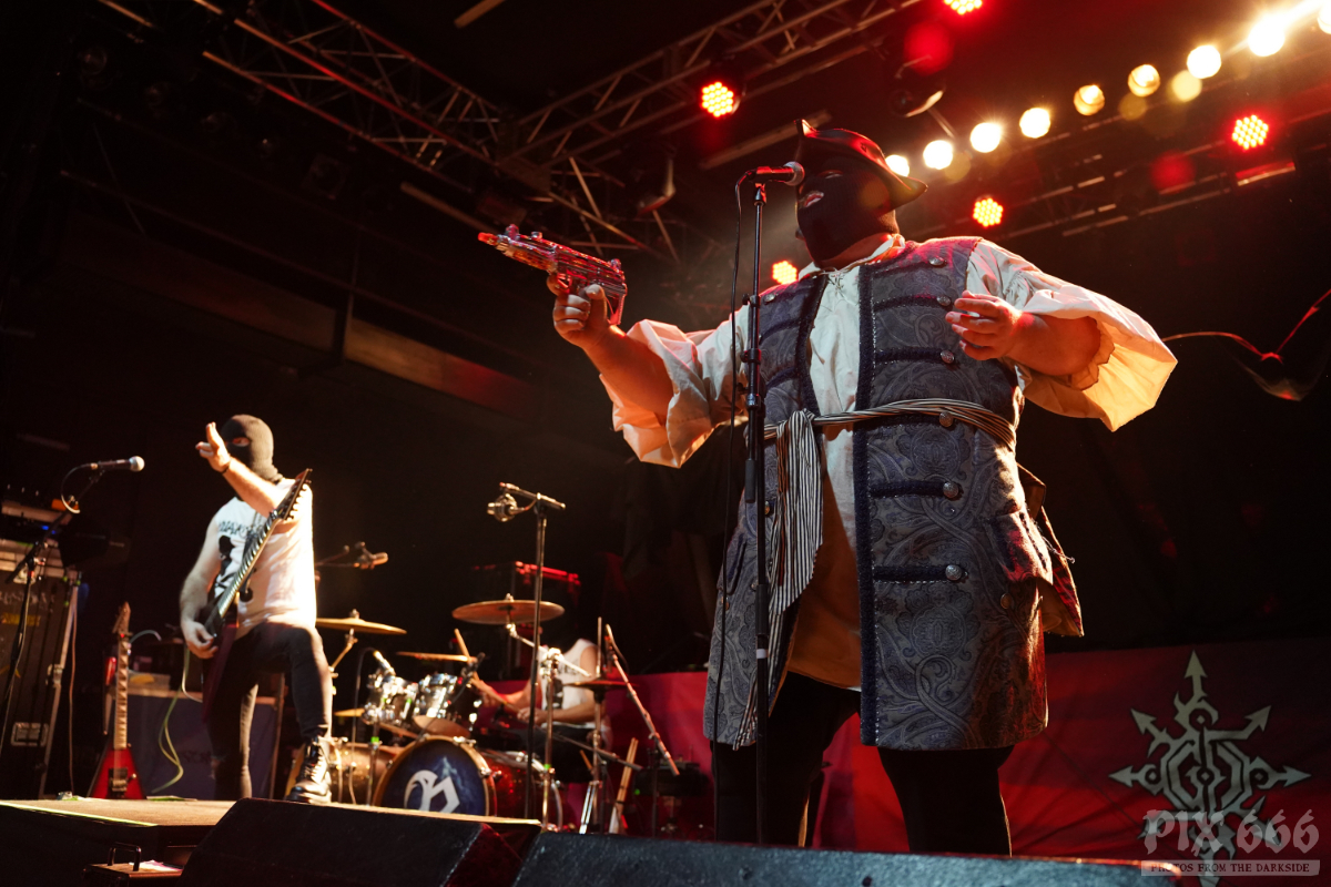 Los ging es mit der Band Rumahoy – die mit Masken gekleideten Musiker um den mächtigen Captain Yarrface am Mikrofon legten gleich richtig gut los und sorgten für tolle Stimmung. ‚Cowboys Of The Sea‘ vom aktuellen 2019er Album ‚Time II: Party‘ war der erste Song des Abends.