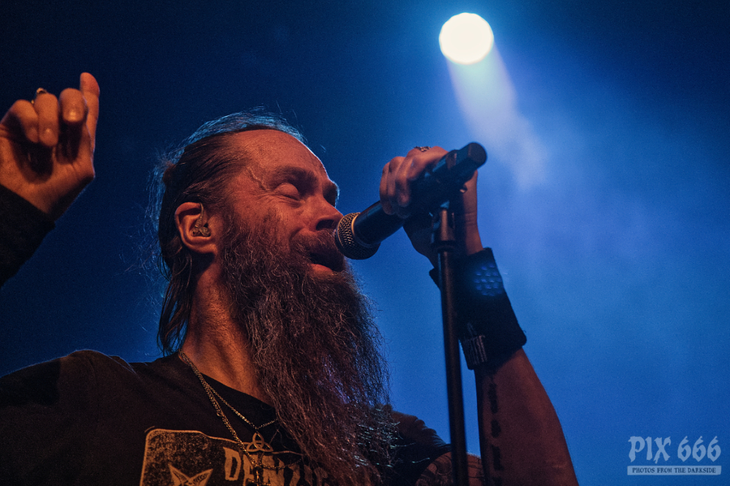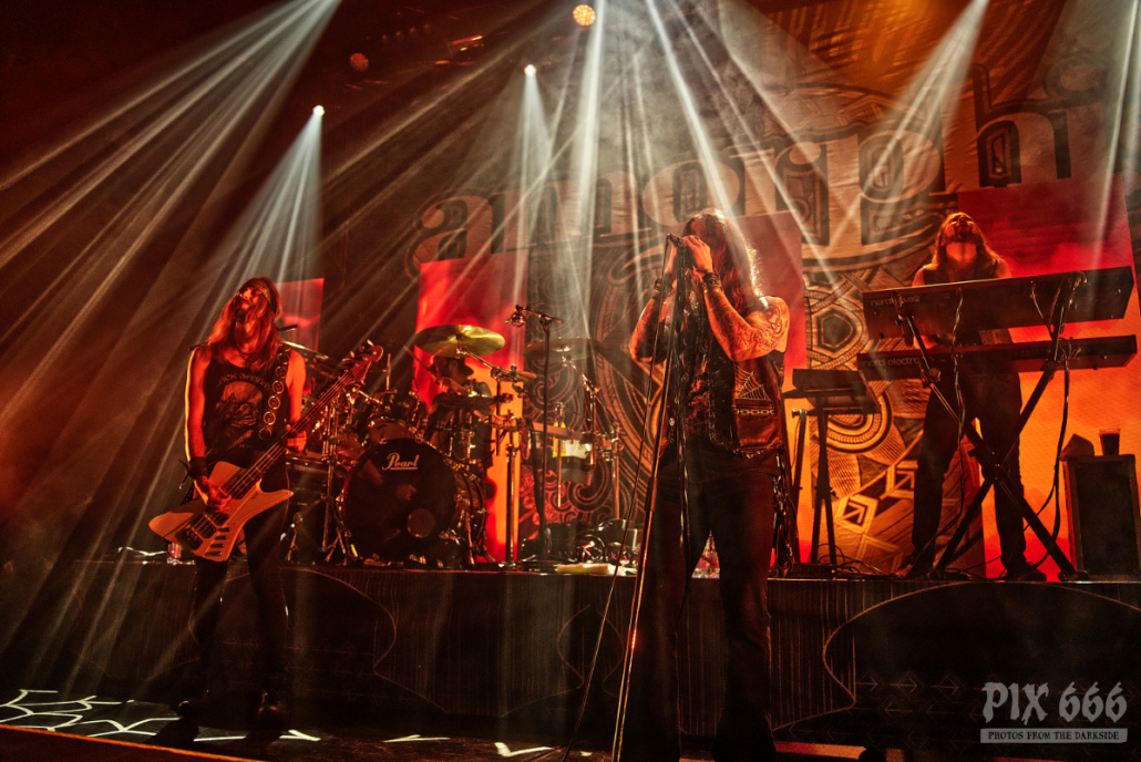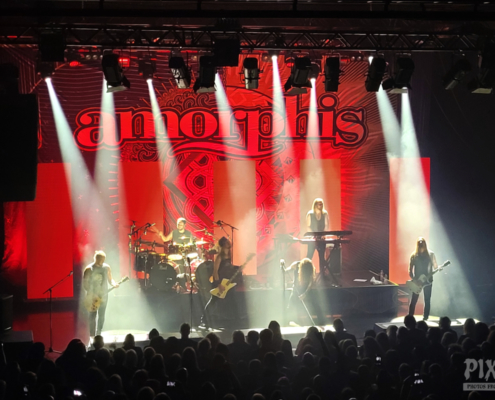 Um 21.30 Uhr war dann Headliner Zeit. Die Jungs um Sänger Tomi Joutsen tourten mit ihrem 14. Streich ‚Halo‘ quer durch Europa. Das Album erreichte fast schon standesgemäß Platz 1 in Finnland, aber auch im kompletten deutschsprachigen Raum ging es in die Top 10. Mit großer Spannung wurden Amorphis von den Fans im ausverkauften Posthof erwartet und mit lautstarkem Jubel auf der Bühne in Empfang genommen.