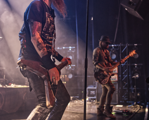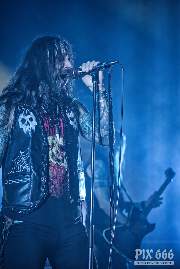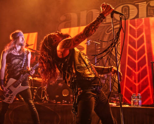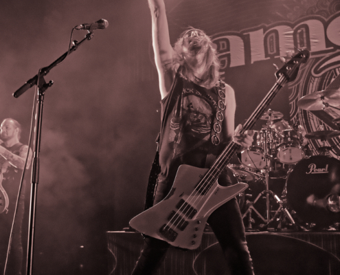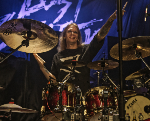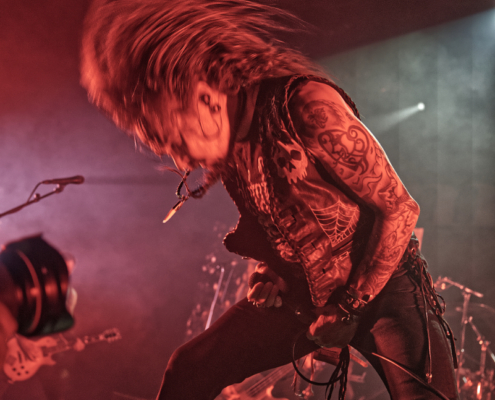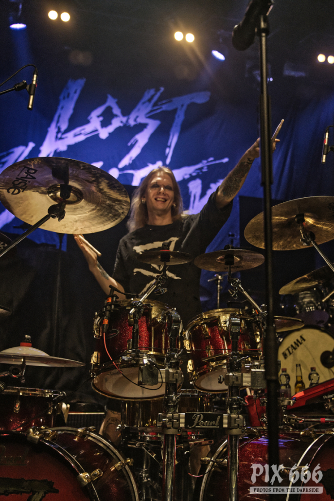 Den Auftakt machte die 2010 gegründete finnische Trash Metalband Lost Society, die Musik ganz im Stil der guten alten 80er spielten. Die Band veröffentlichte 2022 ihr fünftes Album ‚If the Sky Came Down‘. Sänger Samy Elbanna, der seine langen Haare unter einer Kappe versteckt hatte, legte gemeinsam mit seinen drei Bandkollegen ordentlich los, so dass gleich von Beginn an eine gute Stimmung herrschte.