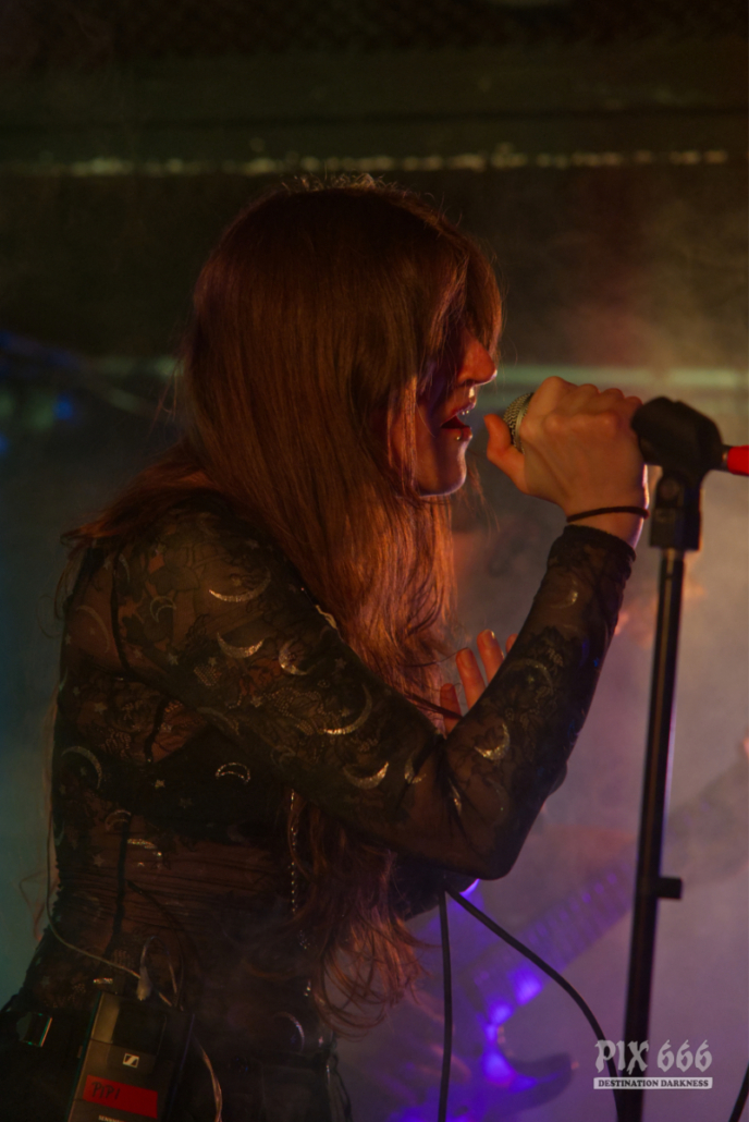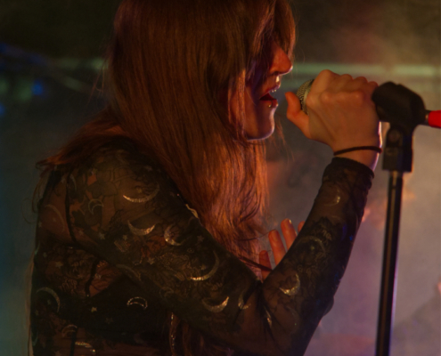 Als nächstes wurde die ruhigste Nummer der Band angekündigt. Das Publikum wurde gebeten ein Feuerzeug oder das Handy herauszuholen, um damit zu leuchten. „Schickt uns ein Licht“ – das sah wirklich schön aus und die Lichter leuchteten während des gesamten ‚Take Off Your Mask‘. Nach zwei weiteren Songs gab es dann noch das eingängige ‚Shine‘ zu hören, zu dem es auch einen Videoclip auf YouTube gibt. Dann gab es schon die Verabschiedung – „Viel Spaß noch mit den anderen Bands und danke, dass ihr alle da wart“. Aber die Fans wollten mehr und schrien in voller Stärke nach einer Zugabe und nach einer kurzen Besprechung spielten Fati Morgana ein zweites Mal den Titel ‚Unbroken Flame‘. Das war eine wirklich schöne Show zum Einstieg in den Abend und eine Frontfrau und Band, die man im Auge behalten sollte.