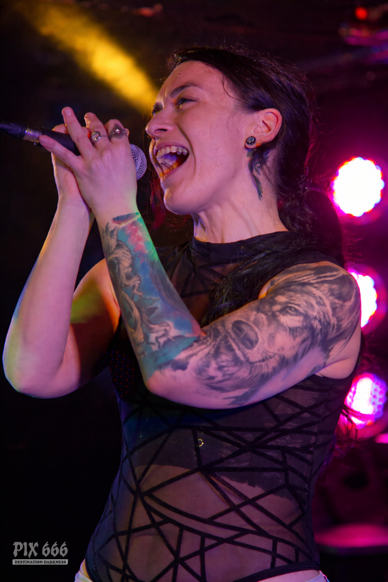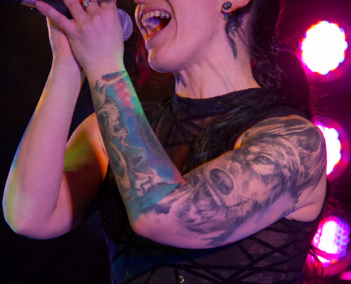 Das Replugged öffnete gegen 19 Uhr die Tür für die Besucher, auf der Bühne wurde es dann etwa eine Stunde später ernst – Zeit für den Opening Act des Abends. Aus der ehemaligen Country-Pop Sängerin Fati ist nun eine Rockerin geworden – und was für eine. Als hätte Fati Morgana nie etwas anderes getan, rockte sie bei ihrer erst zweiten Liveshow in dieser Formation los wie ein Profi. Nach zwei schönen Songs zum Einstieg wurde dann das Publikum zum ersten Mal animiert, mitzumachen. Da ‚Everybody‘ ein Welthit ist, konnte bei der Coverversion fast jeder den Text mitsingen. „Jetzt ist mir aber warm geworden“ sagte die Sängerin nach ihrer rockigen Version des Pop-Klassikers. Auch beim nächsten Song ‚Unbroken Flame‘ war tolle Stimmung. Die Sängerin hatte stets ein Lächeln im Gesicht und steckte damit die Fans an und so war auch bei ‚Metamorphosis‘ viel Spaß und Bewegung in der Menge. Nach dem Song gab es lautstarken Jubel.