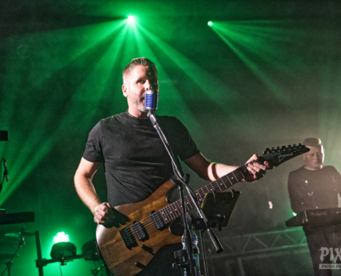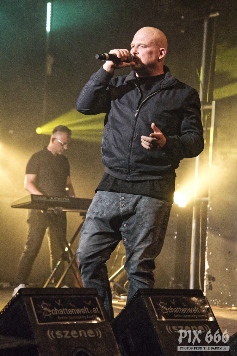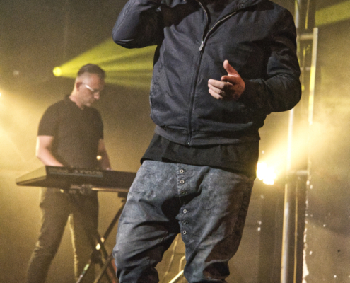 Während der Pause wurden Depeche Mode Klassiker, wie z.B. ‚Told You So‘ gespielt, dabei feierten die Fans schon ab, als würde bereits eine Band auf der Bühne stehen. Um etwa 21.15 Uhr war es dann so weit und And One begannen ihre Show in Wien. Die ((Szene)) war sehr, sehr gut gefüllt – der Rahmen für einen tollen Abend war geschaffen. Los ging die Show mit zwei Songs vom ‚Magnet‘ Album aus der 2014er ‚Trilogy‘. And One spielten im Anschluss daran den neuen Song ‚Atomic Bomb‘, der bereits seit Ende letzten Jahres Bestandteil der Setlist ist. „Es gibt keinen besseren Ort, neue Songs auszuprobieren, als hier vor so einem anspruchslosen Publikum“ sagte ein gut aufgelegter Steve Naghavi mit einem Schmunzeln im Gesicht. Und gut gelaunt ging es gleich weiter –