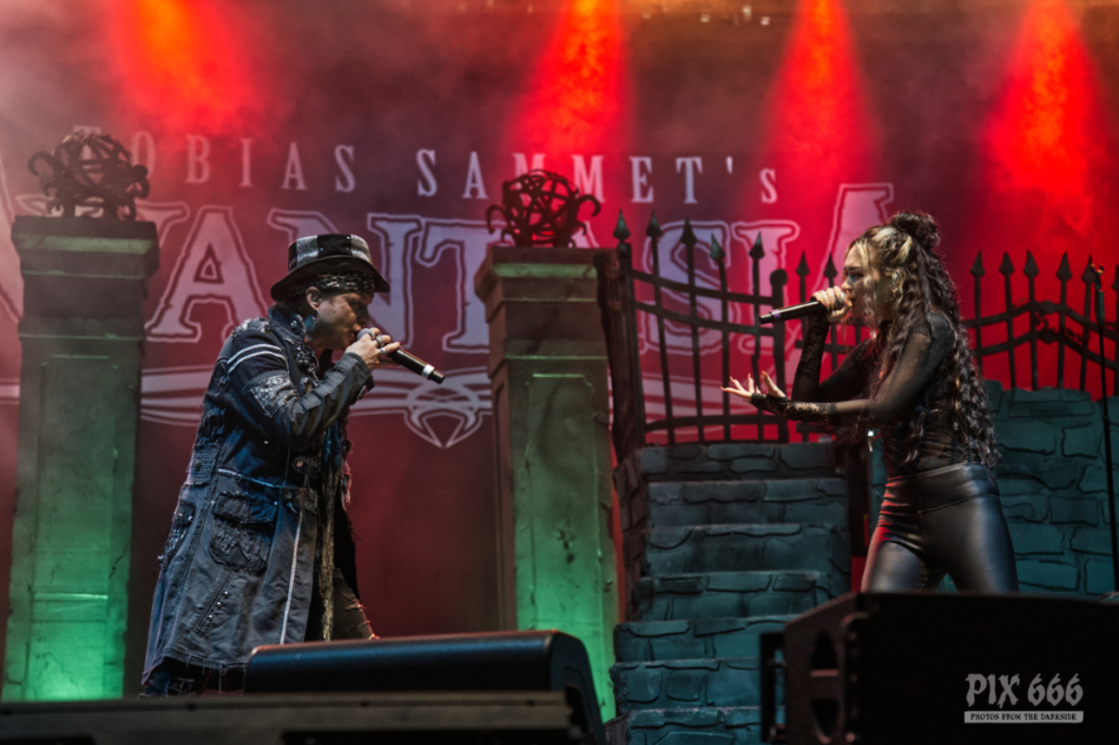 Beim Headliner des zweiten Tages war nun allerhand zu tun, was den Aufbau betraf – meterhöhe Säulen mit Laternen drauf, sowie eine schicke Showtreppe zierten die Bühne. Die im Jahr 2000 gegründete Band um Edguy Sänger Tobias Sammet ist seit nunmehr 15 Jahren mit ihren Alben Stammgast in den deutschen Top10, auch eine Nummer 1 konnte schon abgeräumt werden. Avantasia ist ein Genuss auf den Alben und ein Spektakel auf der Bühne. Die mit zahlreichen Gastauftritten gespickte Show war an Lebendigkeit kaum zu überbieten. Vor allem die wunderbar inszenierten Duette von Tobias mit Adrienne Cowan oder auch Kenny Leckremo gingen ins Ohr und unter die Haut. Avantasia verzückten das Publikum und sorgten für einen perfekten Ausklang des zweiten Festivaltages. Avantasia sollte bzw. eigentlich muss man sich auf jeden Fall mal in voller Showlänge genehmigen. Der tolle Festivalauftritt beim Area 53 Festival war dafür der perfekte Appetithappen.