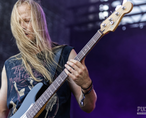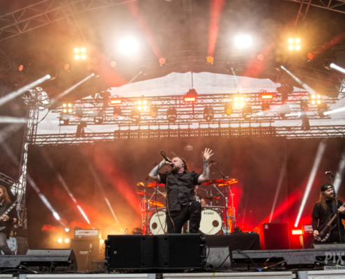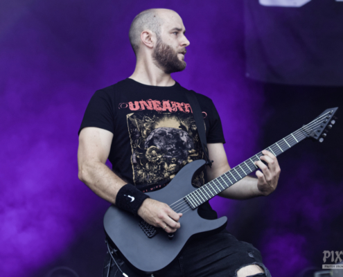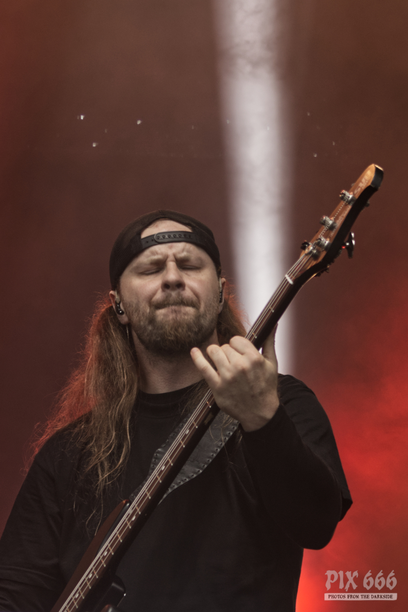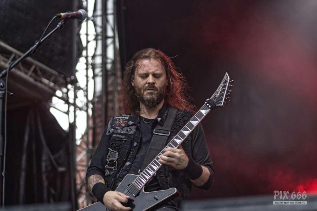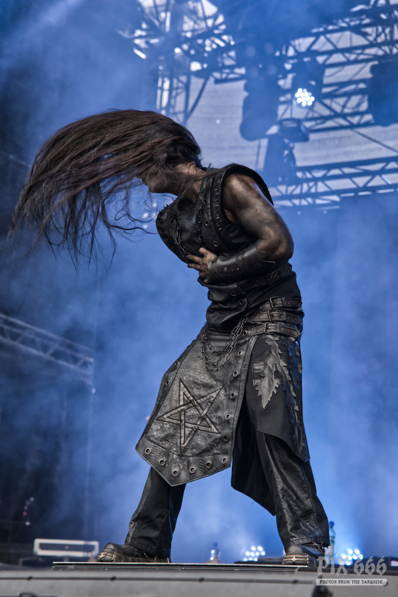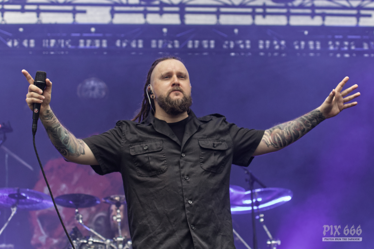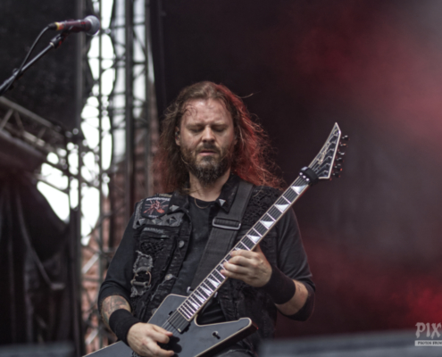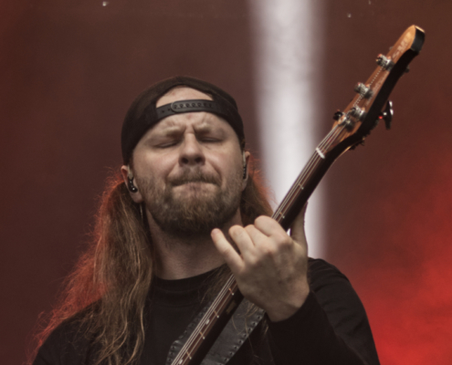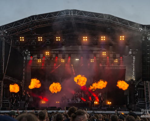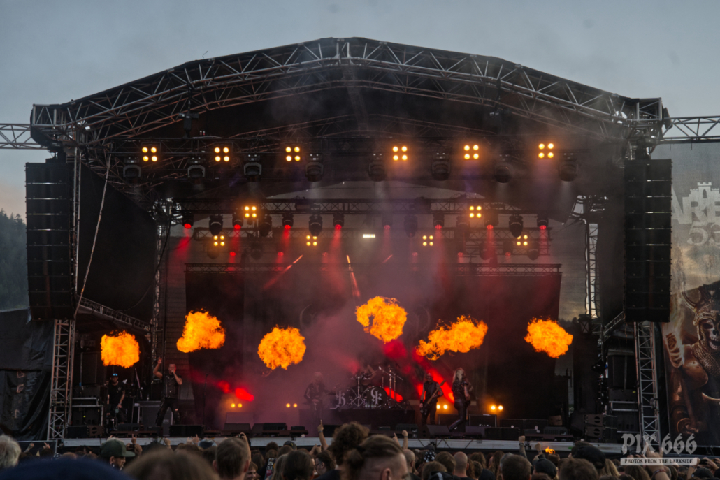 Zum Glück hatte sich das Unwetter verzogen und es konnte tatsächlich mit dem Festival weitergehen – wir hatten ehrlich gesagt nicht damit gerechnet. Nach der Zwangspause ging es mit Decapitated weiter. Die 1996 gegründete und 2009 neu formierte Band aus Polen hat inzwischen eine riesige Fanschar hinter sich, ihre Videoclips Millionen von Aufrufen – und das zurecht. Wir haben Decapitated heute tatsächlich zum ersten Mal live gesehen und waren von der Energie und der kraftvollen Stimme und dem Sound total überwältigt. Die Show startete mit dem Titelsong vom aktuellen Album ‚Cancer Culture‘. Dann reichte ein kleiner Fingerzeig von Sänger Rafal und die Metalheads wussten, was zu tun war. Moshpitalarm in Leoben – wow jetzt wurde es wild und gut. „Thank you so much – danke schön“ entgegnete der Sänger der feiernden Menge. Immer wieder liess er seine Haare kreisen und fragte dann „Wollt ihr mehr?‘ Da ihm die Antwort der Fans zu leise war sagte er weiterhin „Leute, das ist ein Metalfestival – lasst mich euch hören“. Laut, wild und stimmungsvoll ging es weiter bis zum finalen Song ‚Last Supper‘, ebenfalls vom aktuellen 2022er Album.