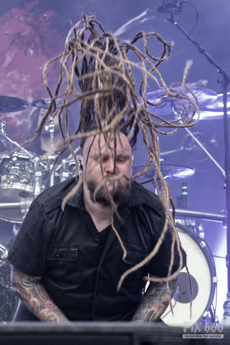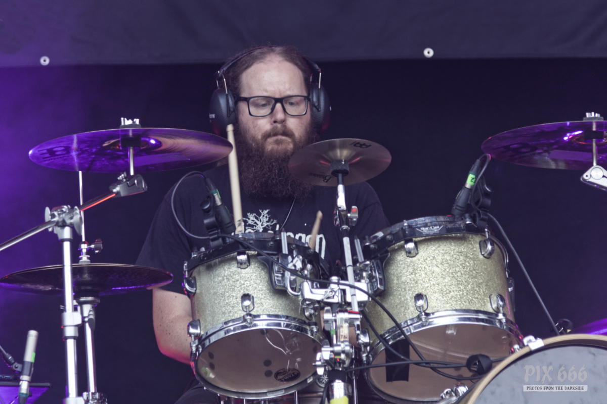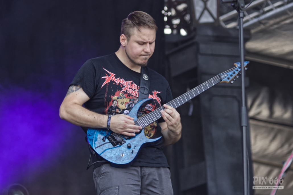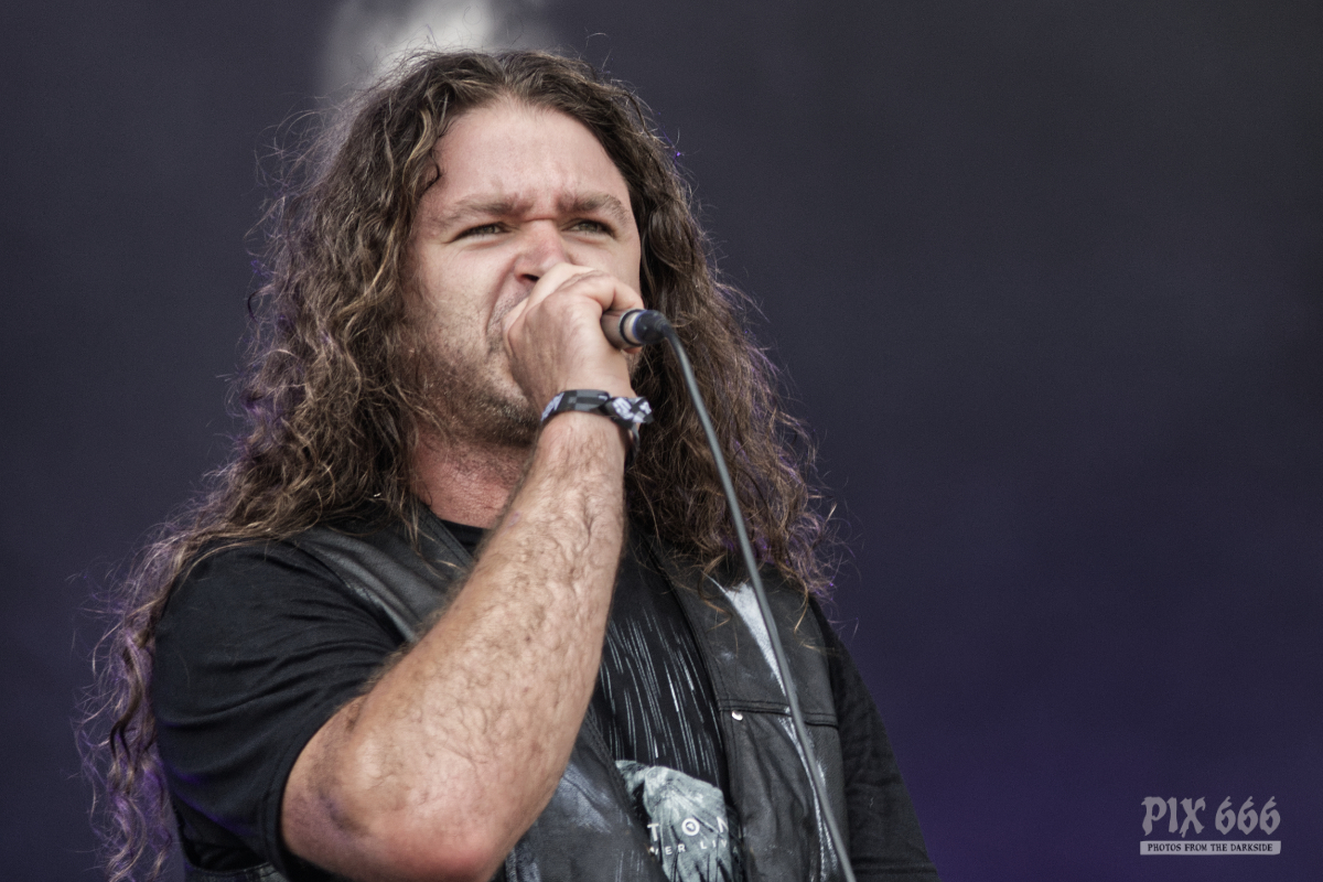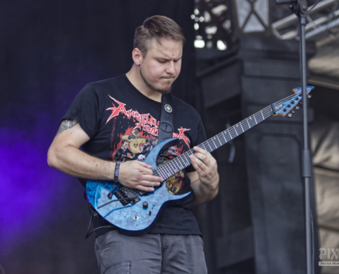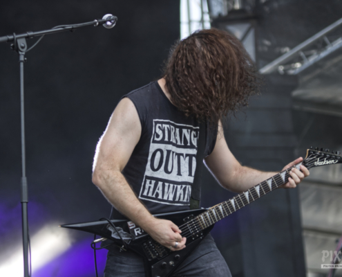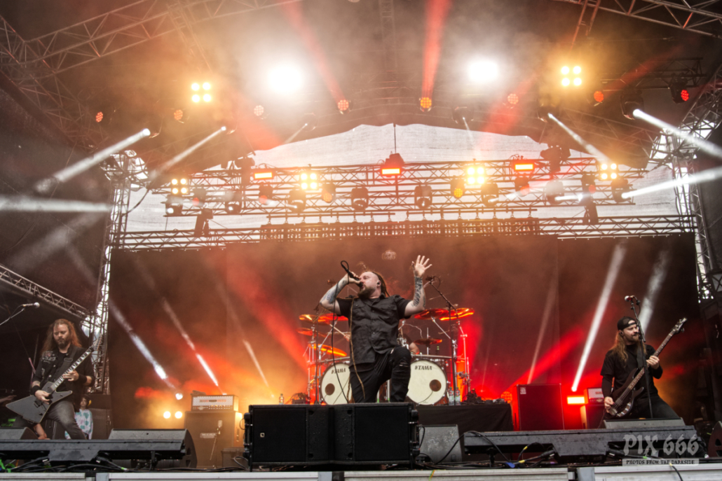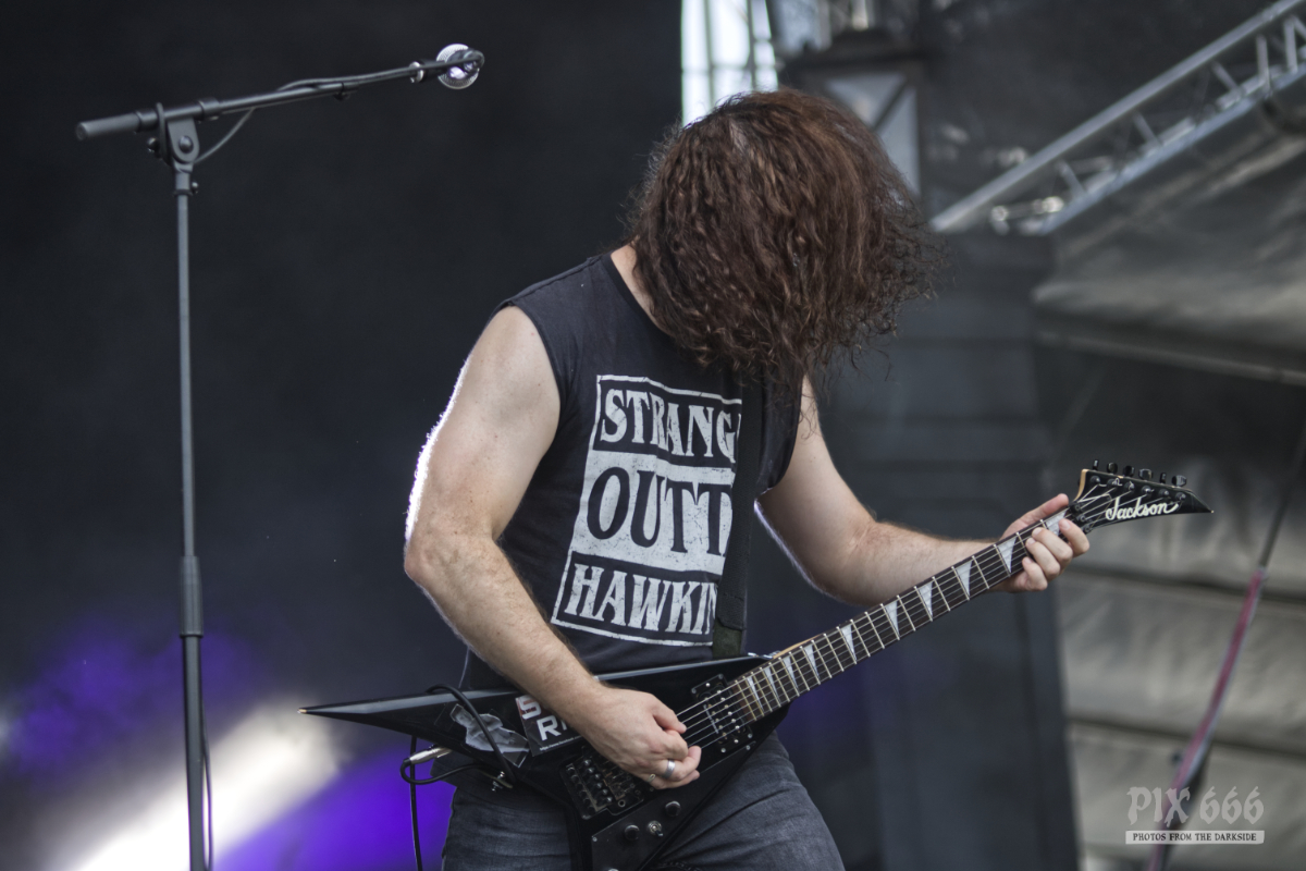 Zum Glück hatte sich das Unwetter verzogen und es konnte tatsächlich mit dem Festival weitergehen – wir hatten ehrlich gesagt nicht damit gerechnet. Nach der Zwangspause ging es mit Decapitated weiter. Die 1996 gegründete und 2009 neu formierte Band aus Polen hat inzwischen eine riesige Fanschar hinter sich, ihre Videoclips Millionen von Aufrufen – und das zurecht. Wir haben Decapitated heute tatsächlich zum ersten Mal live gesehen und waren von der Energie und der kraftvollen Stimme und dem Sound total überwältigt. Die Show startete mit dem Titelsong vom aktuellen Album ‚Cancer Culture‘. Dann reichte ein kleiner Fingerzeig von Sänger Rafal und die Metalheads wussten, was zu tun war. Moshpitalarm in Leoben – wow jetzt wurde es wild und gut. „Thank you so much – danke schön“ entgegnete der Sänger der feiernden Menge. Immer wieder liess er seine Haare kreisen und fragte dann „Wollt ihr mehr?‘ Da ihm die Antwort der Fans zu leise war sagte er weiterhin „Leute, das ist ein Metalfestival – lasst mich euch hören“. Laut, wild und stimmungsvoll ging es weiter bis zum finalen Song ‚Last Supper‘, ebenfalls vom aktuellen 2022er Album.
