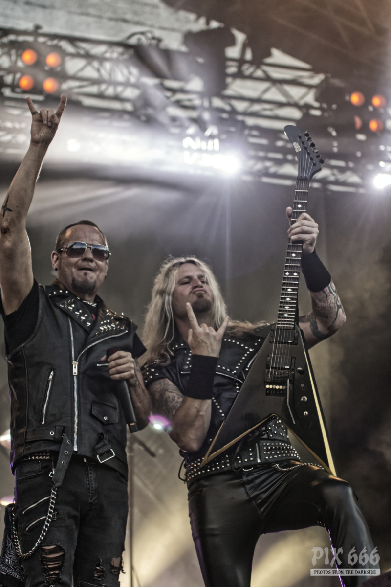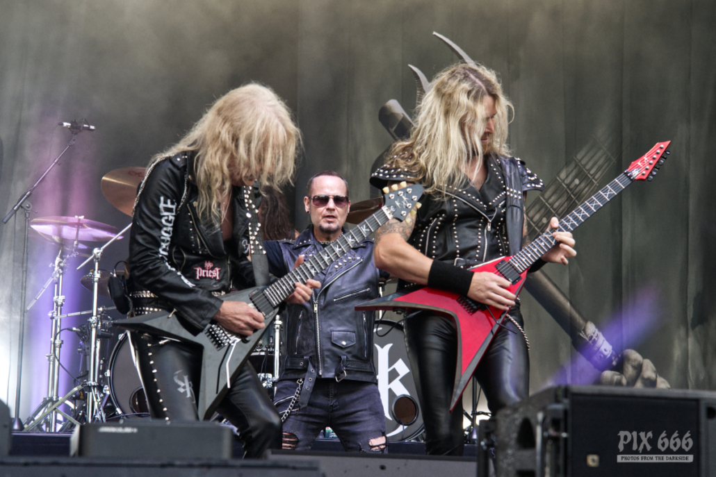 Die Band KKs Priest ist ein Projekt des Gitarristen K.K. Downing, der über 40 Jahre lang die Saiten bei der legendären Band Judas Priest zupfte. Ans Mikrofon holte er sich für seine neue Band den amerikanischen Metalsänger Tim Ripper Owens, der zur Jahrtausendwende einige Jahre der Frontmann von Judas Priest war. Los ging es mit ‚Hellfire Thunderbolt‘ vom Debutalbum der Band – und heiss wie Höllenfeuer wurde es dann auch immer wieder vor der Bühne, Feuersäulen stiegen auf und sorgten für einen perfekten Heavy Metal Ritt. Das neue KKs Priest Album ‚The Sinner Rides Again‘ aus dem Jahr 2023 chartete in Österreich, Deutschland und der Schweiz jeweils in die Top20. Von diesem Album wurden zwei Songs gespielt, ehe es dann mit Judas Priest Covers weiterging. „Seid ihr bereit zu singen?“ fragte Ripper. Und natürlich mitgesungen und auch laut gejubelt. „Das nächste Lied kennt jeder“ hiess es dann. Der Song hat im Original von Judas Priest sagenhafte 74 Mio. YouTube Views – ich glaube ja, den kennt wirklich jeder. Es war natürlich ‚Breaking the Law‘ – und nun ging es hier richtig ab. Feuer, Rauch, Nebel und cooler Metal Sound – was will man mehr. Eine tolle Show der Heavy Metal Legenden.