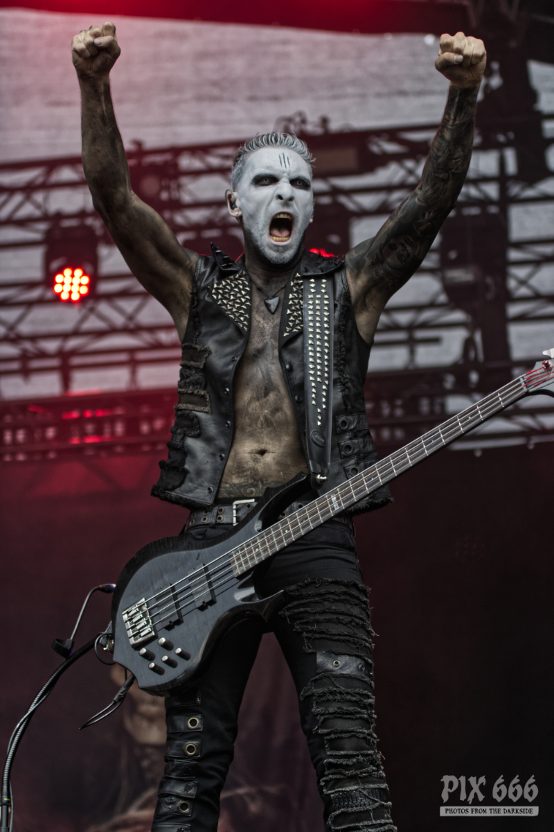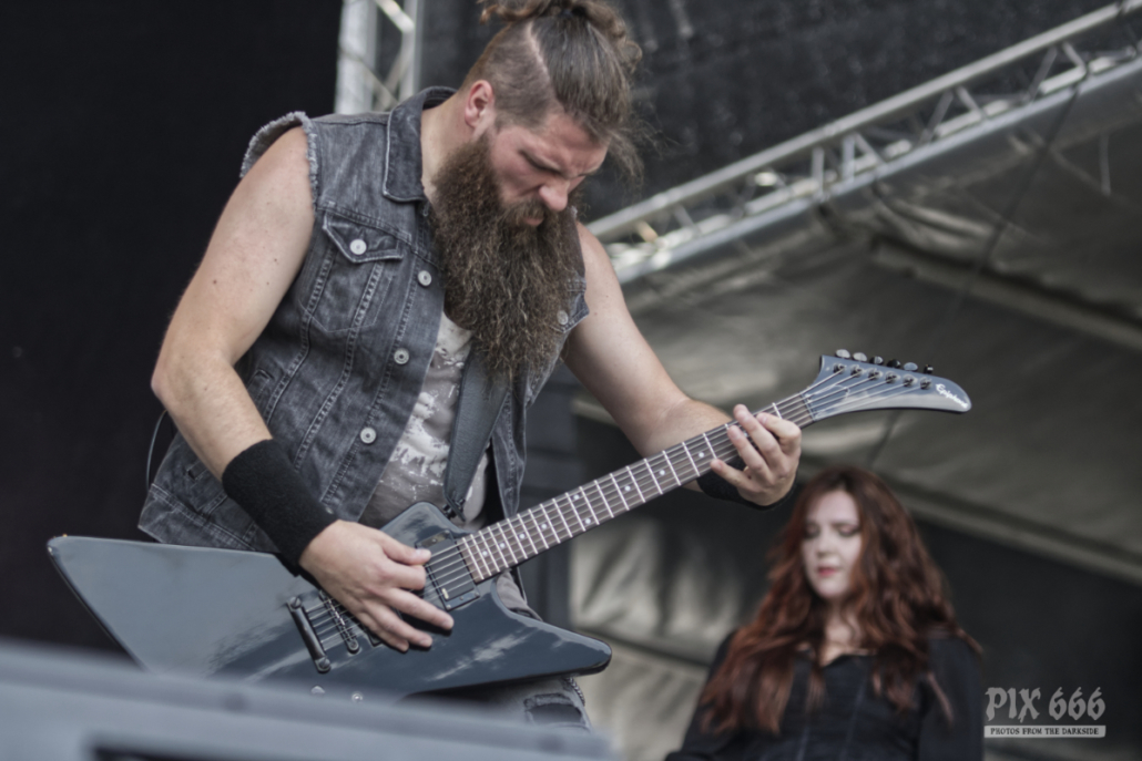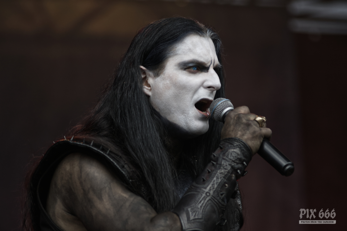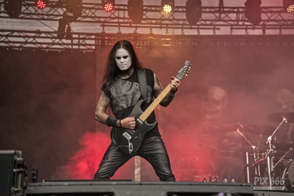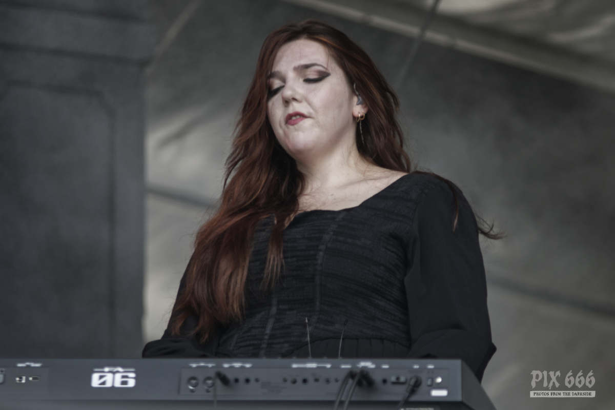 Nun wurde es im Gegensatz zur Band zuvor eher düster. Die bleichgeschminkten Herren von Nachtblut aus Deutschland verzauberten das Area 53 Festival auf finstere Art und Weise. Die Band lieferte eine tolle Show ab, das Licht auf der Bühne war perfekt abgestimmt und der Sound wirklich super. Man hatte das Gefühl, viele in den ersten Reihen waren ausschließlich für die Nachtblut Show angereist – es wurde teilweise richtig laut mitgesungen und geschrien – also textsicher waren die Fans zumindest. Sänger Askeroth bemerkte die Euphorie unter den Fans und sagte „Nun wollen wir sehen, ob ihr noch lauter singen könnt – singt mir einfach nach“. Dann sangen fast alle gemeinsam den Coversong ‚Alles nur geklaut‘. Wow eine echt geile Stimmung. Nun zogen irgendwie passend zur Show ziemlich dunkle Wolken auf und es gab auch einen Stromausfall. Das brachte die Jungs nicht aus dem Konzept – nach einer kurzen Pause ging die Show bis zum viel umjubelten Schluss weiter.