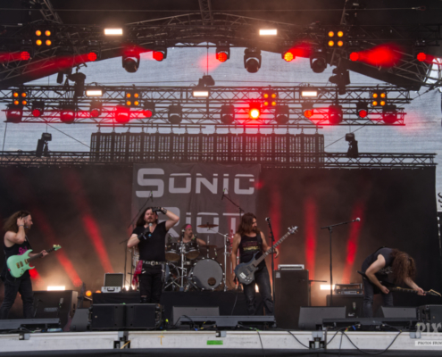 Nun folgten die Sieger des Bandcontests, die schon damals die Zuhörer mit ihrer Musik und Sympathie verzauberten. Sonic Riot, die Band mit dem Sänger mit der auffälligen und markanten Stimme hat dann alle Leute wach gemacht und mitgerissen. So gab es zu früher Stunde schon eine coole Show bei richtig toller Stimmung zu erleben. Manchmal ist es eben doch besser, sich gleich zu Beginn des Tages auf das Festivalgelände zu begeben. Von der Band aus Graz wird man in Zukunft mit Sicherheit noch sehen und hören – auch der Einladung zur Signing Session und zum Merch sind zahlreiche Festivalbesucher gefolgt.