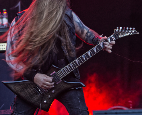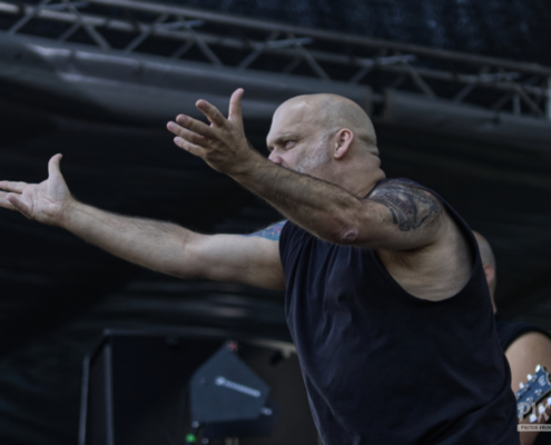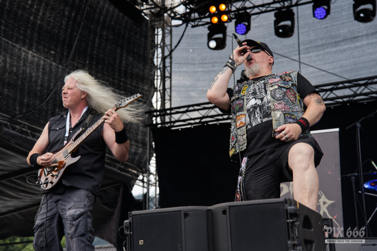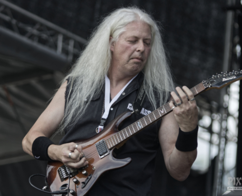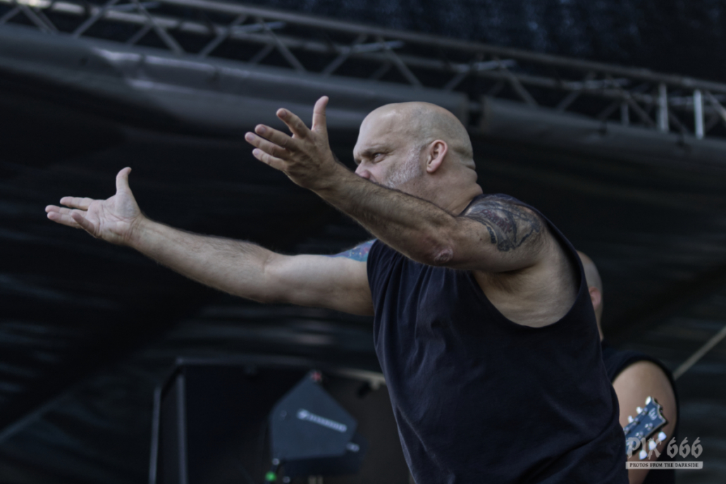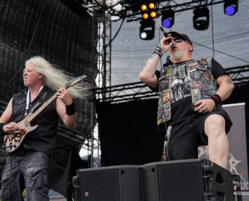 Jetzt war wieder Zeit für eine Metal-Legende. Über 25 Jahre ist es inzwischen her, dass Blaze Bayley Sänger der Band Iron Maiden war. Nun zieht er mit seiner nach ihm benannten Band von Bühne zu Bühne und von Festival zu Festival. Mit seiner gestenreichen Show animierte er gekonnt das Publikum – ein echter Bühnenprofi eben. Die Fans standen nun dicht gedrängt und streckten der Band die Fäuste und die Metalhände entgegen. Die gut gelaunten Musiker schmetterten dem Publikum Songs von den Iron Maiden Alben ‚The X Factor‘ und ‚Virtual XI‘ um die Ohren. Die Stimmung war nun unglaublich und Blaze Bayley stand auf der Bühne und wollte das Publikum vor Begeisterung schreien hören – wie ein Animateur bei einer Laola Welle stachelte er die Fans immer wieder an und adelte die Österreicher zum Schluss als „unglaublich tolles Publikum“.