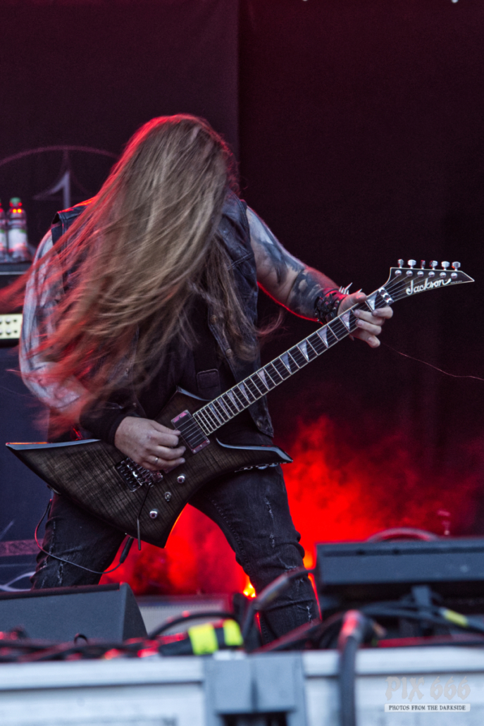 Die Zeit rannte nun und das Festival ging schon auf die Zielgerade. Toll geschminkt betrat nun mit 1349 eine norwegische Black Metal Legende die Bühne. Mit ihren finsteren Tönen vertrieben sie die letzten Sonnenstrahlen des Tages. Die Band hatte neben den Songs aus der weit über 25-jährigen Karriere auch einen Titel vom im Oktober 2024 erscheinenden neuen Album ‚The Wolf And The King‘ mit dabei. Toller Sound, schönes Bühnenlicht und jede Menge Nebel sorgten für eine fabelhafte Atmosphäre und ließen die Black Metal Herzen schneller schlagen. Wer mehr von 1349 sehen mag, der sollte sich am 12. Oktober 2024 auf den Weg in die Arena Wien machen, denn die Norweger nehmen am Vienna Metal Meeting 2024 teil – dann vielleicht schon mir mehr neuem Material.