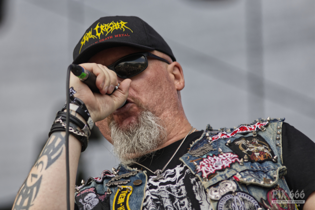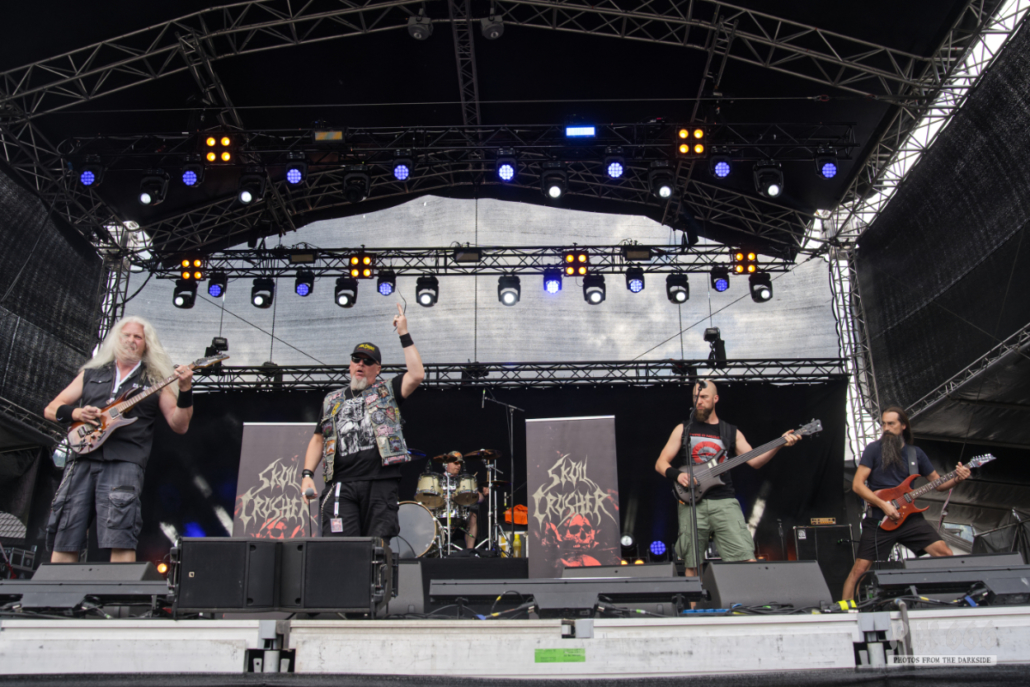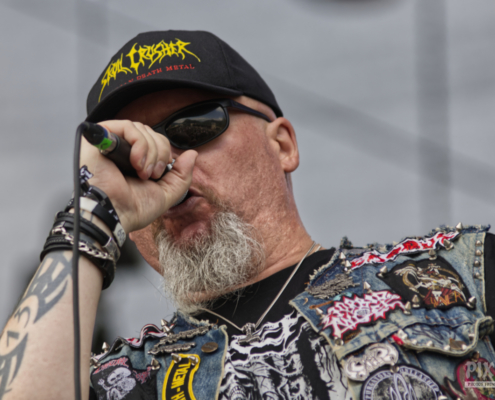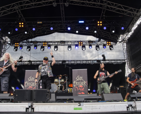 Harte Töne gab es dann bei der österreichischen Death Metal Band Skull Crusher, die ihren ausgefallenen Auftritt vom letzten Jahr nun nachholen konnten. Im Vorjahr wurden sie kurzfristig durch die Band Krankheit ersetzt. Nach den Songs gab es jeweils lautstarken Jubel, so zum Beispiel nach ‚Vaporize‘ von der EP ‚Messiah‘. Das Quintett präsentierte dann hier in Leoben auch noch nagelneue Songs. „Die folgenden drei Lieder sind von unserer neuen Mini CD ‚The Nil‘.“ sagte Sänger Andreas. Auch die neuen Songs krachten ordentlich los und brachten die Haare der Metalfans in Bewegung. Auch nach über 30 Jahren Bandgeschichte sind Skull Crusher kein bisschen müde und waren genau die richtige Nachmittagsbeschallung für alle Death Metal Liebhaber.