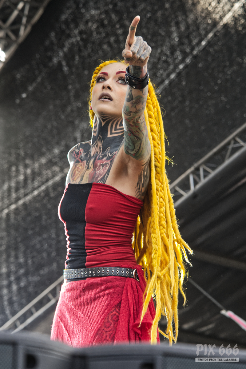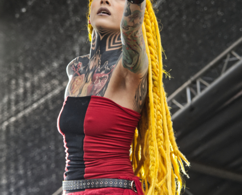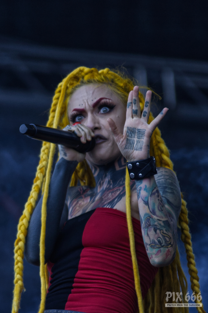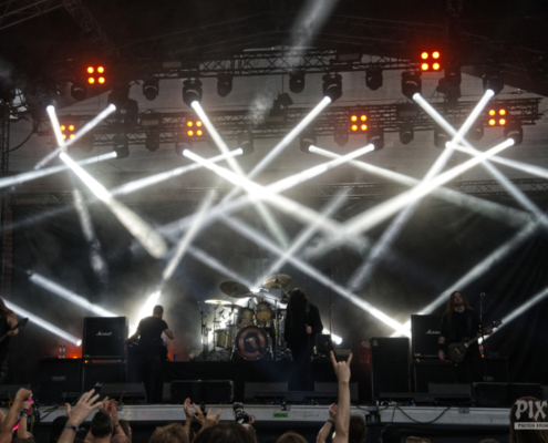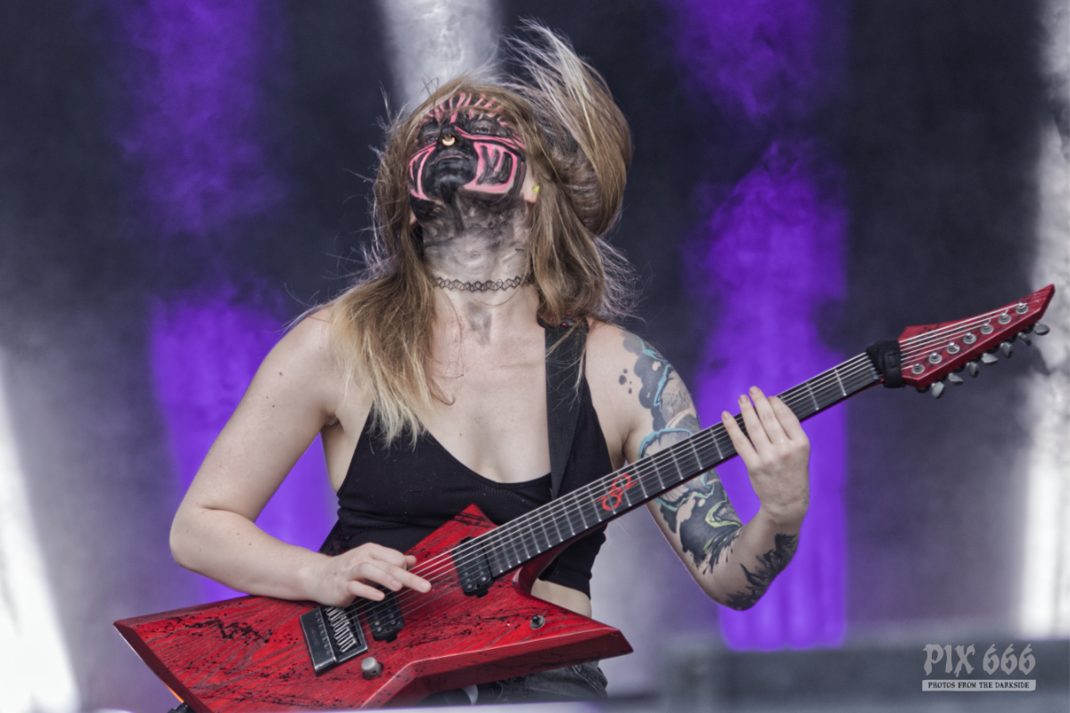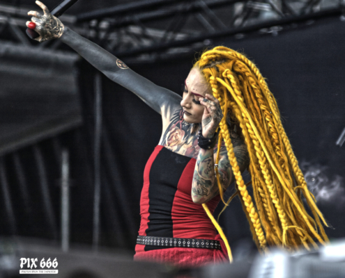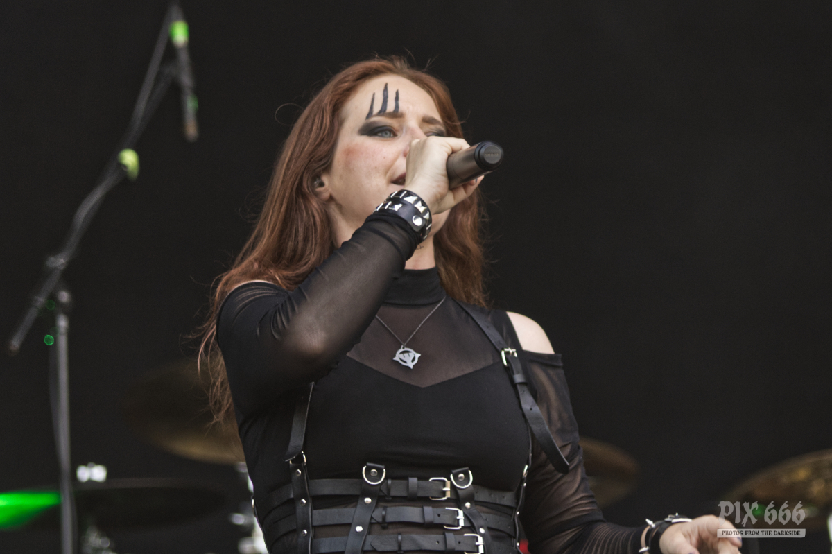 Nun gab es mit Infected Rain einen weiteren Rückkehrer nach Leoben. Die Band um Sängerin Lena Scissorhands verzauberte mit ihrer Show bereits 2022 das Area 53 Festivalpublikum. Und wir übertreiben nicht, wenn wir sagen, dass Infected Rain auch in diesem Jahr sowas wie das Tageshighlight vieler Fans war, zumindest sprach die nun riesige Kulisse eindeutig dafür. Die Band aus Moldawien hat vor kurzem ihr brandneues Album ‚Time‘ veröffentlicht und somit jede Menge neues Material, welches sie den Metalheads um die Ohren spielen konnten. So präsentierten Infected Rain sechs neue Songs, die es alle in sich hatten. Aber auch die bekannten Stücke ‚Fighter‘ und ‚The Realm Of Chaos‘ vom Album ‚Ecdysis‘ sorgten für fantastische Stimmung. Infected Rain lieferten eine grandiose Show für Augen und Ohren und waren der Publikumsmagnet Nummer 1 am Donnerstag.