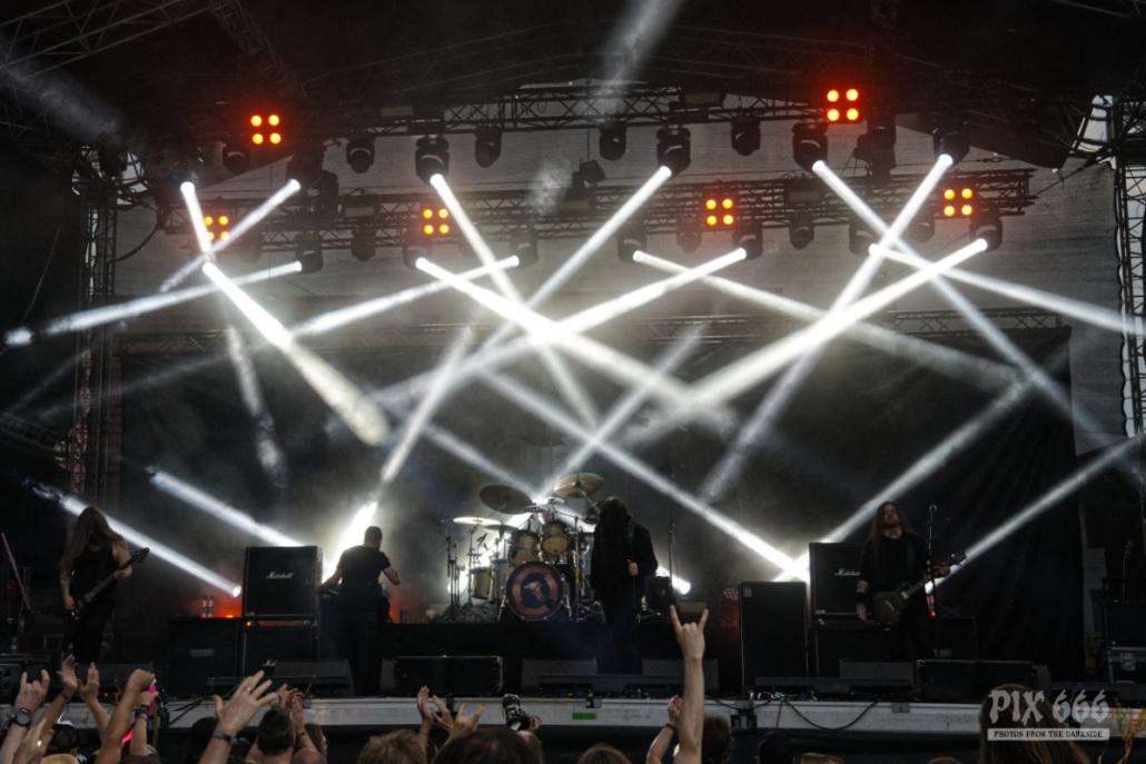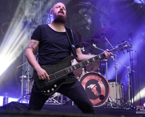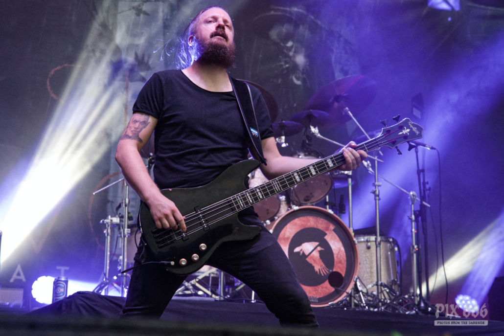 „Wir sind Katatonia aus Schweden.“ hiess es dann und die Männer der beliebten und erfolgreichen Dark Metal Band standen bereit für ihre Show. Mit ihrem Album ‚Sky Void Of Stars‘ gelangen der Band die höchsten Chartseinstiege in der über 30-jährigen Bandhistorie. Schweiz #3, Deutschland #5, Österreich #13 – das kann sich echt sehen lassen. Nach einem kurzen Regenschauer war es inzwischen wieder trocken, aber ziemlich grau – dadurch wirkte das Bühnenlicht schon wie bei einer Show am späten Abend. Katatonia starteten mit dem Song ‚Birds‘ von ihrem neuen Hitalbum, gefolgt vom über zehn Jahre alten Klassiker ‚Leathan‘. Aber egal ob neu oder alt, Katatonia sorgten mit ihrem düsteren Sound für eine tolle Atmosphäre, die eigentlich prima zur Farbe des Himmels passte. „Danke – vielen Dank“ sagte Sänger Jonas und fragte weiter Richtung Fans „Habt ihr eine gute Zeit?“ Das Publikum schüttelte genüsslich im Takt die Haare, als zum Schluss mit ‚My Twin‘ und ‚July‘ nochmal zwei Klassiker vom Album ‚Night Is The New Day‘ rausgehauen wurden. Katatonia bedankten sich mit „Danke schön“ auf Deutsch von ihrem Fans in Leoben.