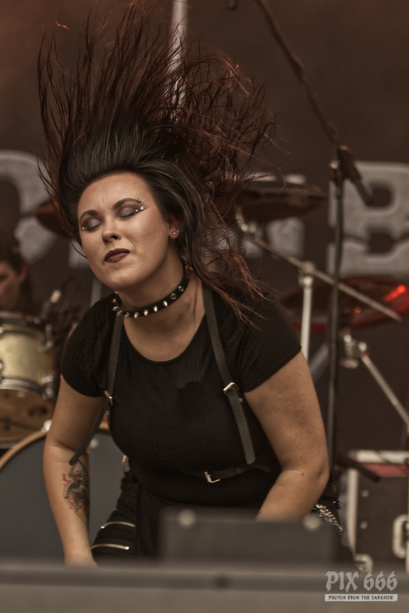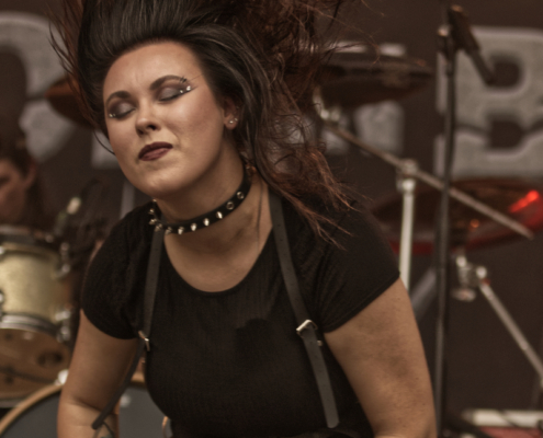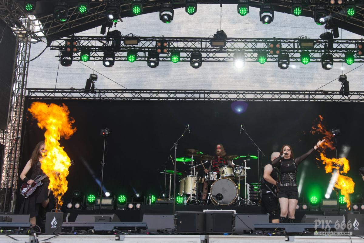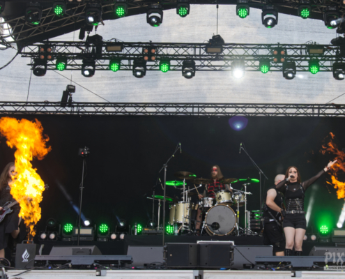 Weiter ging es mit guter Laune, Feuer und Dudelsack – und dieses mal mit Frauenpower am Mikrofon. Wir sind Psych aus Graz, sagte die Sängerin. Die Band lieferte eine coole Mischung aus Metal und ihrem sogenannten Dudelrock. Das hat richtig Spaß gemacht und nach einer kurzen Ansage waren dann auch alle Hände in der Luft. Die Festivalbesucher hatten gleich richtig Bock, mitzumachen – schließlich hat man ja auch ein Jahr auf das Area 53 Festival warten müssen. Eines der Highlights der Show war das ‚99 Luftballons‘ Cover – aber auch die eigenen Songs der Band gehen richtig gut ab. Schaut doch einfach mal die sehenswerten Videoclips von Psych auf YouTube an.