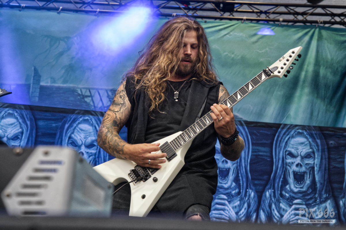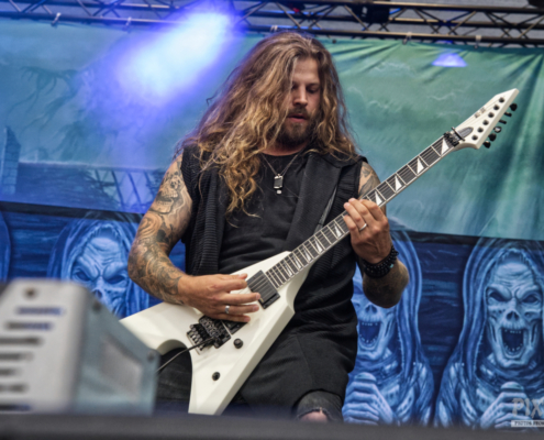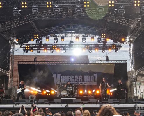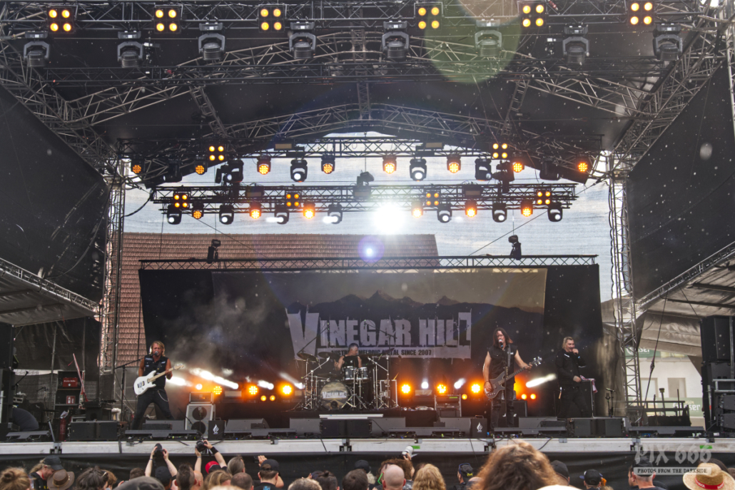 „Es ist so geil, hier zu spielen“ sagte Sänger Thomas von den neu formierten Lokalmatadoren von Vinegar Hill. Die Band aus Trofaiach, ganz in der Nähe des Festivalgeländes gelegen, feierte 2022 mit dem Album ‚Earthbound‘ das 15-jährige Bandjubiläum. „Jetzt will ich eine Wall of Death sehen“ hiess es dann und das Festivalvolk gehorchte. Das Gelände füllte sich weiter.  Dann wurde Area 53 Veranstalter und Ex-Vinegar Hill Gitarrist Oliver Seebacher auf der Bühne gebeten und wurde von den Fans stürmisch abgefeiert. Einige Tage nach dem Festival wurde bekanntgegeben, dass Oliver Seebacher als fixes Bandmitglied zu Vinegar Hill zurückgekehrt ist. „Geht’s euch gut? – uns geht’s super“ hiess es dann und beim nächsten Song waren alle Hände oben.  Die Melodic Death Metal Band hatte dann sogar einen Song vom kommenden Album dabei und es gab sogar einen kleinen Circlepit. Dieses tolle Live-Erlebnis wurde glücklicherweise mitgefilmt – wir sind schon gespannt, wann und wo man das Material der Band sehen und hören kann.