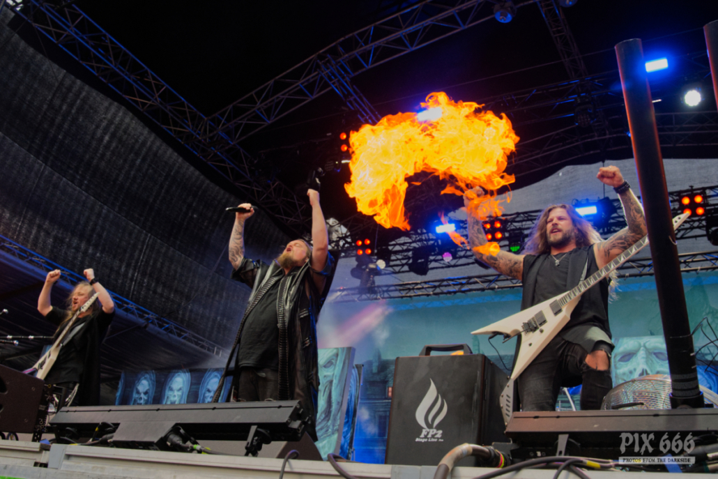Weiter ging es mit der deutschen Powermetal Band Orden Ogan. Sänger Sebastian hat den österreichischen Fans erstmal kurz die Bedeutung des Bandnamens erklärt, der aus dem altkeltischen stammt. Der ‚Orden der Angst‘ legte dann mal gleich mit einem Klassiker los. ‚F.E.V.E.R‘ aus dem Jahr 2014 hat als Videoclip bereits unglaubliche 4.6 Millionen Aufrufe. Nach dem Opener kam die Frage „Habt ihr Bock auf noch einen?“ Als nächstes donnerte ‚Conquest‘ vom aktuellen Album ‚The Order Of Fear‘ durch die Lautsprecher. Und wieder kam die Frage, ob die Fans noch Lust auf weitere Songs haben – „Wollt ihr noch einen, zwei, drei, vier? Die Stimmung während der Show war super, die Band unglaublich sympathisch. „Egal wo wir hinkommen -Metalfans sind eine große Familie“, sagte Sebastian und erntete dafür reichlich Applaus und jede Menge in die Luft gestreckte Fäuste. Nun folgte der Titelsong des neuen Albums, den hätte Orden Ogan laut eigener Aussage auch ‚The Order of Beer‘ nennen können. Na dann Prost Jungs, das war echt cool.