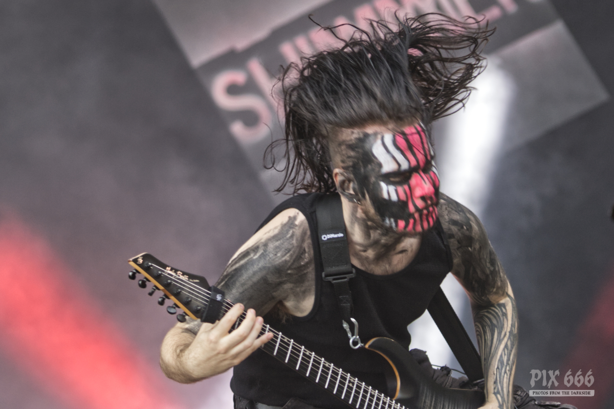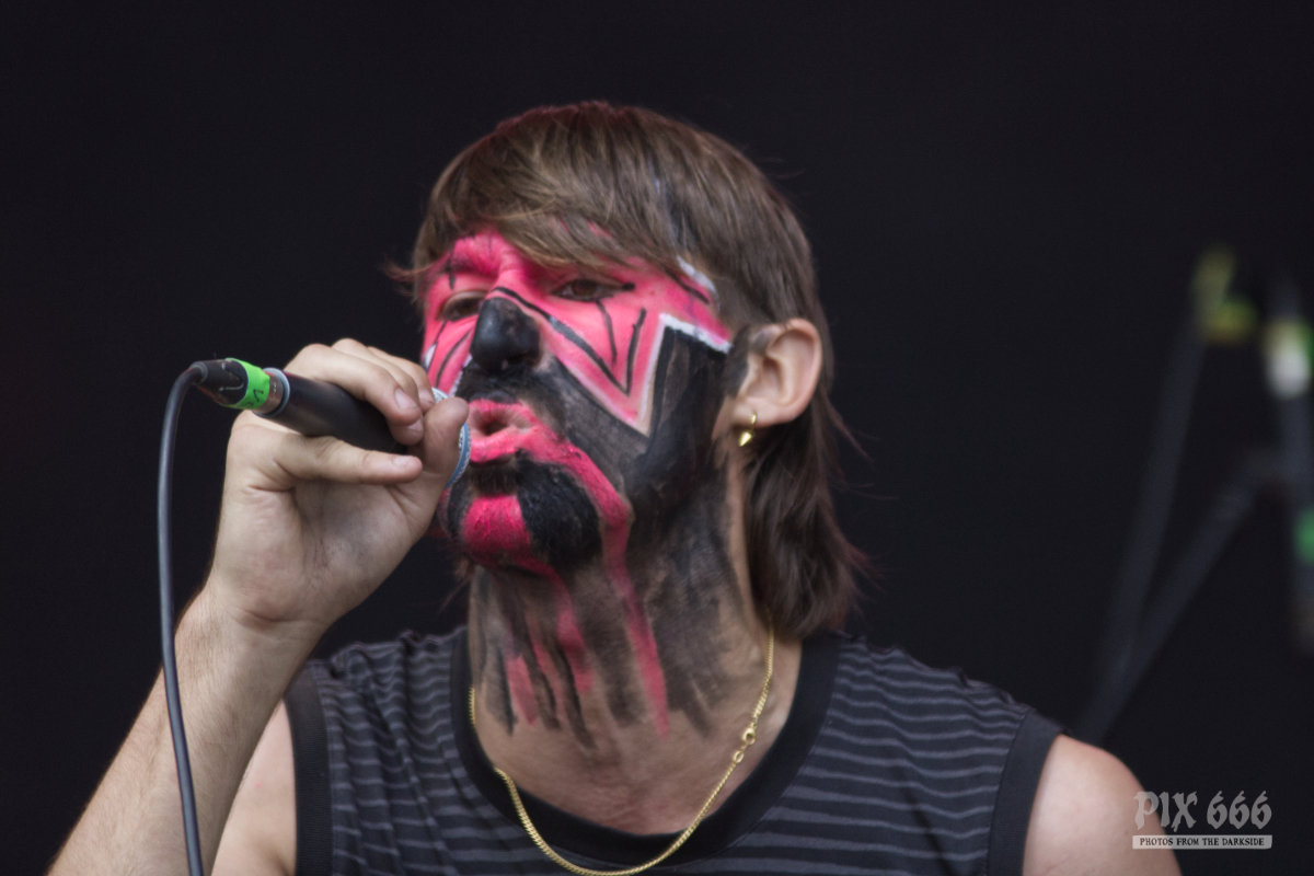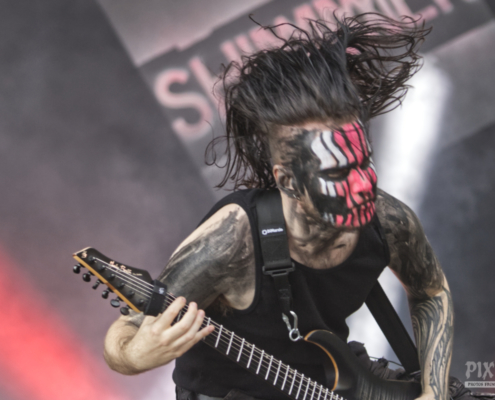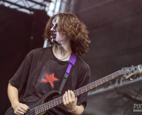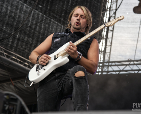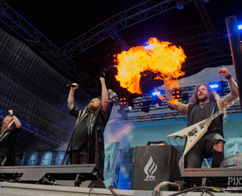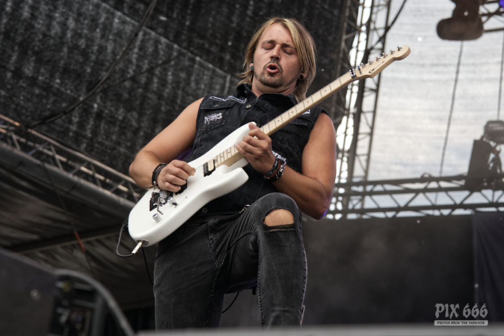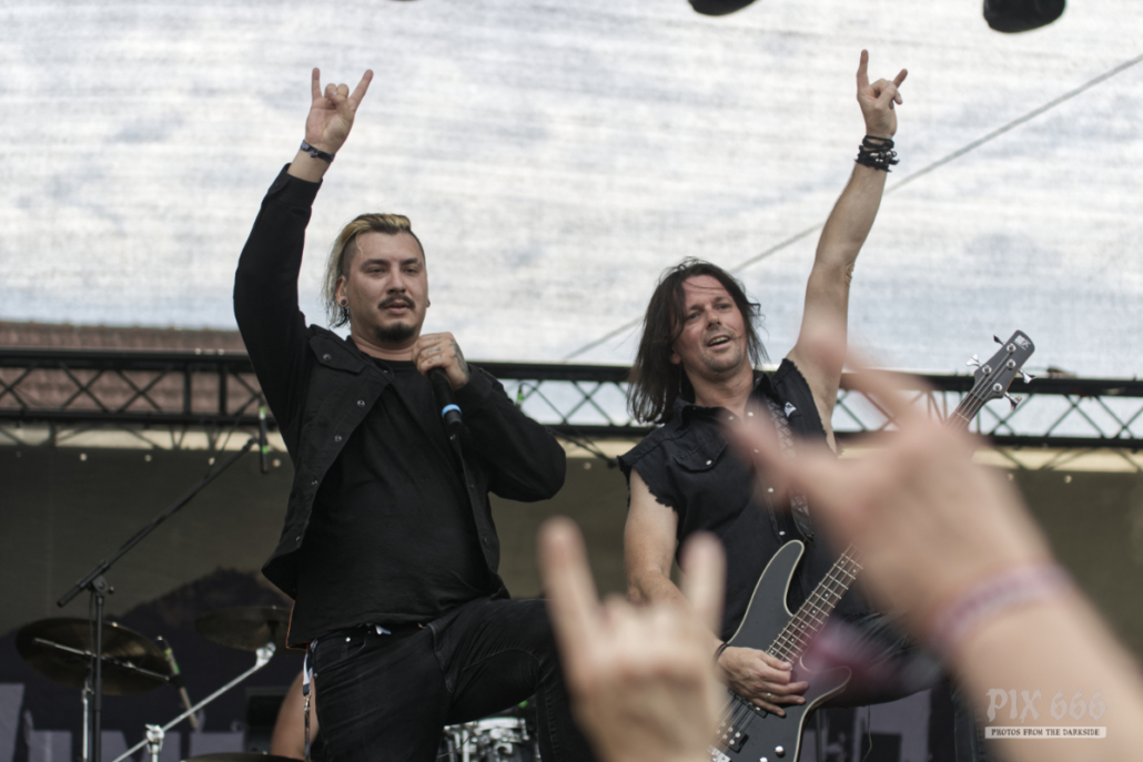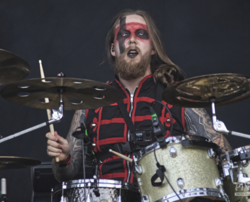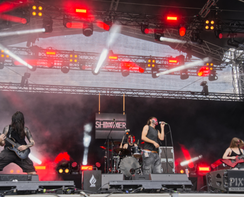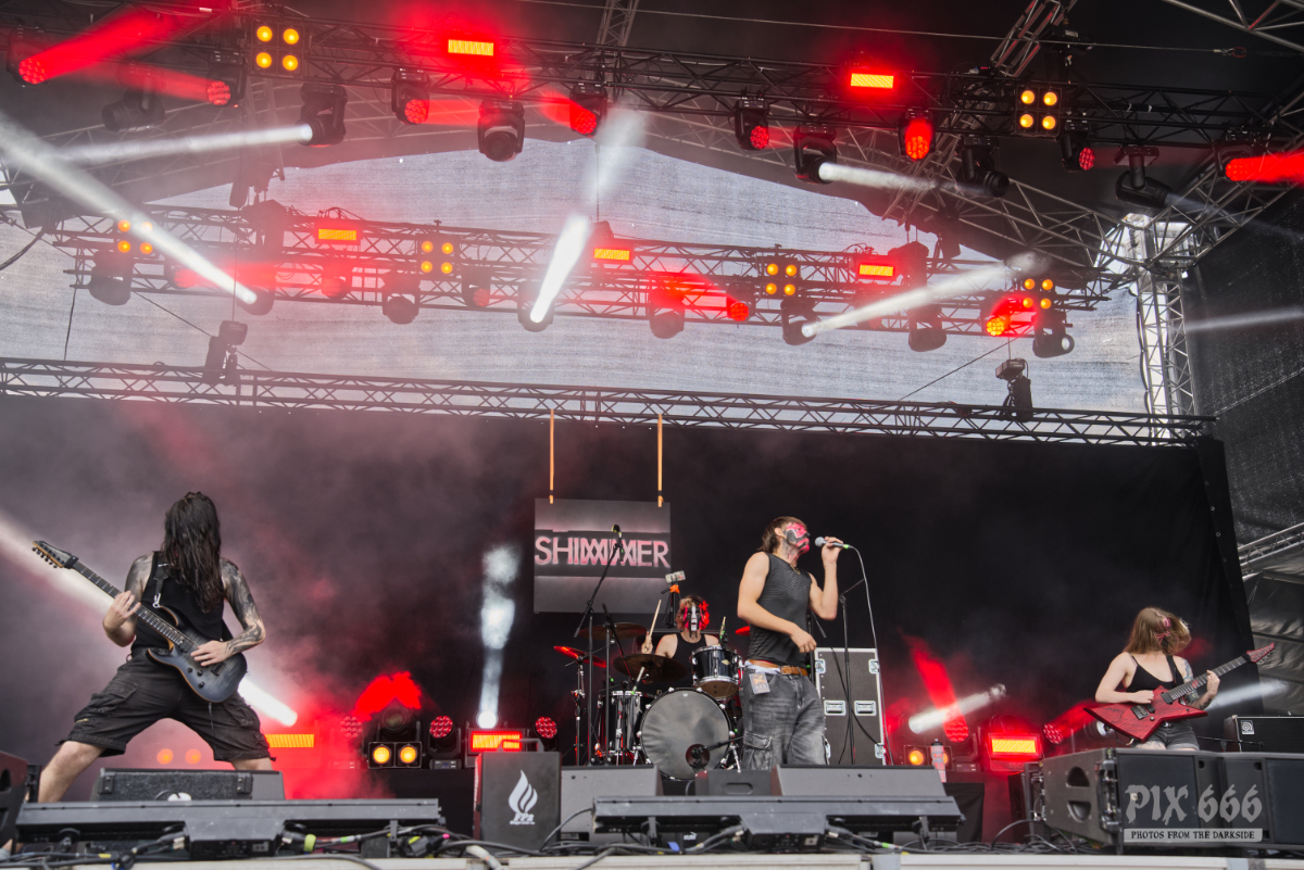 Schon bei der ersten Band loderten die Flammen und der erste kleine Circlepit sorgte schon kurz nach Festivaleröffnung für prächtige Stimmung. Shimmer aus Graz eroberten sich den Festivalstartplatz beim Songcontest, der einige Monate vor dem Festival in der Tenne Leoben stattfand. „Schön, dass schon viele da sind“, sagte der Sänger der Band dann zufrieden. Optisches Markenzeichen der Band waren die rot-schwarz geschminkten Gesichter, so bleibt man auf jeden Fall noch besser in Erinnerung. Schaut doch mal auf Facebook und Instagram bei Shimmer vorbei.