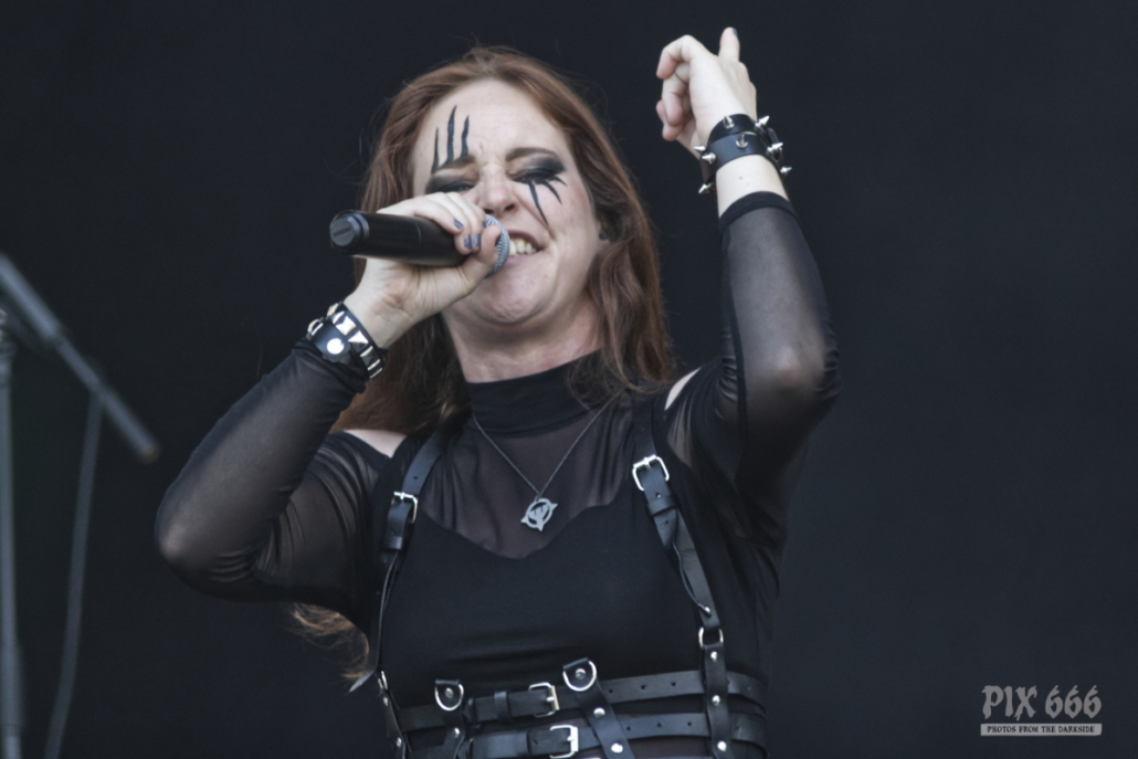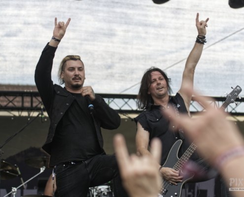 Weiter ging es wieder mit Metal mit weiblichem Gesang. Die Band Mission In Black aus Deutschland hatte ihr aktuelles Album ‚Profit Reigns Supreme‘ mit nach Leoben gebracht und das Festivalgelände hatte sich inzwischen richtig gut gefüllt. Wie schon 2021 sorgten Mission In Black für viele glückliche Gesichter im Publikum. Die Stimme von Sängerin Steffi überzeugt nicht nur auf dem Album, sondern auch live auf einer Open Air Bühne – das war richtig stark.  „Vielen Dank, habt ihr Spaß?“, fragte die Frontfrau Richtung Fans und ihr entgegnete ein stürmischer Applaus. Nach dem letzten Song gab es noch ein Abschlussfoto mit den Metalfans als Erinnerung an diesen schönen Auftritt.