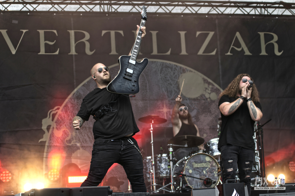 „Wir sind Vertilizer“ hieß es gleich zu Beginn – aber Vertilizar sind längst keine Unbekannten mehr, denn bereits vor zwei Jahren lieferten sie hier beim Area 53 Festival eine tolle Show ab. Andere werden die Jungs aus Wels vielleicht auch vom Nova Rock oder Donauinselfest kennen. Die Stimmung war gleich richtig gut, Band und Publikum hatten jede Menge Spaß. Sänger Oliver nannte das, was die Fans machten eine ‚Kleine Aufwärmrunde“ und sagte dann „Ich bin gespannt, was bei der nächsten Nummer passiert.“ Und schon war vor der Bühne mal so richtig Alarm, und das sollte bis zum Ende der Show so bleiben. Wer mehr von Vertilizar hören oder sehen mag – die Band ist in diesem Jahr noch mindestens zweimal in Wien auf der Bühne, zum einen mit einem Akustikset im ((Szene)) Soundgarden und später im Jahr an gleicher Stelle beim Zombieball. Wir sind dabei und ihr solltet euch das auch nicht entgehen lassen.