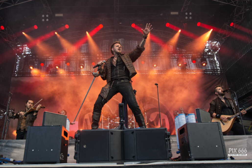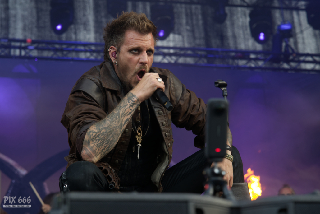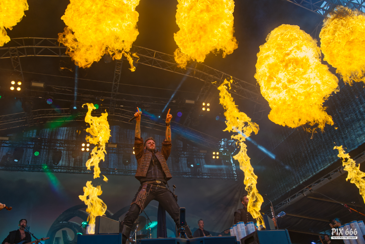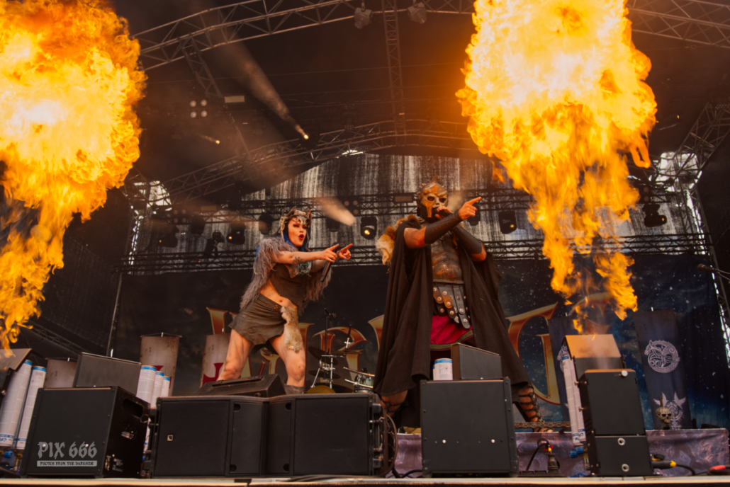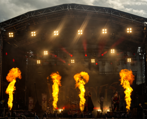 Der Kriegshammer wurde geschwungen und das Area 53 Festival 2025 bebte unter der epischen Wucht der Warkings. Mit einer Show, die irgendwo zwischen antiker Mythologie, Power-Metal und Pyro-Overkill rangierte, lieferten die Krieger eine der aufwendigsten und spektakulärsten Performances des Wochenendes. Das aktuelle Album ‚Armageddon‘, welches am 04. Juli 2025 erschien, hatte es pünktlich zum Area 53 Wochenende bis auf Platz 6 der deutschen Charts geschafft – das Publikum feierte die neuen Singles, genauso wie die Klassiker, mit denen die Warkings das Area 53 bereits 2019 und 2022 im Sturm eroberten. Ein Fan in einem riesigen schwarzen Luftreifen, der auf Händen durch das Publikum surfte, wurde zum Highlight in der Crowd und zog für einen Song die Aufmerksamkeit auf sich. Warkings ließen es sich nicht nehmen, zwischen den Songs viel mit dem Publikum zu sprechen – mal episch, mal augenzwinkernd, aber immer charismatisch. Die Show selbst war ein wahres Spektakel: Feuerfontänen, Nebel, Lichtgewitter – begleitet von hymnenhaften Songs wie ‚Spartacus‘, ‚Sparta‘, oder ‚Gladiator‘. Warkings waren mehr als nur eine Band – sie waren ein Ereignis und das Area 53 Festival ihre Schlachtbühne. Das war beeindruckend und stimmungsvoll und fand viel zu schnell ein Ende.