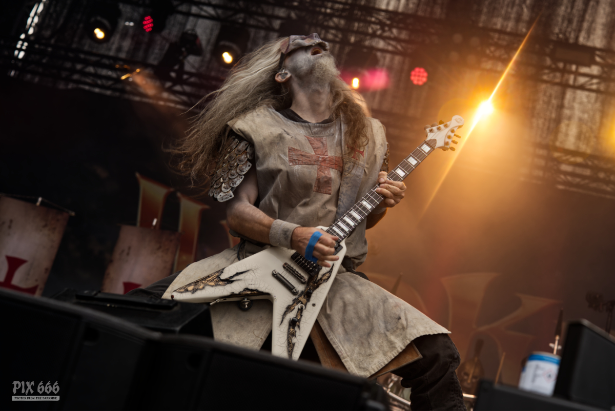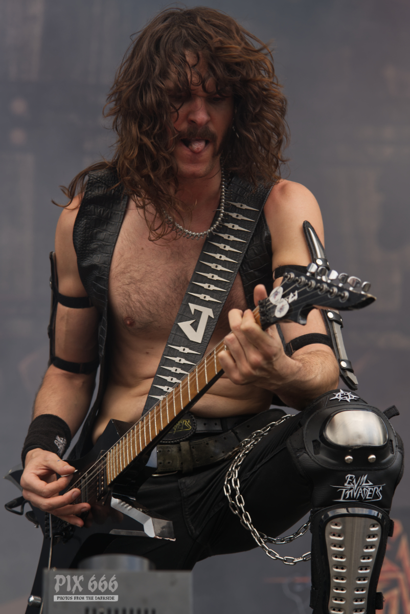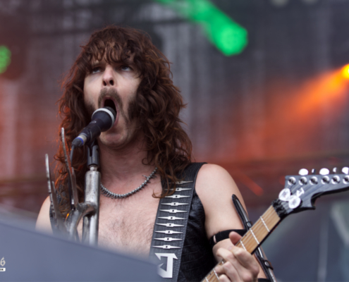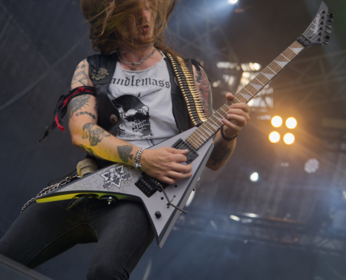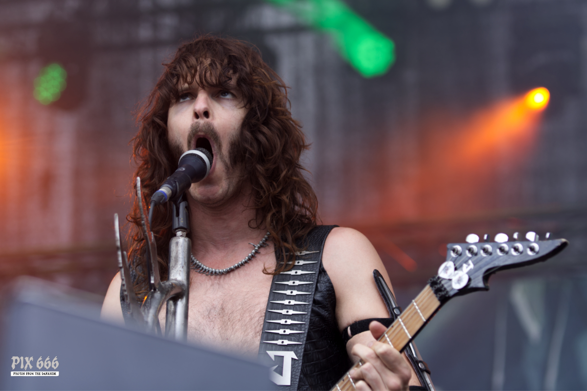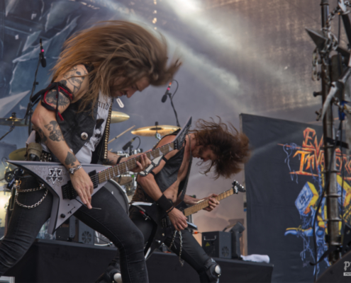 Im Anschluss stürmten Tailgunner die Bühne und lieferten eine der energiegeladensten Performances des gesamten Wochenendes. Die britische Band, die sich dem klassischen Heavy Metal mit einer modernen Kante verschrieben hat, trat am späten Nachmittag auf und verwandelte das Festivalgelände innerhalb kürzester Zeit in ein headbangendes Meer aus Kutten, Luftgitarren und geballten Fäusten. Schon beim ersten Song war klar, dass Tailgunner nicht einfach nur ihre Songs herunterspielen, sondern das Publikum mitreißen wollen – und das gelang ihnen mit beeindruckender Leichtigkeit. Die Band war in bestechender Form – Sänger Craig Cairns überzeugte mit seiner kraftvollen, melodischen Stimme, die stellenweise an Iron Maiden erinnerte. Tailgunner waren mit sehr viel Energie und Spaß bei der Sache und steckte das Publikum an – coole Frisuren und Outfits sorgten auch optisch für das perfekte Heavy Metal Feeling. „Wir spielen jetzt den Titelsong unseres Albums, macht Lärm“ hieß es dann. Die Metalfans ließen sich natürlich nicht zweimal bitten und verwandelten das Festivalgelände in eine Metalarena. Auch die Band war von den wilden Fans begeistert: Ihr wart unglaublich, vielen Dank.“