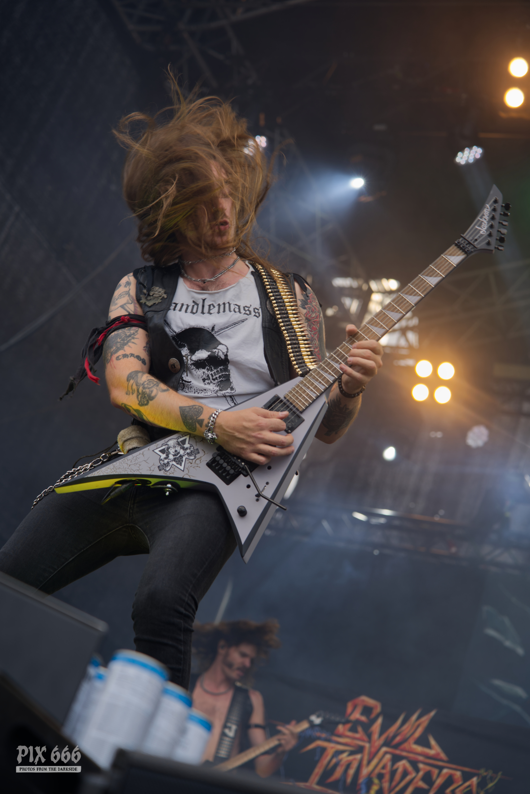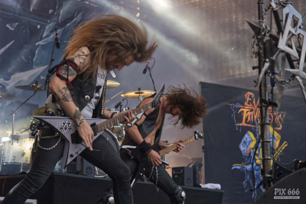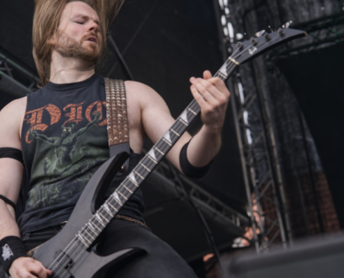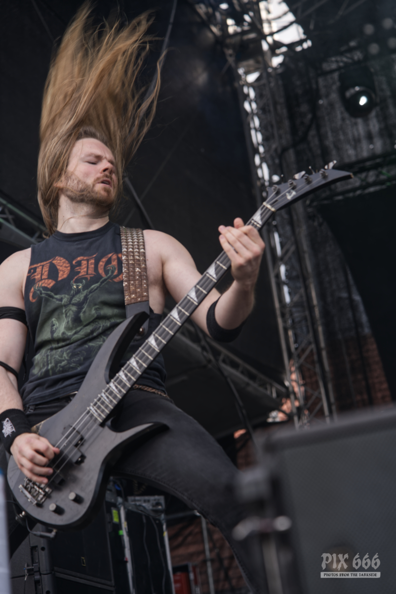 Im Anschluss stürmten Tailgunner die Bühne und lieferten eine der energiegeladensten Performances des gesamten Wochenendes. Die britische Band, die sich dem klassischen Heavy Metal mit einer modernen Kante verschrieben hat, trat am späten Nachmittag auf und verwandelte das Festivalgelände innerhalb kürzester Zeit in ein headbangendes Meer aus Kutten, Luftgitarren und geballten Fäusten. Schon beim ersten Song war klar, dass Tailgunner nicht einfach nur ihre Songs herunterspielen, sondern das Publikum mitreißen wollen – und das gelang ihnen mit beeindruckender Leichtigkeit. Die Band war in bestechender Form – Sänger Craig Cairns überzeugte mit seiner kraftvollen, melodischen Stimme, die stellenweise an Iron Maiden erinnerte. Tailgunner waren mit sehr viel Energie und Spaß bei der Sache und steckte das Publikum an – coole Frisuren und Outfits sorgten auch optisch für das perfekte Heavy Metal Feeling. „Wir spielen jetzt den Titelsong unseres Albums, macht Lärm“ hieß es dann. Die Metalfans ließen sich natürlich nicht zweimal bitten und verwandelten das Festivalgelände in eine Metalarena. Auch die Band war von den wilden Fans begeistert: Ihr wart unglaublich, vielen Dank.“