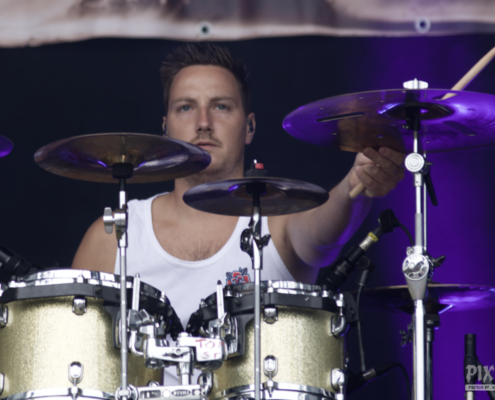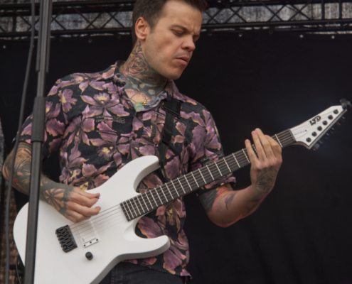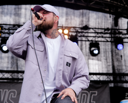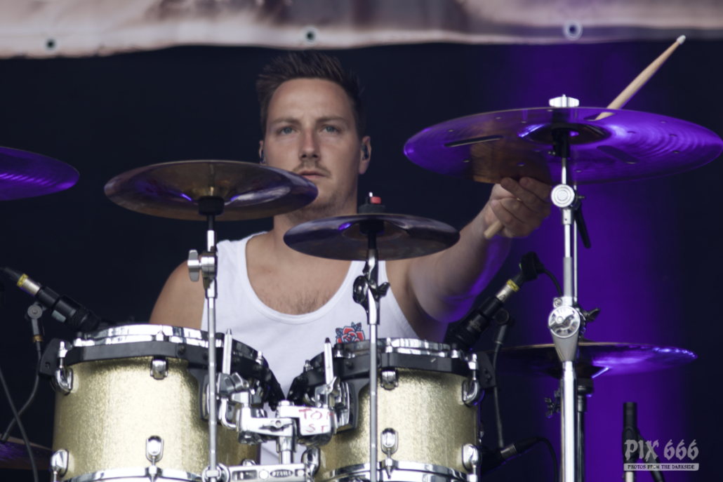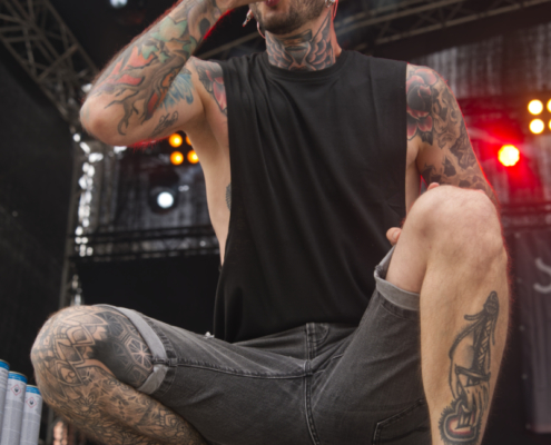 Gleich danach sorgten Vandans für einen atmosphärisch intensiven Moment. Die Mischung aus Post-Hardcore und einer Brise Pop-Punk, untermalt von lila-blauen Lichteffekten, sowie gezielt eingesetzten Pyro-Effekten sorgten für ein visuelles und akustisches Inferno. Schon der Opener ‚Still Sinking‘ zeigte, wohin die Reise geht. Vandans waren kompromisslos und technisch auf den Punkt. Das Wechselspiel der beiden Stimmen war hervorragend, sowohl das Shouten, als auch der Cleangesang konnten voll überzeugen. Das neue Album ‚Everything That Won’t Remain‘ ist ein ganz klarer Kauftipp. Gemixt und gemastered hat diese Scheibe übrigens kein Geringerer als Christoph von Annisokay. Im Publikum ging es inzwischen auch richtig zur Sache, die Leute hatten ihren Spaß. Mit ‚Archetype‘ beendeten Vandans ihr Set und hinterließen ein beeindrucktes Publikum. Vandans lieferten eine durch und durch stimmige Show – musikalisch präzise, visuell eindrucksvoll. Die Open Air Show hat gezeigt, dass Vandans auch auf großen Bühnen überzeugen können und, dass die Band nach wie vor zu den ernstzunehmendsten Größen der heimischen Szene gehören.