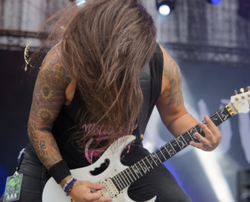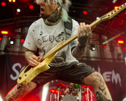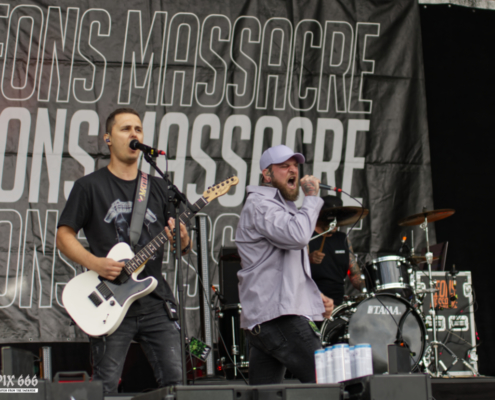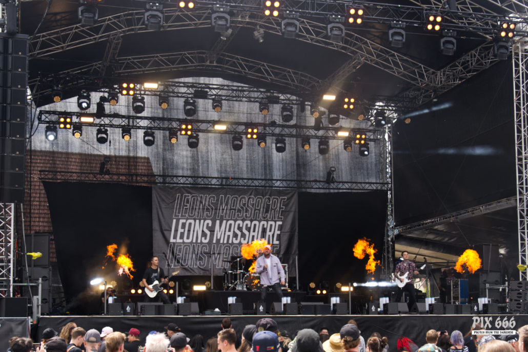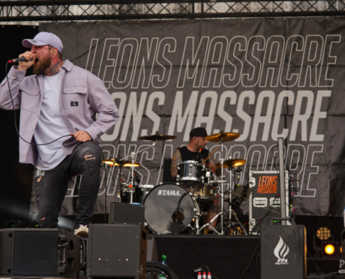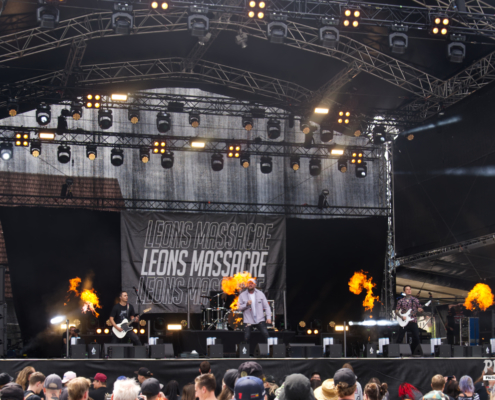 Wer dachte, hier gibt es auch mal Zeit zum Verschnaufen, musste sich dafür wirklich die Pausen für den Umbau freihalten, denn während der Show von Leons Massacre war daran nicht zu denken. Die Metalcore-Walze aus der Steiermark legte einen Auftritt hin, der alles andere als gemächlich war – wuchtig, energiegeladen und mit unbändiger Live-Power rissen sie die Fans mit – und das bei ihrer Area 53 Premiere. Von der ersten Sekunde an war klar: Hier wird nichts zurückgehalten. Breakdowns, die die Erde beben ließen, Screams, die unter die Haut gingen, und ein Publikum, das sich dankbar in die Circle Pits stürzte. Songs wie ‚Gravity‘ oder ‚Downfall‘ waren defintiv richtig starke Abrisshymnen. Um die Stimmung noch mehr anzuheizen bat die Band die zahlreichen Fans noch näher zur Bühne. Bei der mitreißenden Show gab es sogar die erste kleine Feuershow des Festivals. Leons Massacre haben einmal mehr bewiesen, dass sie auch für die großen Bühnen gemacht sind. Wer aber Lust auf eine intime Clubshow hat, dem möchten wir den 2. August ans Herz legen – an dem Abend wird die Band das Replugged in Wien zerlegen.