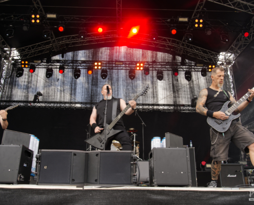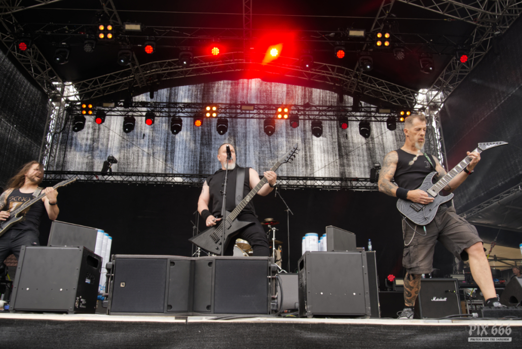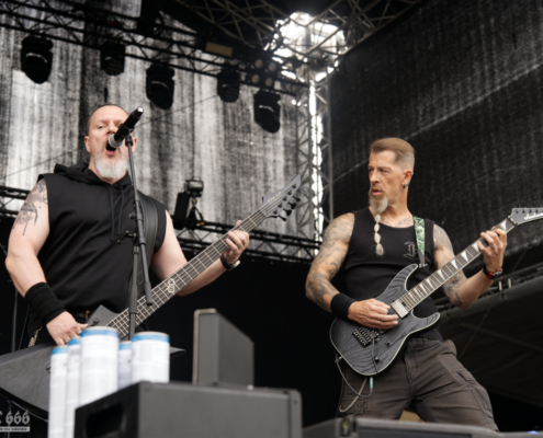 Die Geschichte von Mastic Scum reicht inzwischen über drei Jahrzehnte zurück. Während dieser Zeit sind sechs Alben, sowie einige EPs erschienen. Vor 15 Jahren gab es sogar eine Nominierung für den Amadeus Award in der Kategorie Hard & Heavy. Mit einer kompakten, intensiven Show über 40 Minuten sorgte Mastic Scum am Samstag für rohen, ungeschliffenen Death Metal auf der Bühne des Area 53 Festivals. Ohne große Schnörkel, aber mit voller Power und viel Spielfreude ließen sie den Fans keine Zeit zum Verschnaufen. Mit ‚Slavebreed‘ vom aktuellen Album ‚ICON‘ ging es gleich mit einem richtigen Kracher los. Die Band präsentierte eine druckvolle Performance, die vor allem durch die rohe Energie und den dröhnenden Sound beeindruckte. Das Publikum honorierte das kompromisslose Set mit lautstarkem Applaus und begeistertem Headbangen. Die Band bedankte sich dann auch bei den zahlreichen Fans – „wir sind jetzt 30 Jahre im Geschäft und das alles ist nur möglich durch euch – die treuen Fans“. Mastic Scum sind eine Band, die den klassischen Death-Metal-Spirit auf die Bühne bringt – direkt, intensiv und sie spielten definitiv mit die schnellsten Songs des gesamten Wochenendes.