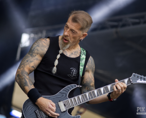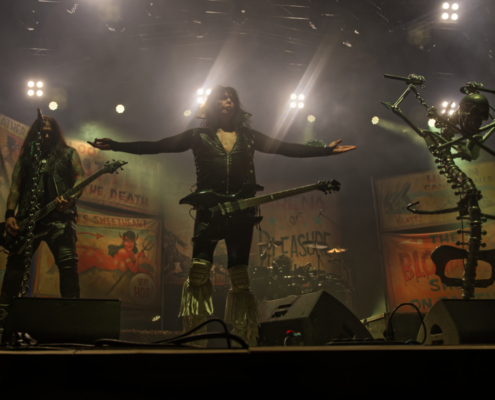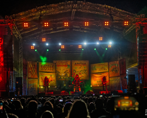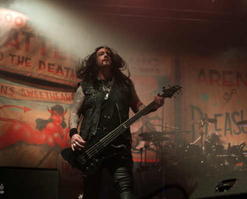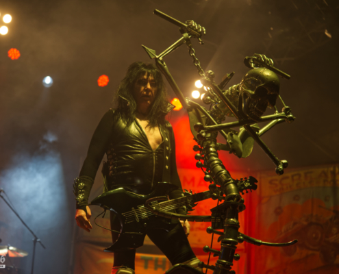 Auch wenn sie sich etwas verspätet hatten – als W.A.S.P. schließlich die Bühne des Area 53 Festivals 2025 betraten, war jede Sekunde des Wartens vergessen. Die Kultband um Blackie Lawless bewies einmal mehr, warum sie seit Jahrzehnten zur Speerspitze des Heavy- und Glam-Metal gehört. Die Bühne war geschmückt mit interessanter, bunter Deko, die trotzdem düster und theatralisch wirkte – passend zum Mythos W.A.S.P. – der ikonische Mikrofonständer war natürlich auch dabei und Blackie ließ es sich nicht nehmen, diesen immer wieder in Szene zu setzen – mit starken Posen und seiner gewohnten Ausstrahlung. Auch das Outfit mit Fransenhose, Kniepolstern und einem angedeuteten Kreissägeblatt an den Unterarmen hatten das gewisse Etwas. Die Show des Headliners am Donnerstag war sehr gut besucht. Die amerikanische Kultband, die nun bereits seit mehr als 40 Jahren unterwegs ist, verwandelte das Gelände in ein einziges Meer aus Fäusten und Nostalgie – und zeigten, dass echte Legenden auch 2025 noch mit voller Wucht abliefern können. Die im Laufe der Jahre angesammelte Menge an Songs sorgten dafür, dass W.A.S.P. einige davon in Medleyform präsentierte. Zum Abschluss der Show packten W.A.S.P. dann noch die Hits aus der Mitte der 80er Jahre aus – ‚Wild Child‘ und ‚Blind in Texas‘ waren der würdige Abschluss eines unvergesslichen Festivaltages voller Atmosphäre.