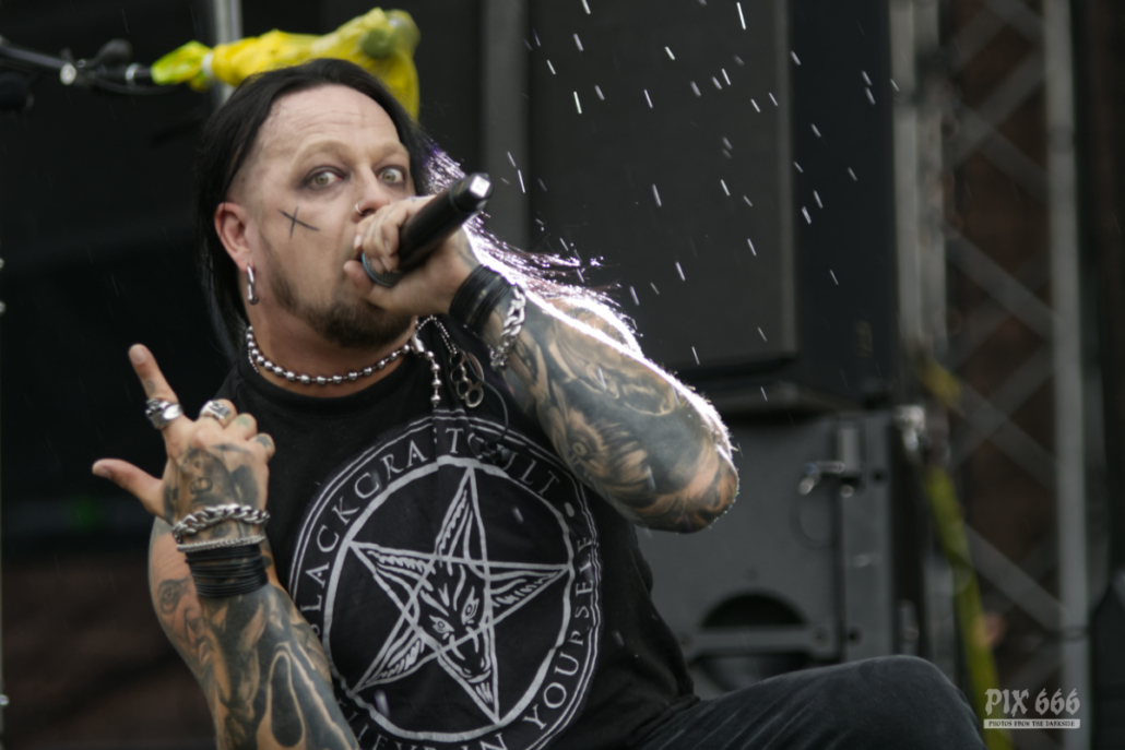 Und weiter ging es mit Metal-Legenden – denn am Freitagabend betraten nun Lordi die Bühne. Die finnischen Monster-Rocker verwandelten das Gelände in eine bizarre Horror-Metal-Show mit ihren längst berühmt gewordenen Kostümen und einem ordentlichen Schuss Selbstironie. Was die Besucher des Area 53 Festivals erlebten, war ein Spektakel, das sowohl visuell als auch musikalisch voll ins Schwarze traf. Schon beim ersten Song war klar – Lordi sind gekommen, um abzuliefern. Mr. Lordi selbst, massiv wie eh und je, thronte in seinem typischen Leder-Monster-Outfit über der Bühne und schmetterte seine Zeilen mit beeindruckender Stimmgewalt ins Publikum. Zwischen den Songs gab es kurze, witzige bis makabere Ansagen, und immer wieder gab es kleine Showeinlagen, die sich wie ein roter Faden durch das Konzert zogen. Zum Beispiel wurde ausgiebig der Unterschied im Deutschen zwischen ‚Ja‘ und ‚Ja Ja‘ analysiert. Aber natürlich kam die Musik auch nicht zu kurz, die Band war bestens eingespielt, die Gitarren kamen fett rüber. Natürlich gab es zum Schluss auch noch den weltberühmten Song ‚Hard Rock Hallelujah‘, der inzwischen weit über 100 Millionen Views auf YouTube hat. Auch ohne Pyro-Effekte lieferten Lordi eine sehens- und hörenswerte Show ab und das Area 53 Publikum war total aus dem Häuschen.