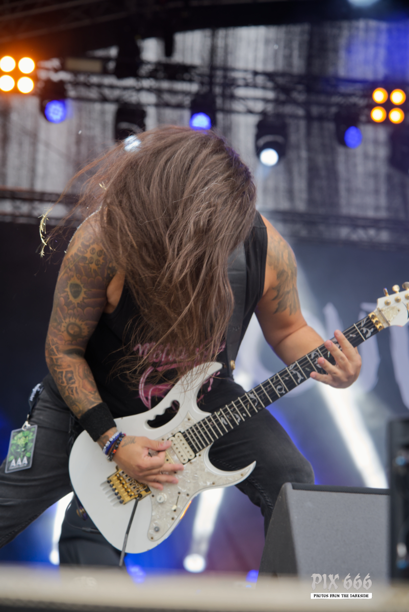 Am Freitagabend wurde das Area 53 Festival in Leoben dann zum Schauplatz einer echten Rock-’n’-Roll-Legende: Phil Campbell, über drei Jahrzehnte Gitarrist von Motörhead eroberte mit seinen Söhnen die Steiermark. Als Phil Campbell and the Bastard Sons drehten sie voll auf und es wehte ein Hauch Motörhead-Geschichte über das Festivalgelände. Die Musiker lieferten eine Show ab, die durch rohe Energie, Spielfreude und jede Menge Nostalgie glänzte. Schon beim Opener wurde klar, dass hier keine routinierte Altherren-Combo am Werk war, sondern eine hungrige, bestens eingespielte Rockband. Der Sound war druckvoll, rau und ehrlich – genau so, wie man es von einer Band erwartet, deren Wurzeln tief im britischen Hardrock und Metal liegen. Auch Sänger Joel Peters, der seit 2021 Teil der Band ist, passte perfekt in das Campbell Familienpaket rein und überzeugte mit einer fantastischen Bühnenpräsenz. Spätestens bei ‚Born to Raise Hell‘ überzeugten die Fans auch beim Mitsingen und das Festivalgelände verwandelte sich in einen riesigen, feiernden Moshpit. Später gab es dann den Song ‚Straight Up‘ von Phil Campbells Soloalbum ‚Old Lions Still Roar‘ zu hören, ehe dann der Klassiker von 1980, ‚Ace Of Spades‘ noch mal eine Mischung aus Nostalgie und Euphorie versprühte. Das war eine super Show mit absolutem Headliner Potential.