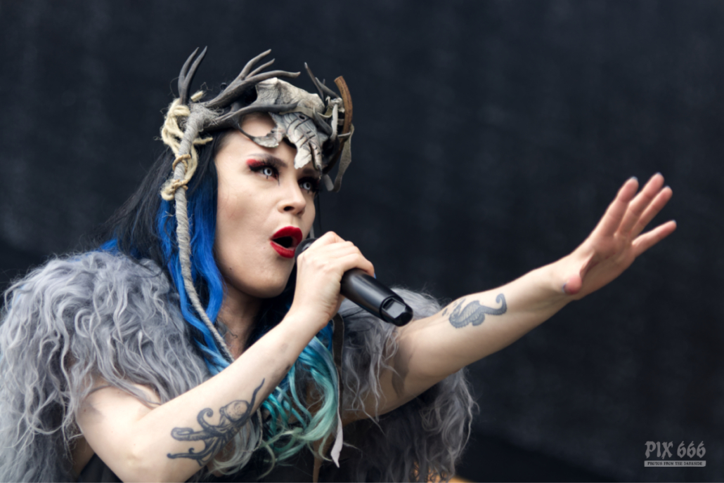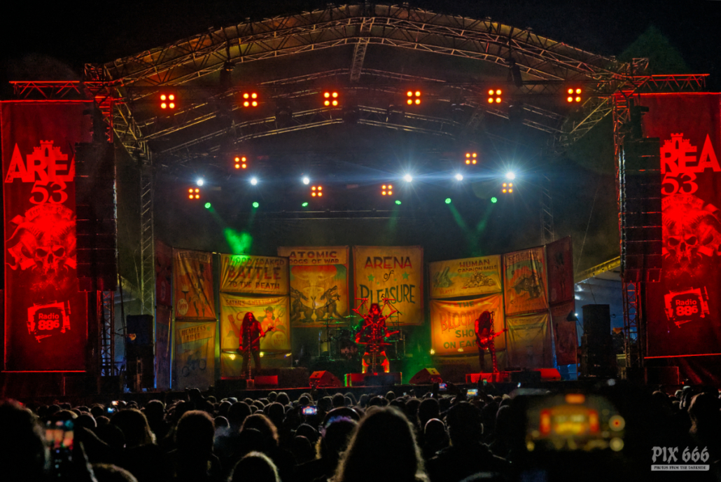 Die deutsche Pagan-/Melodic-Death-Metal-Band Varg ließ vom ersten Ton an keinen Zweifel daran, dass es nun ernst wird. Nebel, rot flackerndes Licht, Flammen und donnernde Gitarrenriffs setzten direkt eine apokalyptische Atmosphäre, die das Publikum in ihren Bann zog. Der Moshpit ließ auch nicht lange auf sich warten, und schon nach wenigen Minuten war das Publikum vollständig in Bewegung. Sänger Fleki begrüßte die Fans und sagte „Es ist schön hier zu sein in eurem wunderschönen Land“. Varg präsentierten Songs von ihrem aktuellen Top20 Album und mischten diese mit Klassikern aus ihrer bereits 20-jährigen Karriere. Der Funke der Pyro-Effekte sprang problemlos auf die Menge über – es herrschte super Stimmung und die Zahl der Headbanger wurde immer größer. „Wollt ihr gemeinsam mit uns singen? – wie laut könnt ihr sein? Immer wieder stachelte Fleki das Publikum zusätzlich noch an, aber mehr Stimmung ging eigentlich kaum noch. Auch ohne ihre erkrankte Sängerin Fylgja lieferten Varg extrem gut ab und spielten zum Schluss den starken Titelsong vom 2023er Album ‚Ewige Wacht‘. Aber das war zum Glück noch nicht alles – es gab noch das tolle Finale mit dem musikalischen Märchen vom ‚Rotkäppchen‘. Für viele war der Auftritt von Varg das Highlight des Samstags: roh, kraftvoll, episch – genau das, was man sich von einer Metalband auf einem Festival dieses Kalibers erhofft. Auch bei der Autogrammstunde der Band war großer Andrang und hoffentlich kehren sie eines Tages in voller Besetzung zum Area 53 Festival zurück.