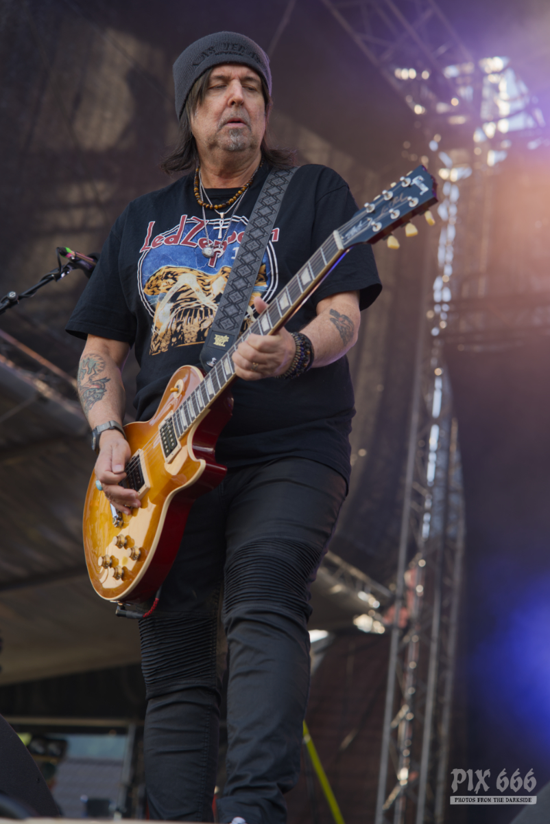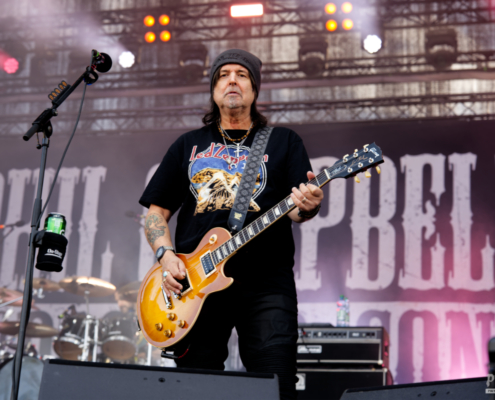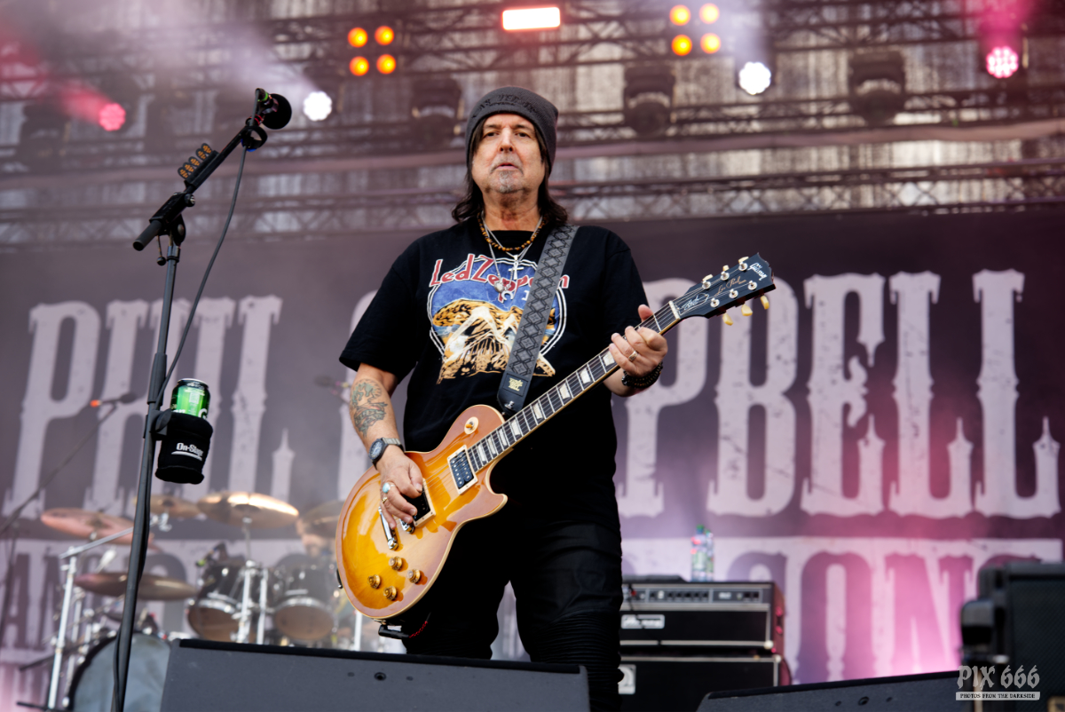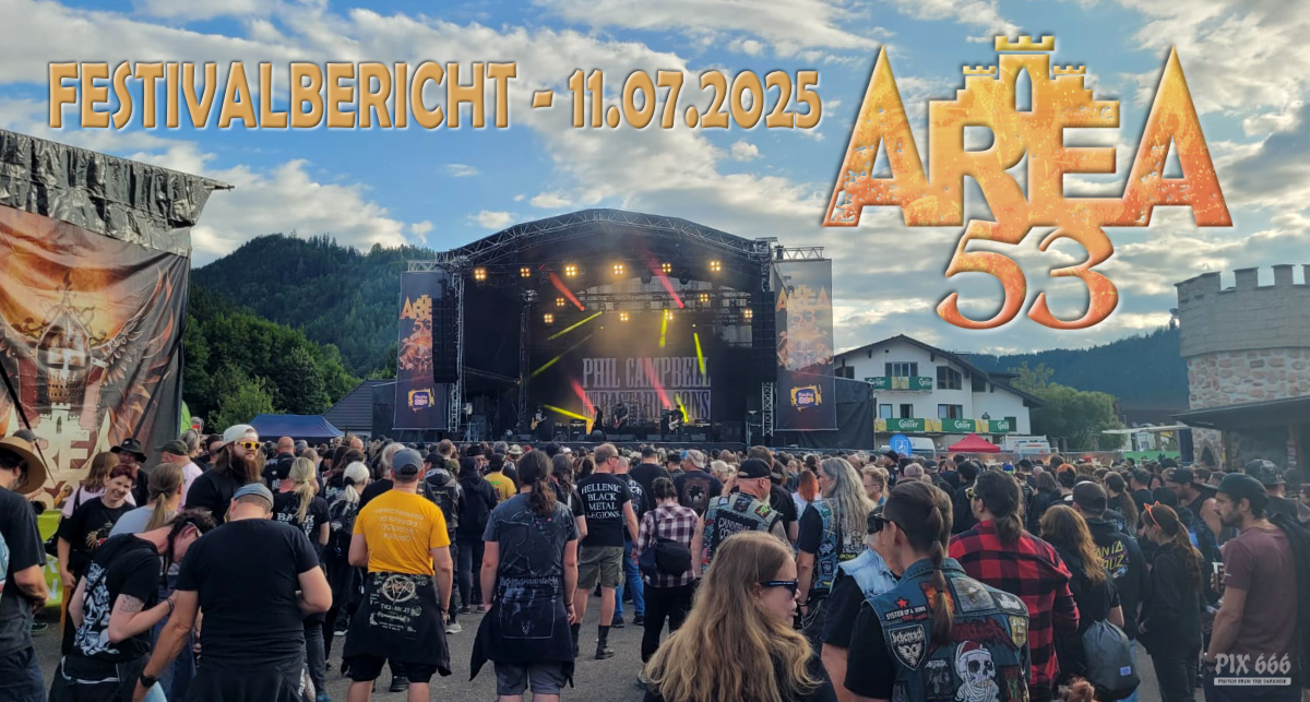 Am Freitagabend wurde das Area 53 Festival in Leoben dann zum Schauplatz einer echten Rock-’n’-Roll-Legende: Phil Campbell, über drei Jahrzehnte Gitarrist von Motörhead eroberte mit seinen Söhnen die Steiermark. Als Phil Campbell and the Bastard Sons drehten sie voll auf und es wehte ein Hauch Motörhead-Geschichte über das Festivalgelände. Die Musiker lieferten eine Show ab, die durch rohe Energie, Spielfreude und jede Menge Nostalgie glänzte. Schon beim Opener wurde klar, dass hier keine routinierte Altherren-Combo am Werk war, sondern eine hungrige, bestens eingespielte Rockband. Der Sound war druckvoll, rau und ehrlich – genau so, wie man es von einer Band erwartet, deren Wurzeln tief im britischen Hardrock und Metal liegen. Auch Sänger Joel Peters, der seit 2021 Teil der Band ist, passte perfekt in das Campbell Familienpaket rein und überzeugte mit einer fantastischen Bühnenpräsenz. Spätestens bei ‚Born to Raise Hell‘ überzeugten die Fans auch beim Mitsingen und das Festivalgelände verwandelte sich in einen riesigen, feiernden Moshpit. Später gab es dann den Song ‚Straight Up‘ von Phil Campbells Soloalbum ‚Old Lions Still Roar‘ zu hören, ehe dann der Klassiker von 1980, ‚Ace Of Spades‘ noch mal eine Mischung aus Nostalgie und Euphorie versprühte. Das war eine super Show mit absolutem Headliner Potential.