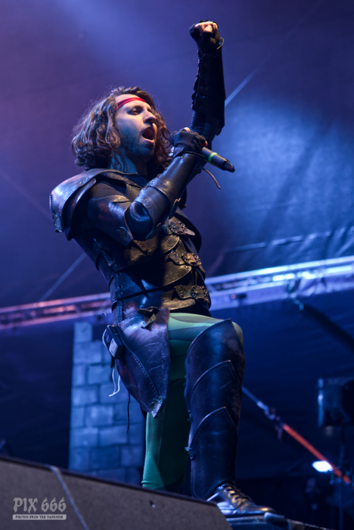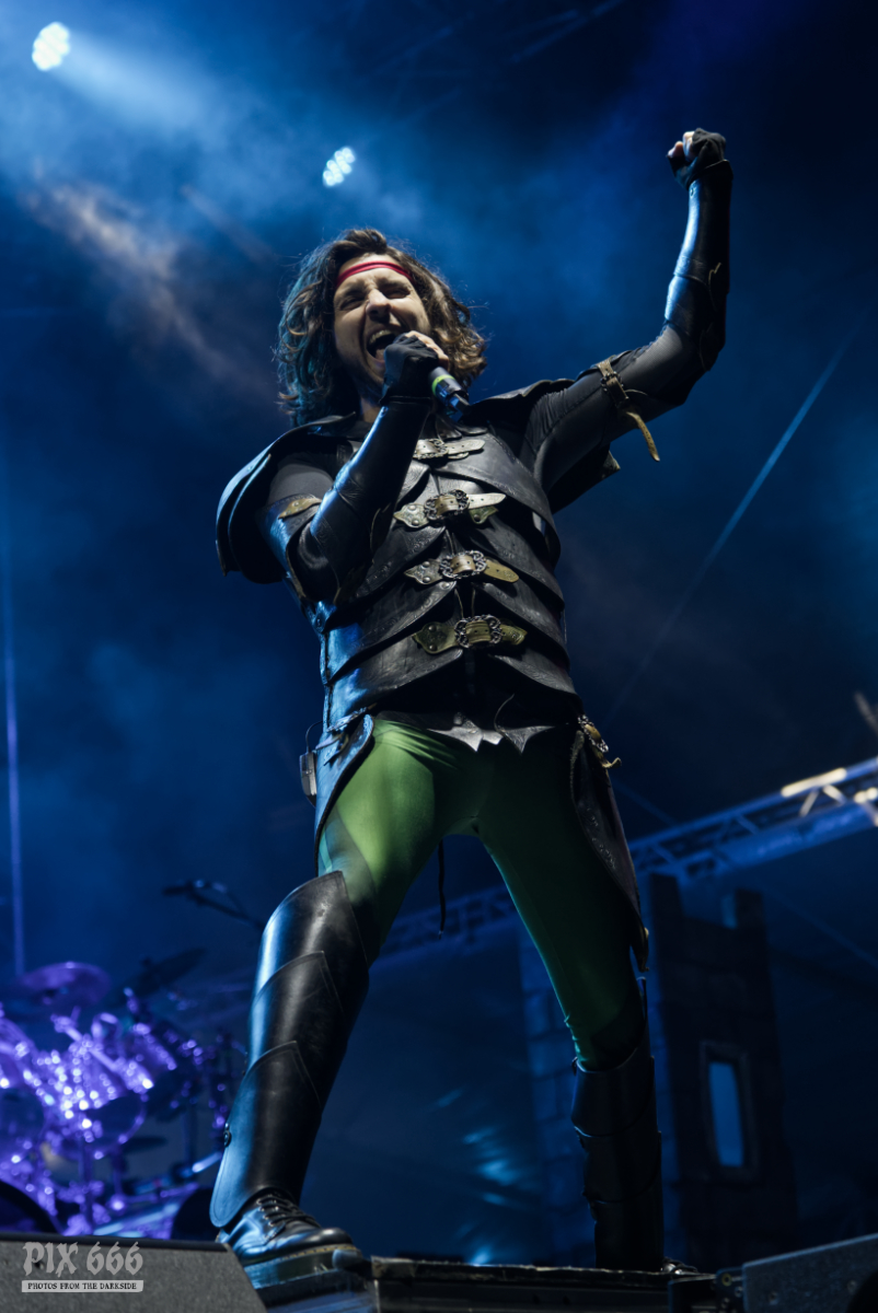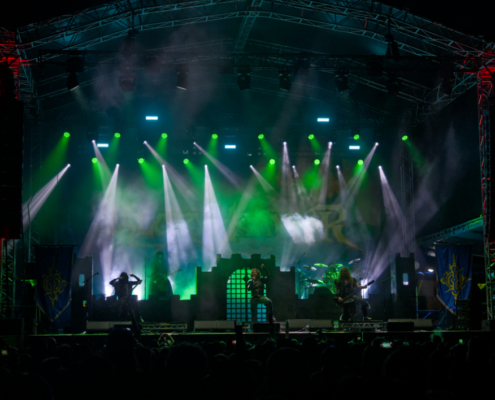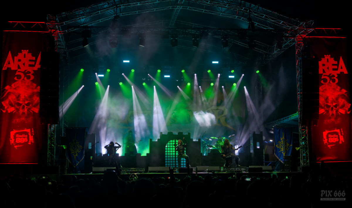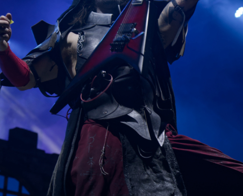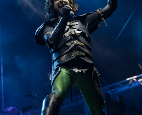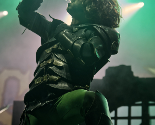 Nun war Headliner-Zeit und das Area 53 Festival wurde Freitagnacht zum Schauplatz eines intergalaktischen Fantasy-Epos: Gloryhammer betraten die Bühne und entführten das Publikum in ihre schrille, epische Welt. Schon beim Einmarsch war klar – hier geht es nicht nur um Musik, sondern um eine theatralische Inszenierung, die mit voller Überzeugung zelebriert wurde. Die Band präsentierte sich gewohnt kostümiert, mit schillernden Anzügen, glitzernden Umhängen und jeder Menge Humor. Sänger Sozos Michael alias Angus McFife glänzte wie gewohnt mit kraftvoller Stimme und einer fast schon opernhaften Bühnenpräsenz. Er schaffte es mühelos, das Publikum von der ersten Minute an mitzureißen. Die Setlist war eine perfekte Mischung aus den drei letzten Hitalben aus der 15- jährigen Erfolgsgeschichte von Gloryhammer. Das Publikum feierte gut gelaunt mit und sang bei den größten Hits Zeile für Zeile mit. Und den wohl allergrößten Hit gab es dann kurz vor Schluss – ‚Hootsforce‘ ist wirklich eine mitreißende Power-Metal Hymne. Das große Finale gab es dann mit ‚The Unicorn Invasion of Dundee‘ und mit erhobenem Hammer verabschiedeten sich Angus McFife und seine Bandkollegen vom tollen Publikum.