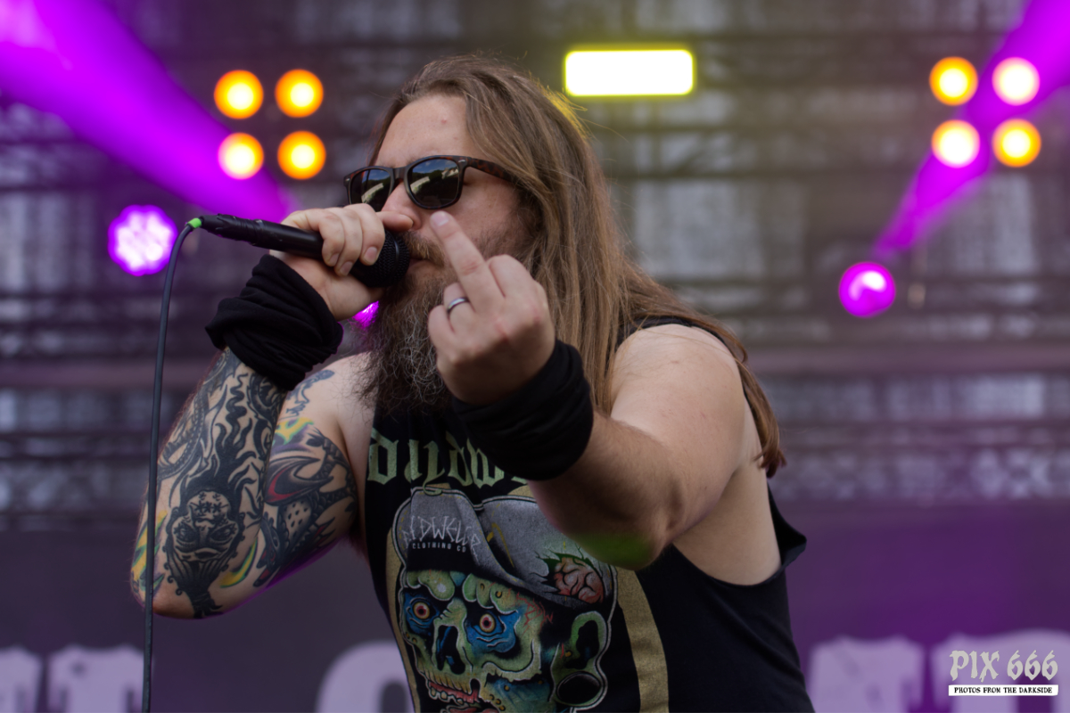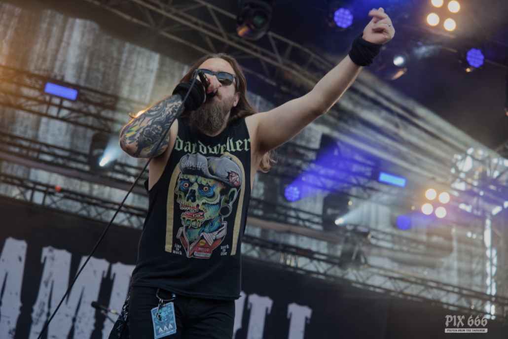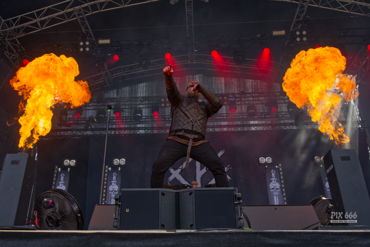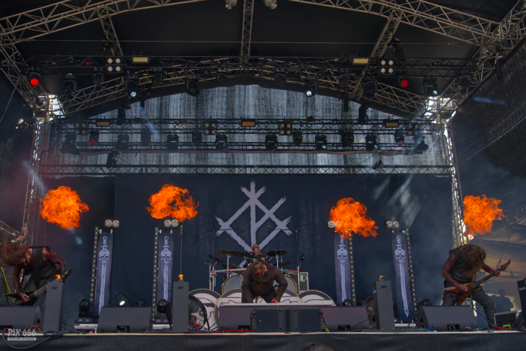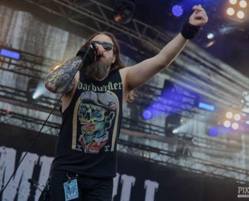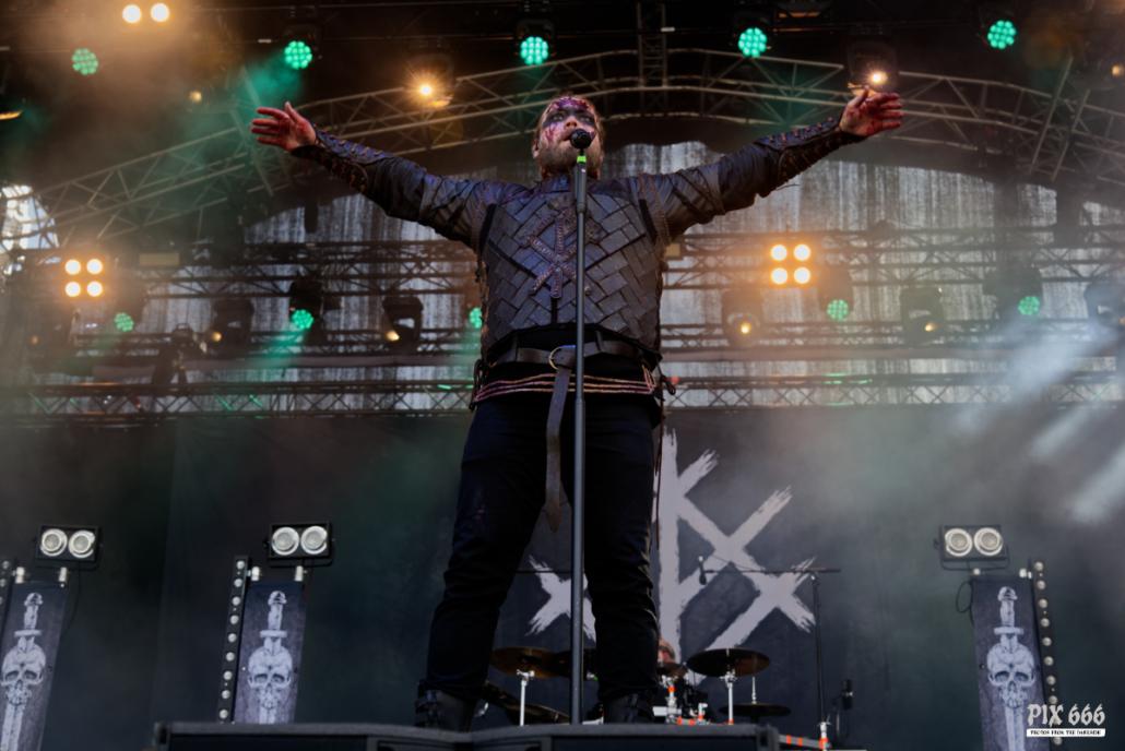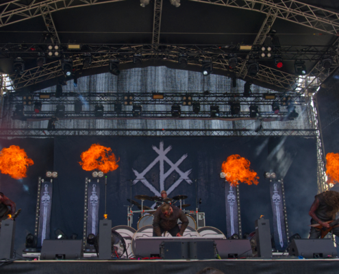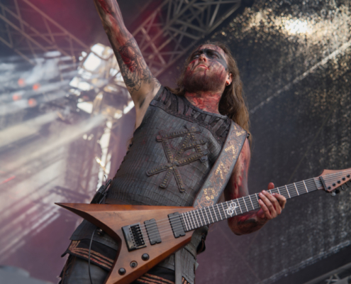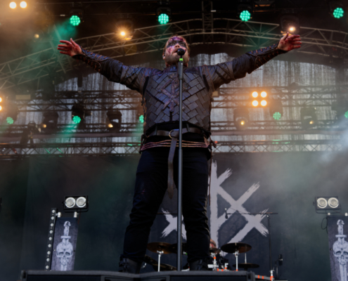 Die deutsche Pagan-/Melodic-Death-Metal-Band Varg ließ vom ersten Ton an keinen Zweifel daran, dass es nun ernst wird. Nebel, rot flackerndes Licht, Flammen und donnernde Gitarrenriffs setzten direkt eine apokalyptische Atmosphäre, die das Publikum in ihren Bann zog. Der Moshpit ließ auch nicht lange auf sich warten, und schon nach wenigen Minuten war das Publikum vollständig in Bewegung. Sänger Fleki begrüßte die Fans und sagte „Es ist schön hier zu sein in eurem wunderschönen Land“. Varg präsentierten Songs von ihrem aktuellen Top20 Album und mischten diese mit Klassikern aus ihrer bereits 20-jährigen Karriere. Der Funke der Pyro-Effekte sprang problemlos auf die Menge über – es herrschte super Stimmung und die Zahl der Headbanger wurde immer größer. „Wollt ihr gemeinsam mit uns singen? – wie laut könnt ihr sein? Immer wieder stachelte Fleki das Publikum zusätzlich noch an, aber mehr Stimmung ging eigentlich kaum noch. Auch ohne ihre erkrankte Sängerin Fylgja lieferten Varg extrem gut ab und spielten zum Schluss den starken Titelsong vom 2023er Album ‚Ewige Wacht‘. Aber das war zum Glück noch nicht alles – es gab noch das tolle Finale mit dem musikalischen Märchen vom ‚Rotkäppchen‘. Für viele war der Auftritt von Varg das Highlight des Samstags: roh, kraftvoll, episch – genau das, was man sich von einer Metalband auf einem Festival dieses Kalibers erhofft. Auch bei der Autogrammstunde der Band war großer Andrang und hoffentlich kehren sie eines Tages in voller Besetzung zum Area 53 Festival zurück.
