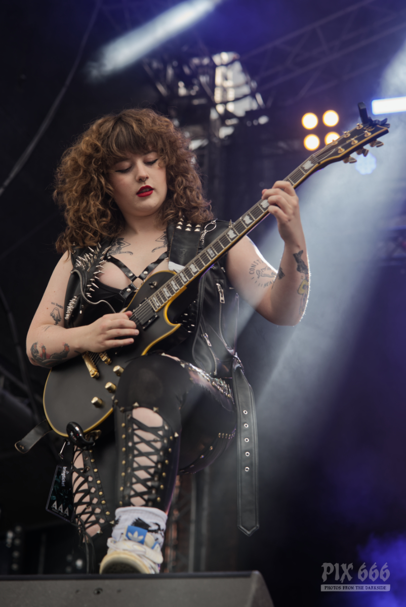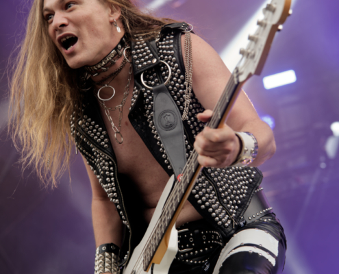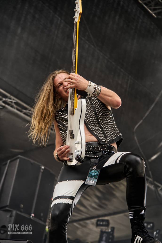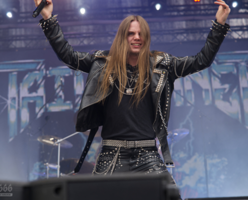 Im Anschluss stürmten Tailgunner die Bühne und lieferten eine der energiegeladensten Performances des gesamten Wochenendes. Die britische Band, die sich dem klassischen Heavy Metal mit einer modernen Kante verschrieben hat, trat am späten Nachmittag auf und verwandelte das Festivalgelände innerhalb kürzester Zeit in ein headbangendes Meer aus Kutten, Luftgitarren und geballten Fäusten. Schon beim ersten Song war klar, dass Tailgunner nicht einfach nur ihre Songs herunterspielen, sondern das Publikum mitreißen wollen – und das gelang ihnen mit beeindruckender Leichtigkeit. Die Band war in bestechender Form – Sänger Craig Cairns überzeugte mit seiner kraftvollen, melodischen Stimme, die stellenweise an Iron Maiden erinnerte. Tailgunner waren mit sehr viel Energie und Spaß bei der Sache und steckte das Publikum an – coole Frisuren und Outfits sorgten auch optisch für das perfekte Heavy Metal Feeling. „Wir spielen jetzt den Titelsong unseres Albums, macht Lärm“ hieß es dann. Die Metalfans ließen sich natürlich nicht zweimal bitten und verwandelten das Festivalgelände in eine Metalarena. Auch die Band war von den wilden Fans begeistert: Ihr wart unglaublich, vielen Dank.“
