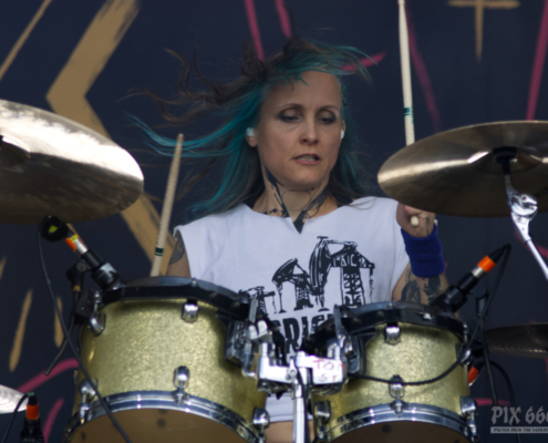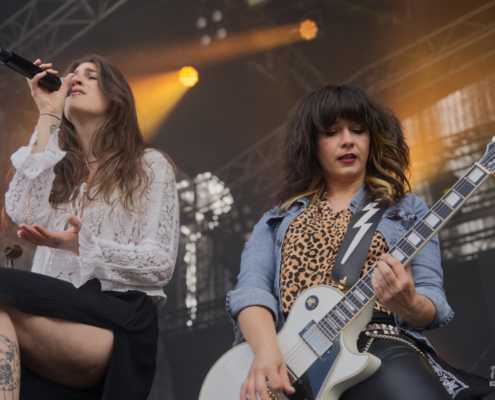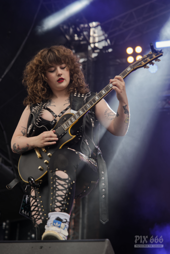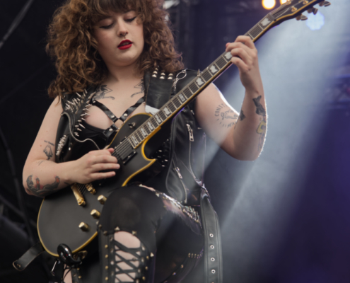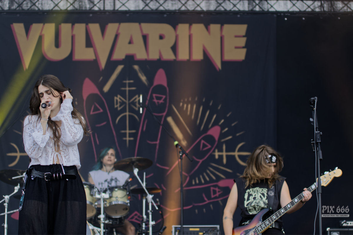 Am Nachmittag spielten Vulvarine beim Area 53 Festival eine eindrucksvolle Show. Die Wiener Band, bekannt für ihre kraftvolle Mischung aus Hardrock, Punk und feministischer Attitüde. Das Festivalgelände war zu dieser Zeit bereits richtig gut gefüllt. Vulvarine bezeichneten sich selbst als „das Kontrastprogramm des Festivals“. Auch mit neuer Sängerin konnten Vulvarine überzeugen und mitreißen. Die Gitarrenriffs schnitten messerscharf durch die Luft, der Bass groovte druckvoll, und das Schlagzeug trieb jeden Song kompromisslos nach vorn. Mit ‚Fool‘ spielten Vulvarine auch die erste Singleauskopplung ihres starken, neuen Studioalbums ‚Fast Lane‘, mit dem sie sogar in die deutschen und österreichischen Charts stürmten. Wunderbare Stimmung war dann auch beim Modern Talking Cover ‚Cheri Cheri Lady‘, der Song wurde von zahlreichen Fans fleißig mit dem Mobiltelefon mitgefilmt. Die Wiener Band überzeugte mit Spielfreude und mitreißenden Songs. Wir wünschen dann mal viel Spaß bei der Wacken Open Air Premiere im August – wer mehr von Vulvarine sehen mag, im Rahmen der ‚Fast Lane Tour 2025‘ gibt es im Dezember auch drei Shows in Österreich.