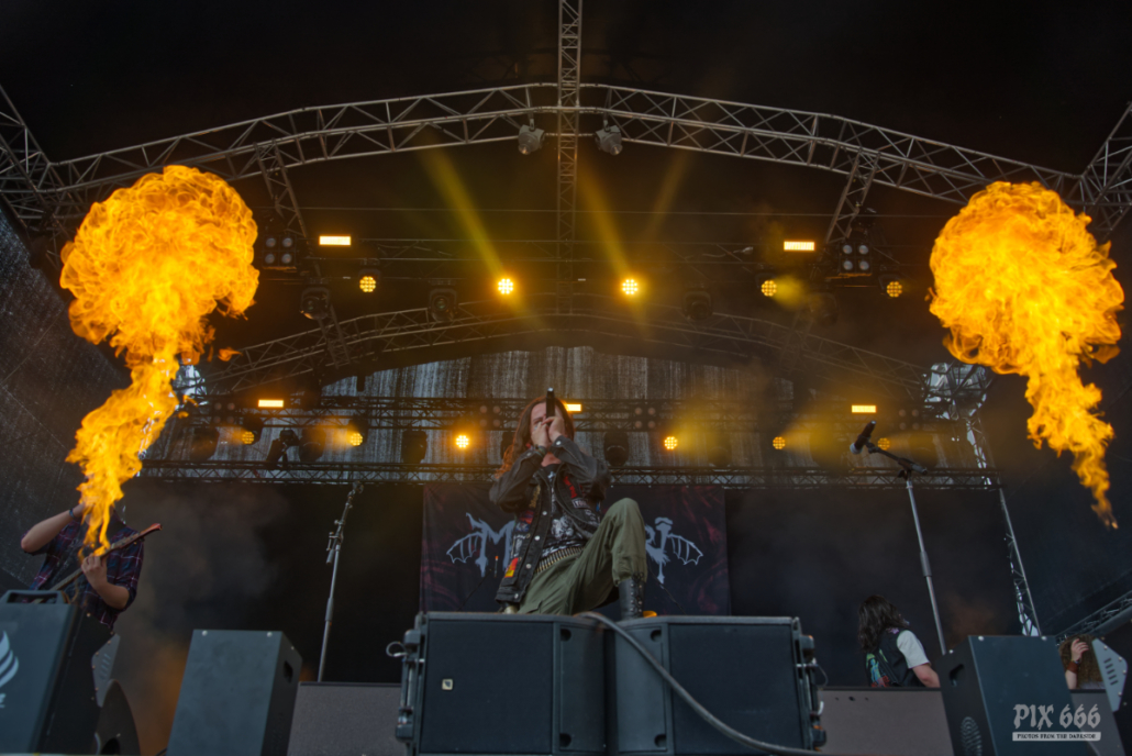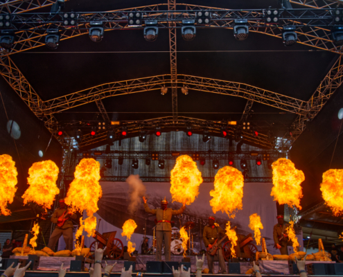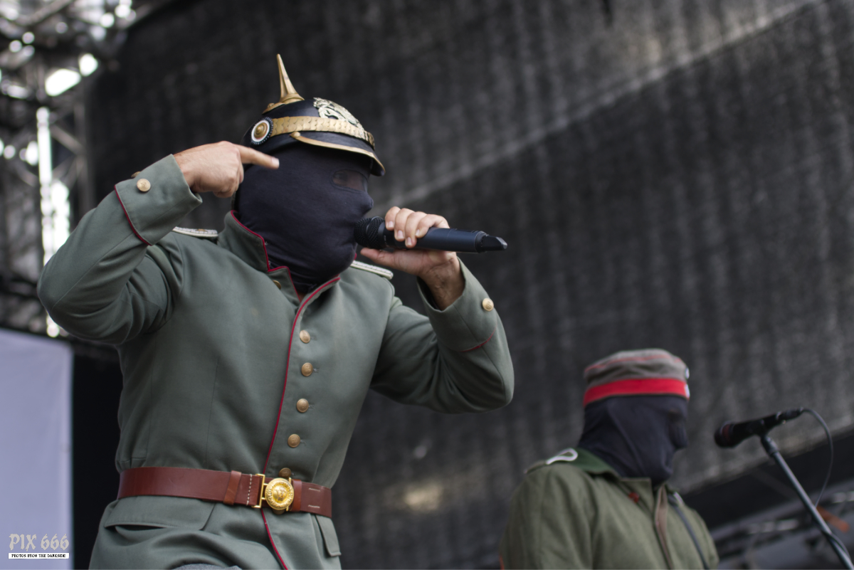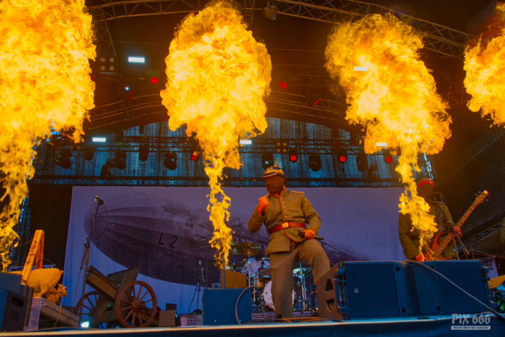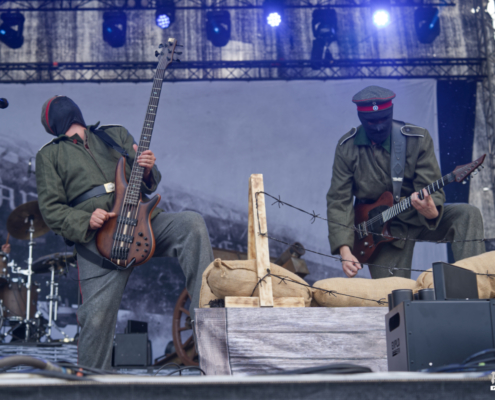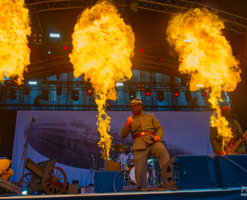Kanonenfieber lieferten am Samstagabend eine energiegeladene Show, die vor allem durch eine beeindruckende Pyroshow bestach. Flammen und Funken begleiteten die kraftvollen Klänge der Band und sorgten für eine intensive Atmosphäre vor der Bühne. Das Projekt Kanonenfieber gibt es seit 2020 und es hat in der Musikwelt tatsächlich eingeschlagen, wie eine Kanonenkugel. Bereits das Debutalbum ‚Menschenmühle‘ erregte jede Menge Aufmerksamkeit und der Nachfolger im Jahr 2024 schaffte dann sensationell den Sprung auf Platz 3 der deutschen Albumcharts. Die Thematik der Songs rund um den ersten Weltkrieg waren dann auch bei der Bühnendeko präsent – Stacheldraht, Sandsäcke wie in einem Schützengraben sowie Kanonen säumten die große Bühne. Und immer wieder stieg Feuer auf. Bei einem Song schneite es dann sogar, alles war gut auf die Songs abgestimmt. Kanonenfieber bewiesen mit ihrem kraftvollen Set und der großartigen Pyroshow, warum sie auf Festivals für Begeisterung sorgen. Eine Show, die man so schnell nicht vergisst. Für einige war der Auftritt von Kanonenfieber das Highlight des letzten Tages. Wer mehr von Kanonenfieber sehen mag, muss sich für eine Österreich Show noch bis März 2026 gedulden, dann spielen die Musiker um Sänger und Bandgründer Noise im Orpheum Graz.