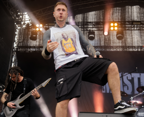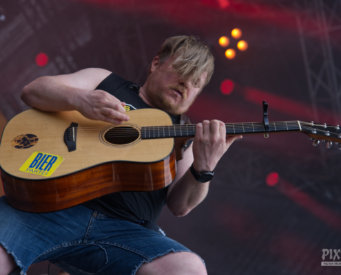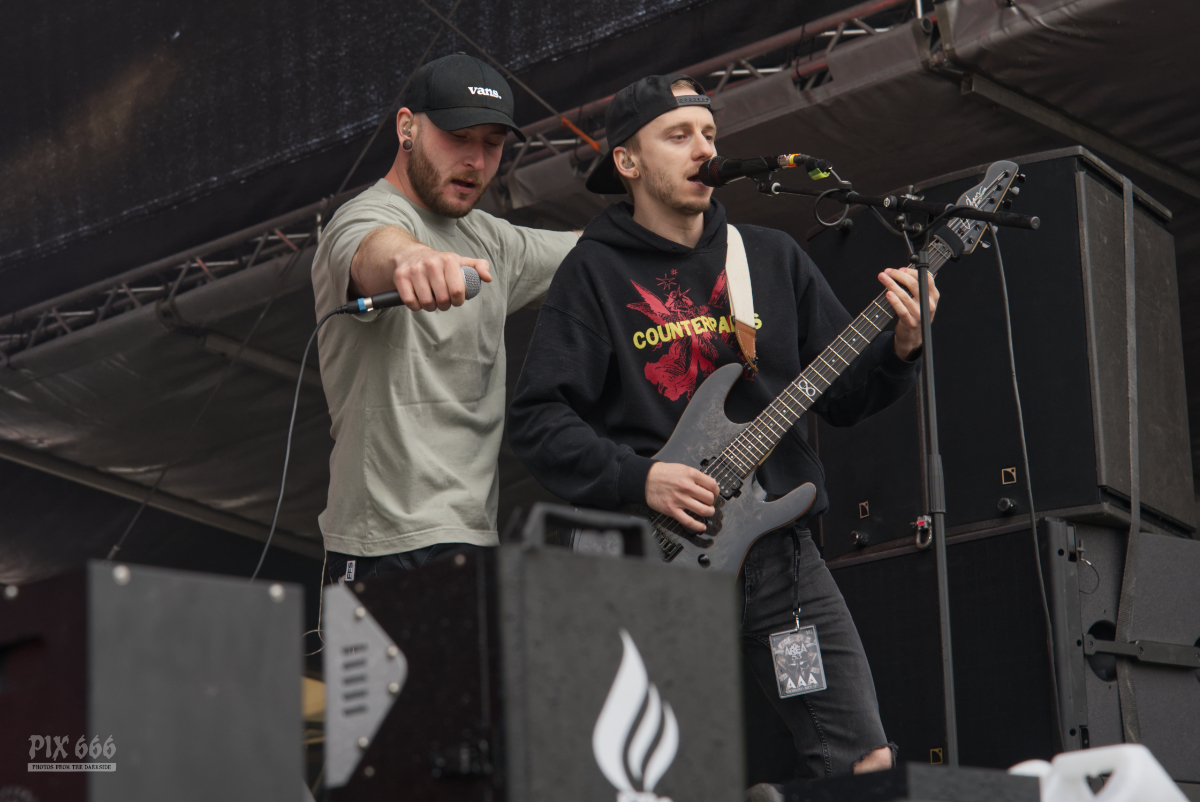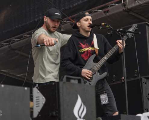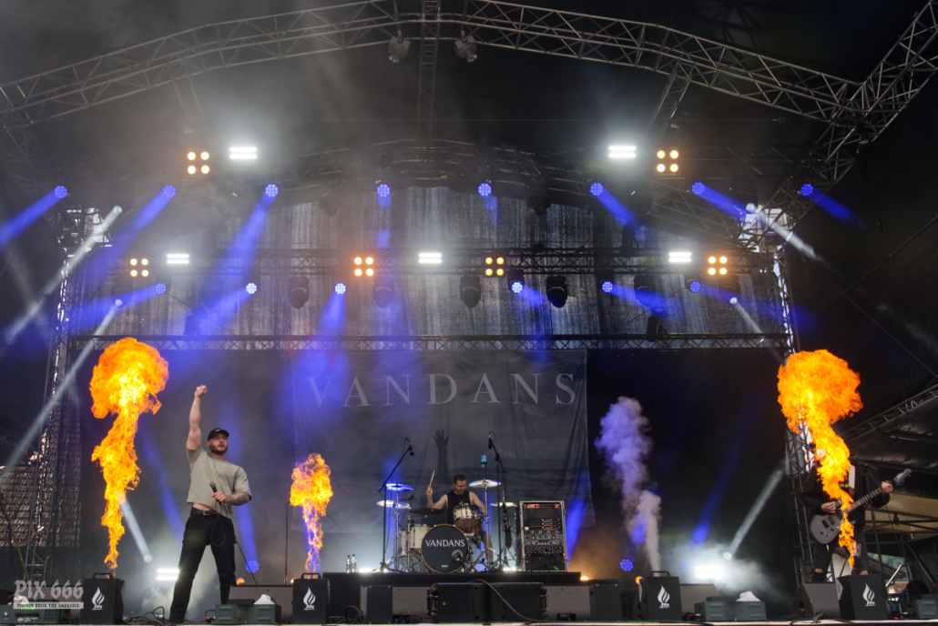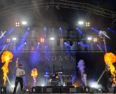 Gleich danach sorgten Vandans für einen atmosphärisch intensiven Moment. Die Mischung aus Post-Hardcore und einer Brise Pop-Punk, untermalt von lila-blauen Lichteffekten, sowie gezielt eingesetzten Pyro-Effekten sorgten für ein visuelles und akustisches Inferno. Schon der Opener ‚Still Sinking‘ zeigte, wohin die Reise geht. Vandans waren kompromisslos und technisch auf den Punkt. Das Wechselspiel der beiden Stimmen war hervorragend, sowohl das Shouten, als auch der Cleangesang konnten voll überzeugen. Das neue Album ‚Everything That Won’t Remain‘ ist ein ganz klarer Kauftipp. Gemixt und gemastered hat diese Scheibe übrigens kein Geringerer als Christoph von Annisokay. Im Publikum ging es inzwischen auch richtig zur Sache, die Leute hatten ihren Spaß. Mit ‚Archetype‘ beendeten Vandans ihr Set und hinterließen ein beeindrucktes Publikum. Vandans lieferten eine durch und durch stimmige Show – musikalisch präzise, visuell eindrucksvoll. Die Open Air Show hat gezeigt, dass Vandans auch auf großen Bühnen überzeugen können und, dass die Band nach wie vor zu den ernstzunehmendsten Größen der heimischen Szene gehören.