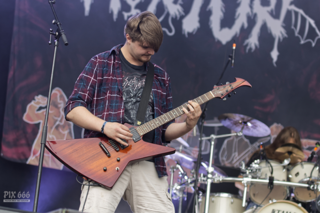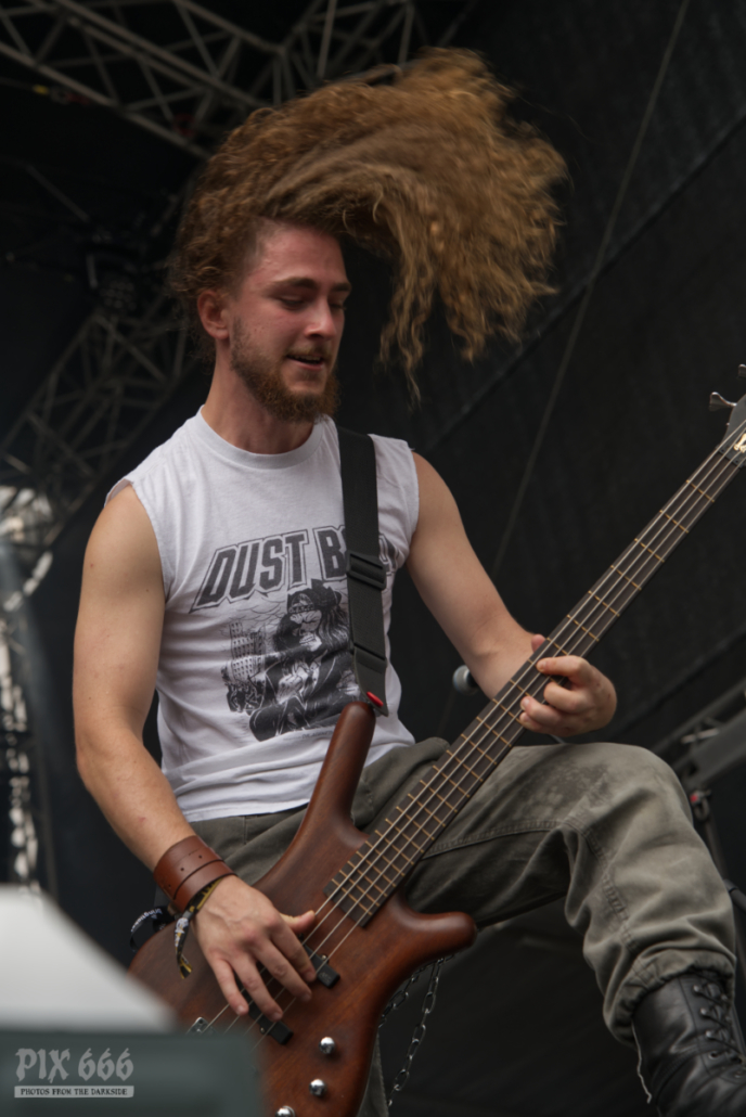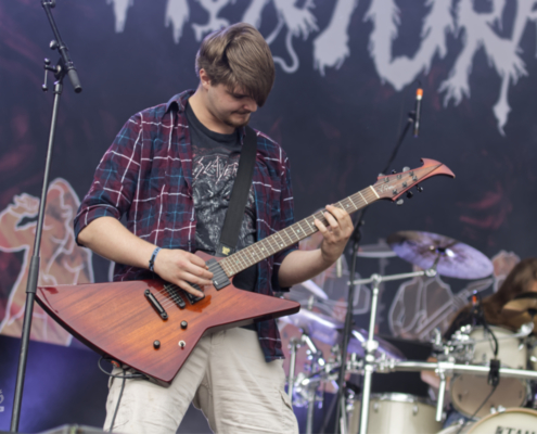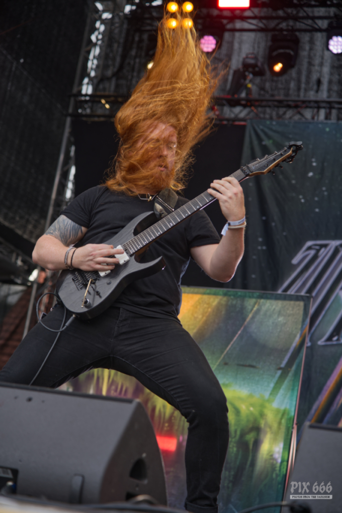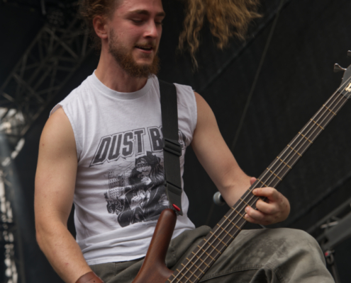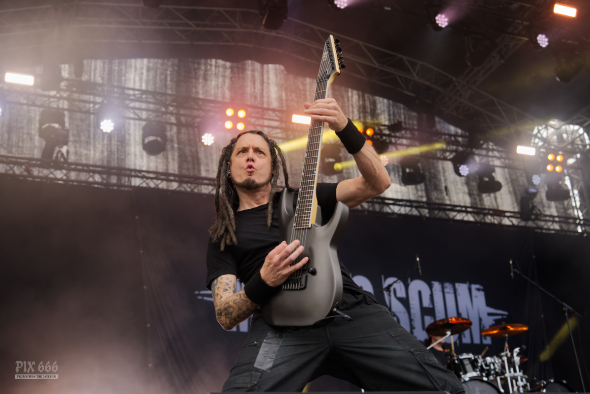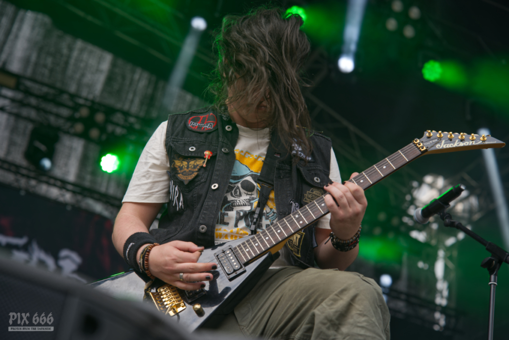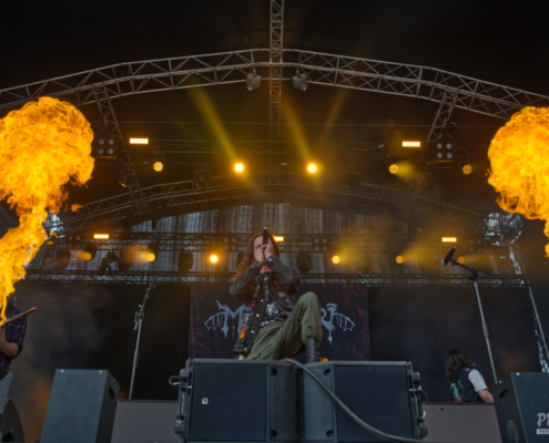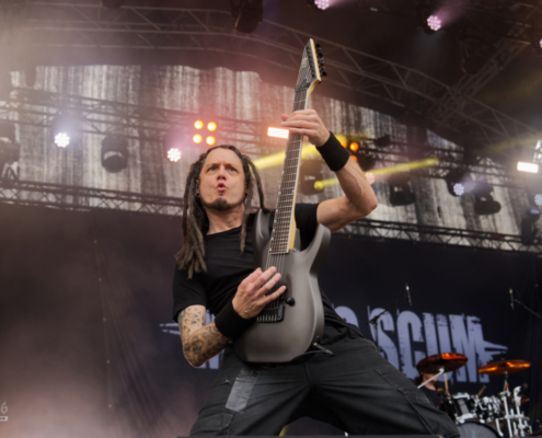Die Geschichte von Mastic Scum reicht inzwischen über drei Jahrzehnte zurück. Während dieser Zeit sind sechs Alben, sowie einige EPs erschienen. Vor 15 Jahren gab es sogar eine Nominierung für den Amadeus Award in der Kategorie Hard & Heavy. Mit einer kompakten, intensiven Show über 40 Minuten sorgte Mastic Scum am Samstag für rohen, ungeschliffenen Death Metal auf der Bühne des Area 53 Festivals. Ohne große Schnörkel, aber mit voller Power und viel Spielfreude ließen sie den Fans keine Zeit zum Verschnaufen. Mit ‚Slavebreed‘ vom aktuellen Album ‚ICON‘ ging es gleich mit einem richtigen Kracher los. Die Band präsentierte eine druckvolle Performance, die vor allem durch die rohe Energie und den dröhnenden Sound beeindruckte. Das Publikum honorierte das kompromisslose Set mit lautstarkem Applaus und begeistertem Headbangen. Die Band bedankte sich dann auch bei den zahlreichen Fans – „wir sind jetzt 30 Jahre im Geschäft und das alles ist nur möglich durch euch – die treuen Fans“. Mastic Scum sind eine Band, die den klassischen Death-Metal-Spirit auf die Bühne bringt – direkt, intensiv und sie spielten definitiv mit die schnellsten Songs des gesamten Wochenendes.