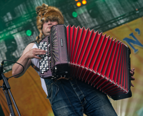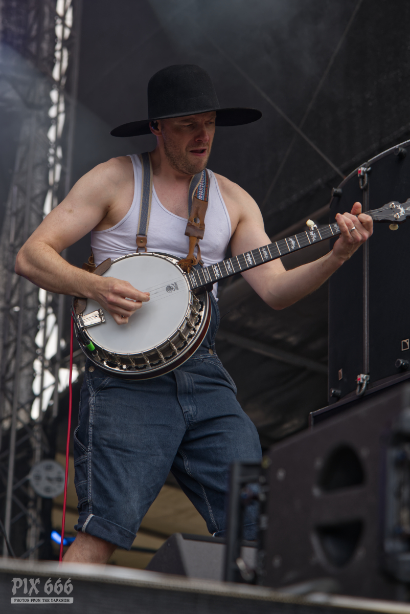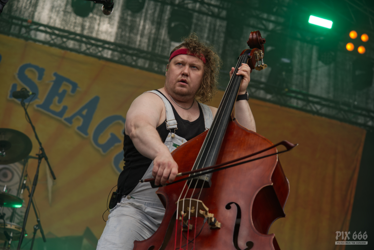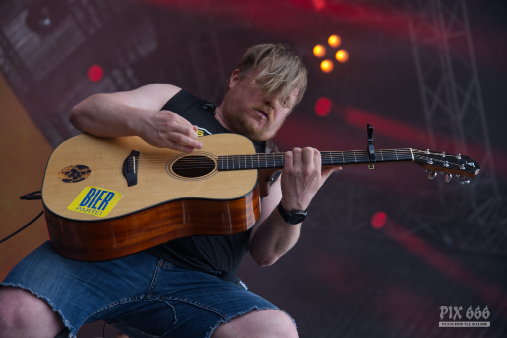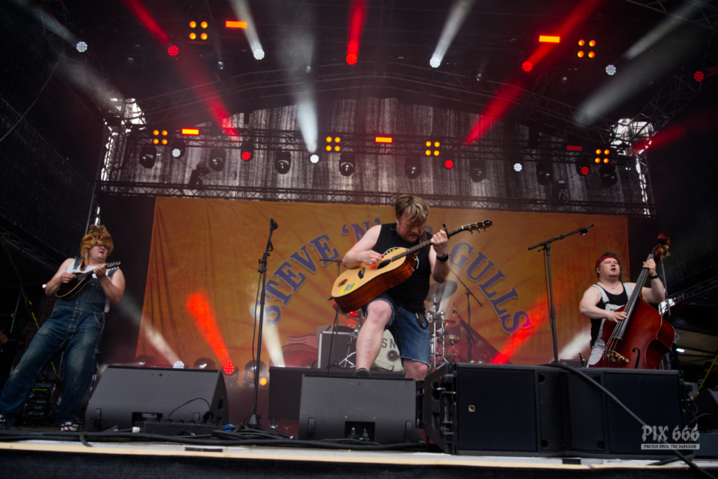 Mit einem Mix aus Humor und musikalischer Virtuosität brachten Steve’n’Seagulls aus Finnland am Samstagnachmittag eine erfrischende Portion Spaß auf die Bühne des Area 53 Festivals. Ihre ungewöhnlichen, aber hochqualitativen Coverversionen bekannter Rock- und Metal-Hymnen begeisterten das Publikum vom ersten Ton an. Die 2012 gegründete Polka-Metal Band verschaffte sich vor mehr als zehn Jahren große Bekanntheit auf YouTube, nachdem sie dort ihre Coverversionen von unter anderem Metallica oder AC/DC hochgeladen haben. Ihr ‚Thunderstruck‘ Video hat dort inzwischen sagenhafte 186 Millionen Views. Steve’n’Seagulls bewiesen eindrucksvoll, dass man mit Witz und Spielfreude sowie hervorragender musikalischer Umsetzung eine unvergessliche Show hinlegen kann, und dass man mit Country- bzw. Polka-Versionen auch Metalheads begeistern kann. Mit ein paar guten Gösser intus geht das dann sogar noch viel einfacher. Ausgelassene Stimmung herrschte auch beim Nightwish Cover ‚Over the Hills and Far Away‘. Besonders amüsant fanden wir auch die Kleidung der Musiker, der Oberknaller war natürlich die Fuchsmütze.