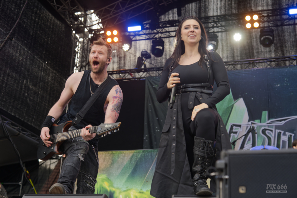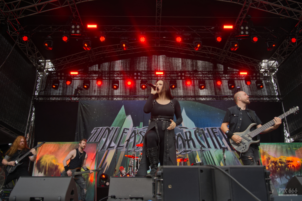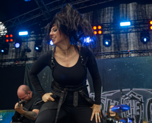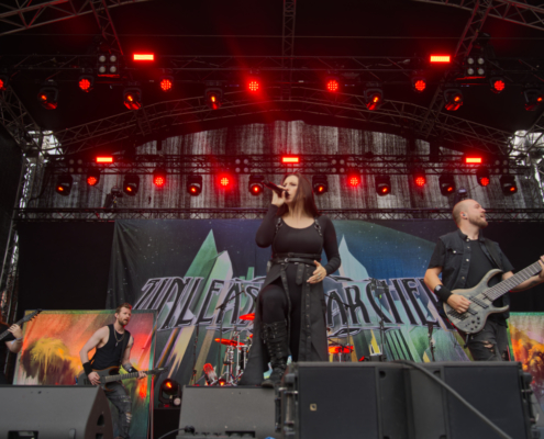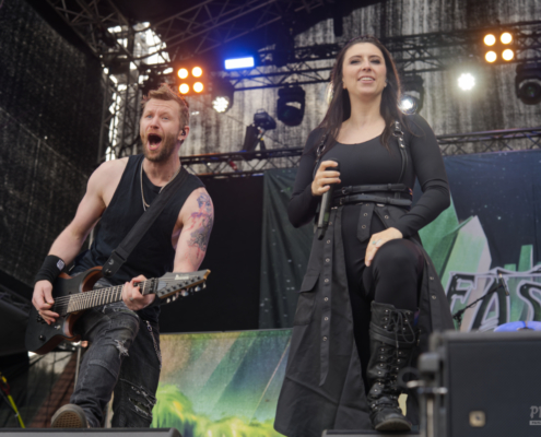 Unleash The Archers setzten am Samstagabend beim Area 53 Festival ein echtes Metal-Feuerwerk frei. Mit ihrer kraftvollen Mischung aus melodischem Power Metal, bombastischen Hooks und energiegeladener Bühnenperformance brachten sie die Menge zum Toben. Die charismatische Frontfrau Brittney dominierte die Bühne mit einer Stimme, die sowohl sanfte Melodien als auch kraftvolle Screams mühelos meisterte. Die Band präsentierte einen Querschnitt aus ihren bekanntesten Songs. Dann fragte Brittney: „Wer hat unser neues Album? – dann könnt ihr jetzt mitsingen“. ‚Ghosts in the Mist‘ ist wohl einer der eingängigsten und schönsten Songs auf dem neuen Album ‚Phantoma‘, welches im vergangenen Jahr in die Top20 der österreichischen Charts stürmte. Die Band stellte ihr neues Album im Februar bereits in Wien vor – einige der Area 53 Besucher hatten also bereits das Vergnügen, die kanadische Band live zu erleben. Besonders die Kombination aus virtuosem Gitarrenspiel und treibendem Schlagzeug sorgte für ein mitreißendes Sounderlebnis, das im Publikum für zahlreiche Moshpits und Headbanging-Momente sorgte. Aber nicht nur im Publikum wurden die Köpfe gekreist – auch die Musiker sparten nicht mit Headbanger Einlagen. Unleash The Archers bewiesen, warum sie international zu den Vorreitern des modernen Power Metals gehören. Ihre Show, die mit der inoffiziellen kanadischen Nationalhymne endete, war ein voller Erfolg und eines der Highlights des Festivalsamstags.