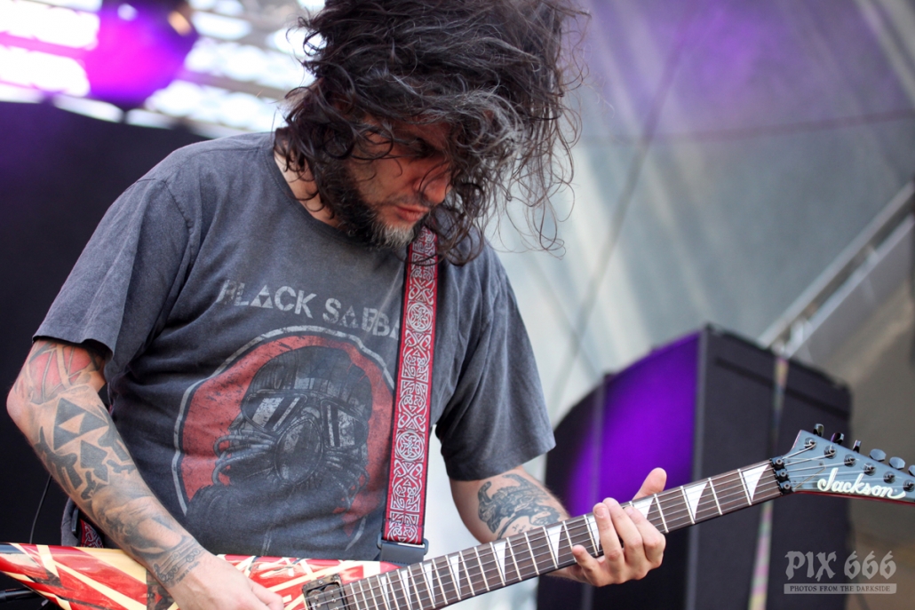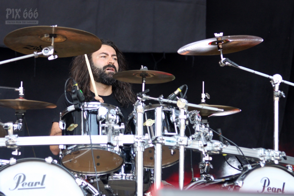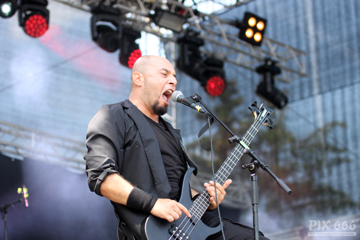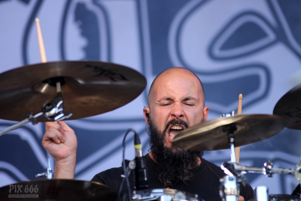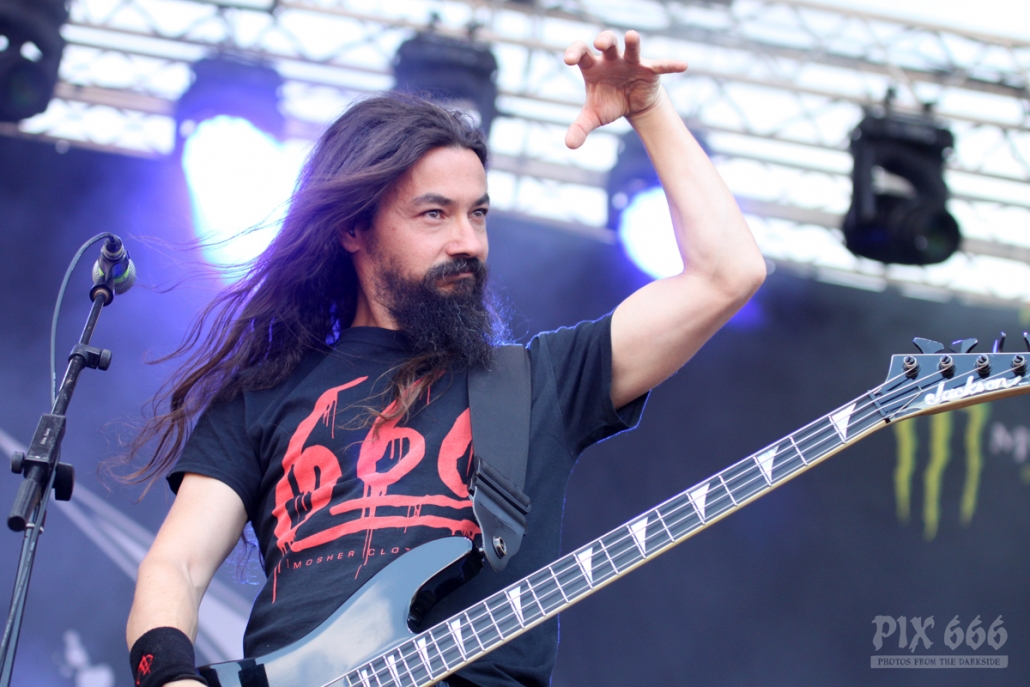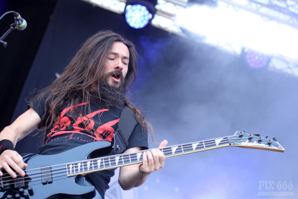 Exodus hatten ein ziemlich geiles Backdrop auf Bühnenbreite. Das Konzert startete mit dem neuen Song ‚The Beatings Will Continue‘, zu dem die Band letzten Sommer auch einen Videoclip veröffentlicht hat. Die Fans hatten während des Konzertes ziemlich oft die Hände in der Höhe – natürlich mit abgespreiztem kleinen Finger, sowie Zeigefinger – so muss das bei Metal… und mitgesungen wurde bei einigen Passagen auch lautstark. Dann gab es zwischen den Songs sogar Exodus Sprechchöre.