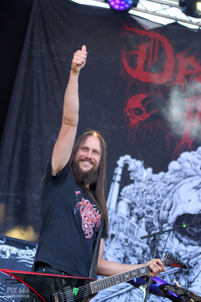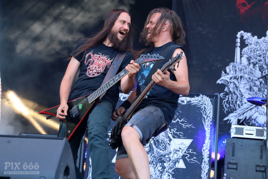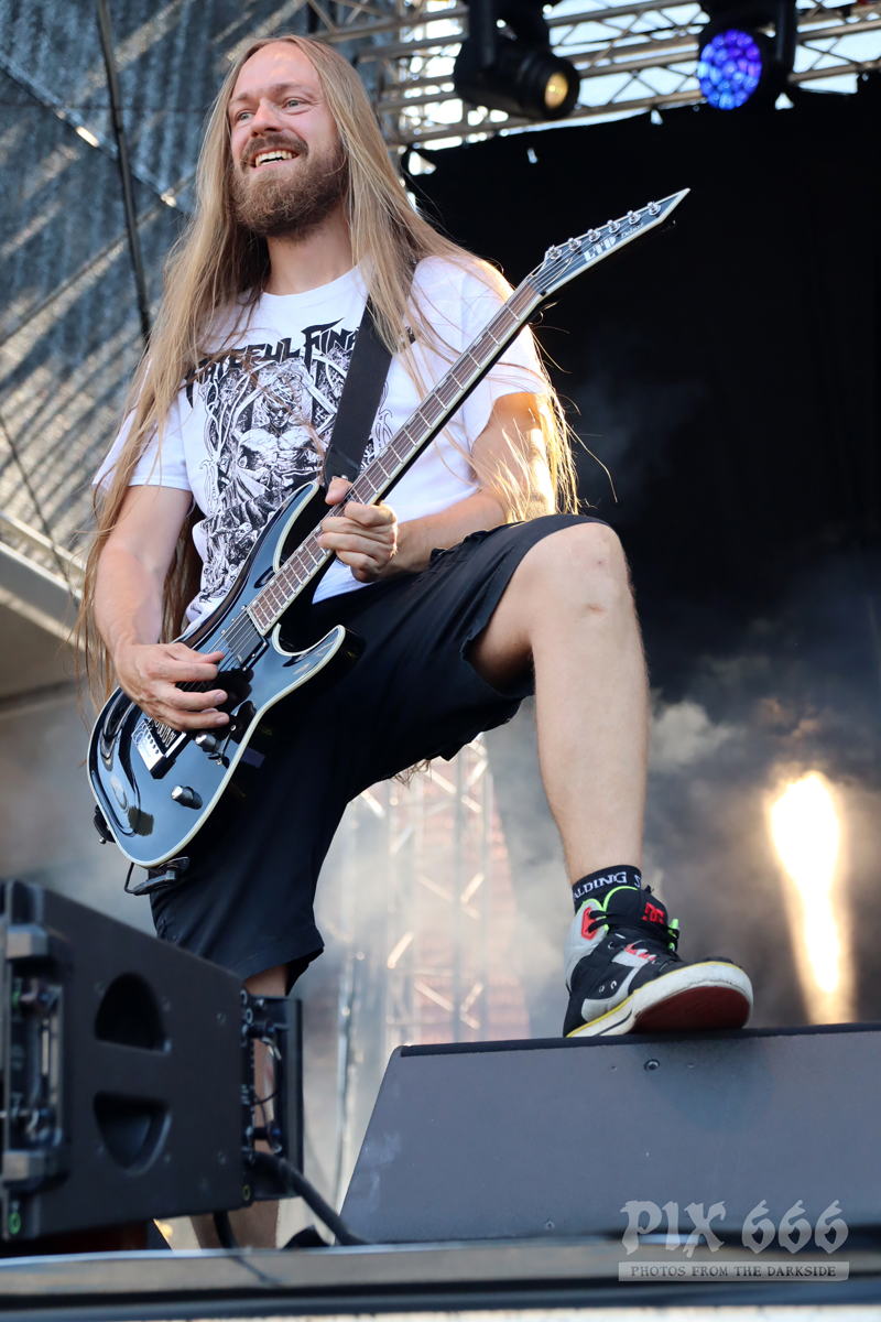 Die sympathischen Jungs kommunizierten im feinstem ostdeutschen Dialekt mit den Fans in Österreich und im Publikum fand sich gleich der ein oder andere, der versuchte den Dialekt zu imitieren. Die langen Haare der Death-Metaller waren fast ununterbrochen in Bewegung und die Fans waren aus dem Häuschen.