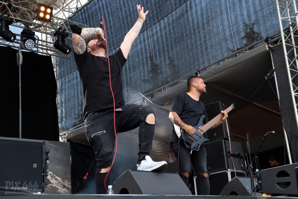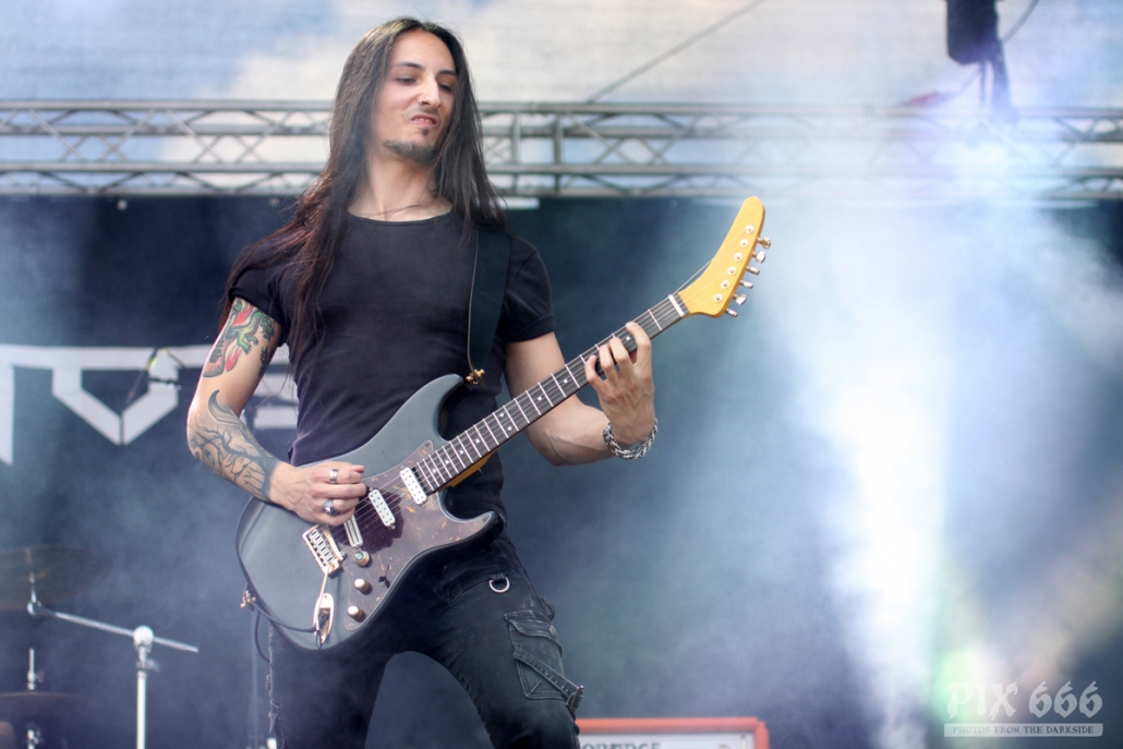„Wir sind aus Graz und freuen uns, dass wir hier sein können. Das ist schon unser zweites Mal. Die Organisation hier ist wirklich toll. Die ersten beiden Tage waren super und heute wird es noch besser.“ So begrüßte die Metalband ihre Fans. Die Besuchermenge im Publikum hatte sich inzwischen mindestens verdoppelt.