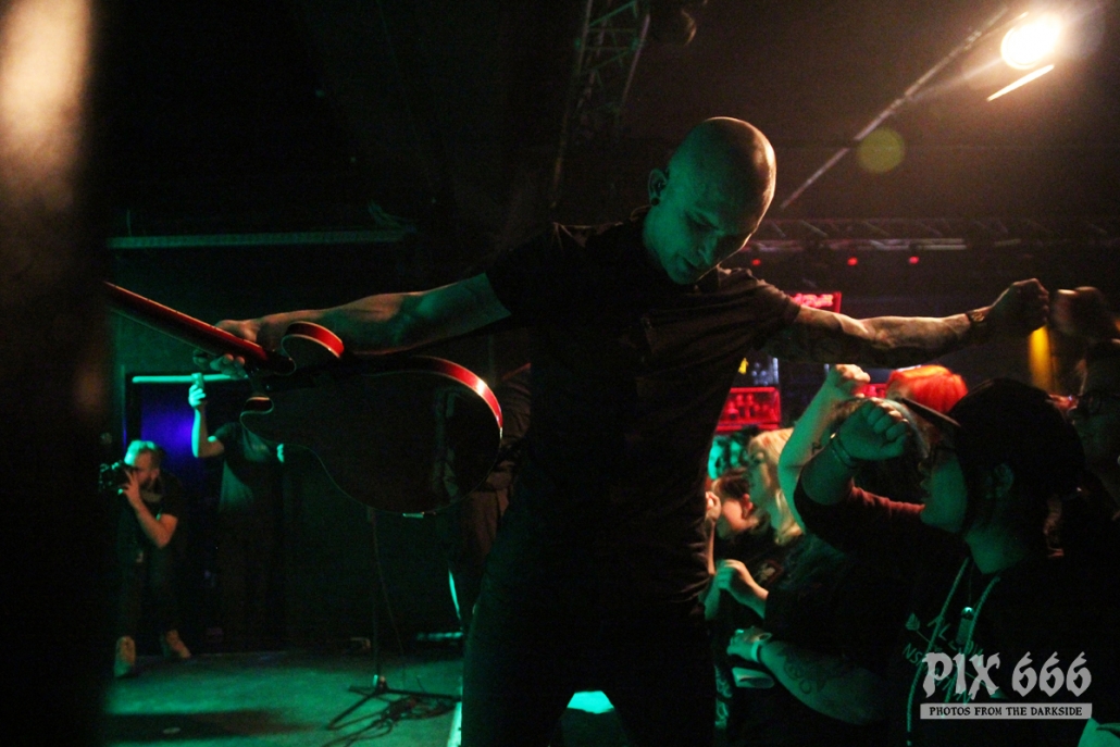 Ein besonderes Lob gilt natürlich auch den Fans, die diesen Abend so speziell gemacht haben. Kennt ihr das, wenn manche Bands einen Chor einspielen, um für etwas mehr Stimmung zu sorgen? – Dieser Chor stand im headCRASH vor der Bühne. Die etwa 300 Fans haben Lärm gemacht, als seien es 3.000 – sie kannten jeden Song auswendig – sagen mit Patty zusammen, oder wechselten sich mit ihm ab, als wäre es einstudiert gewesen. Bei einem Song spielte Patty dann alleine die Akustikgitarre, die Bandkollegen hatten kurz Pause. So ein Song zum Ausruhen gehört auch zu den wildesten Konzerten dazu – und wild ging es danach weiter – ein kleiner Circlepit, Crowdsurfen und Springen sorgten für ununterbrochen gute Stimmung.